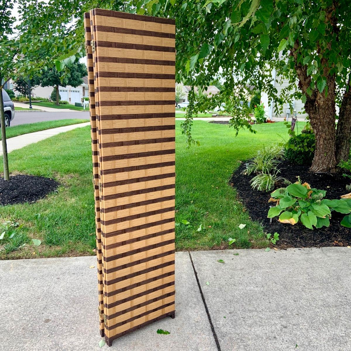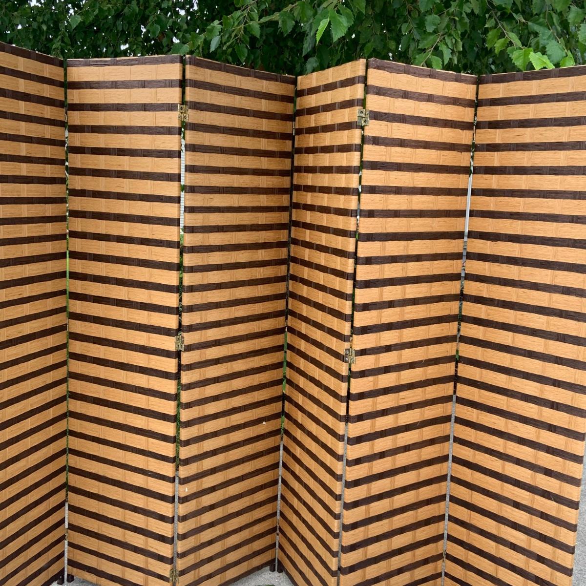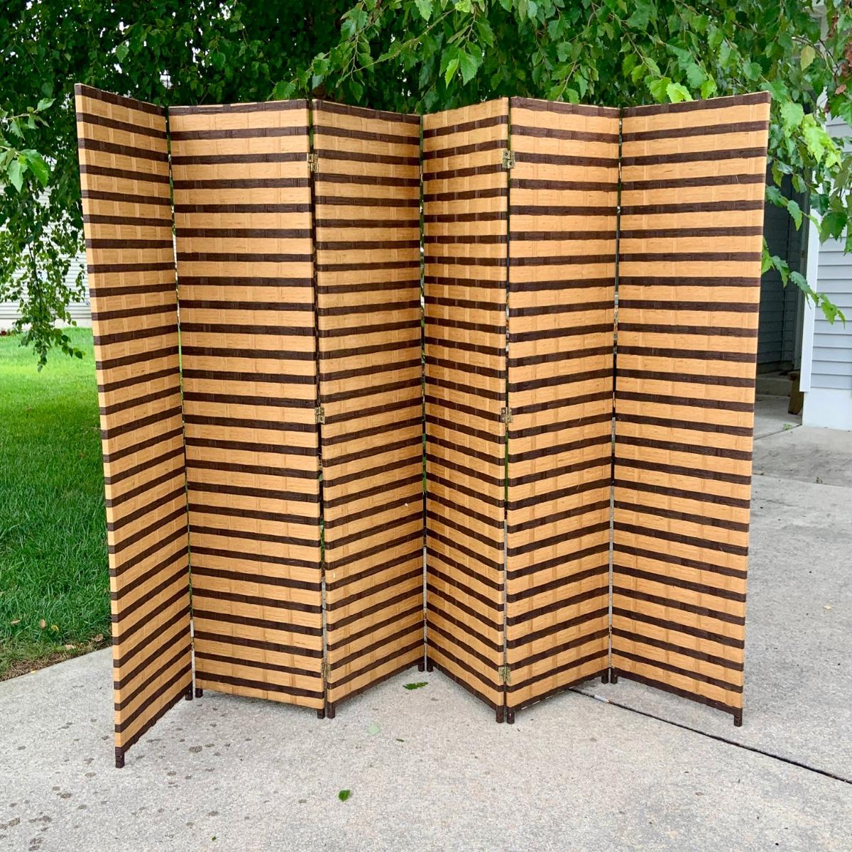 LOT:84: Natural Two-Tone Fiber Woven Six Hinged Panel Screen/Room Divider