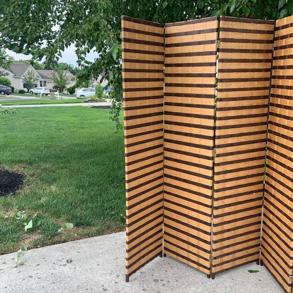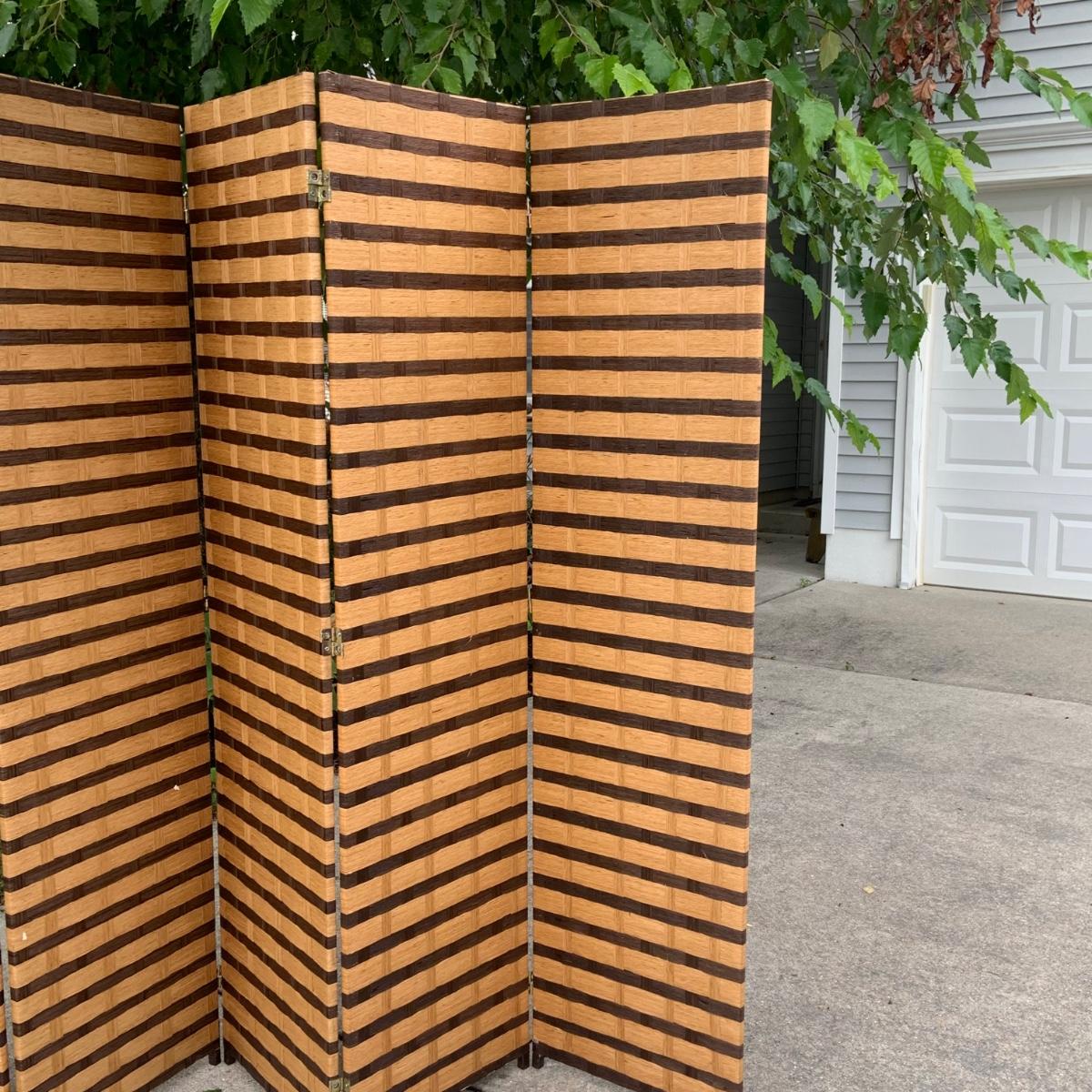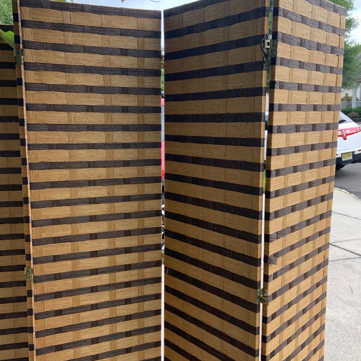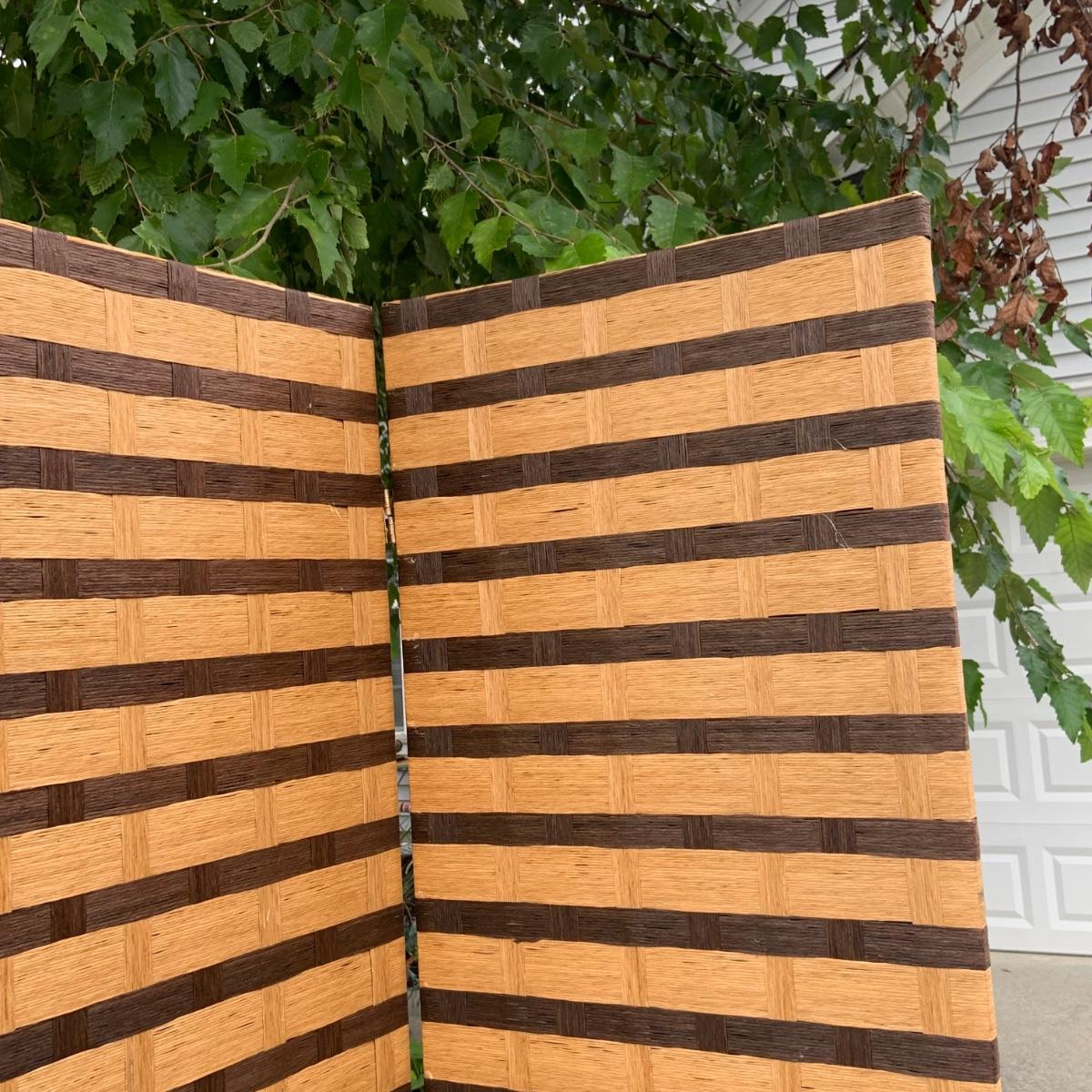 LOT:84: Natural Two-Tone Fiber Woven Six Hinged Panel Screen/Room Divider