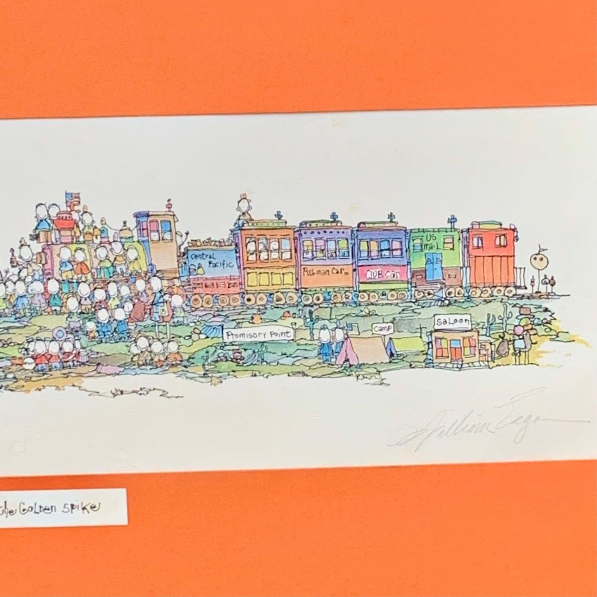LOT:89: Vintage 1973 Signed William Eagan "The Golden Spike" Lithograph