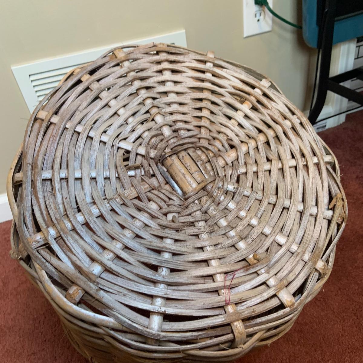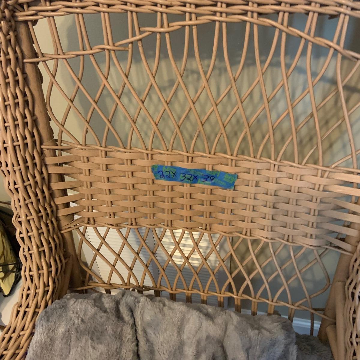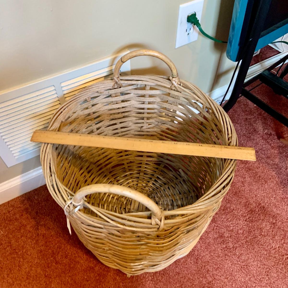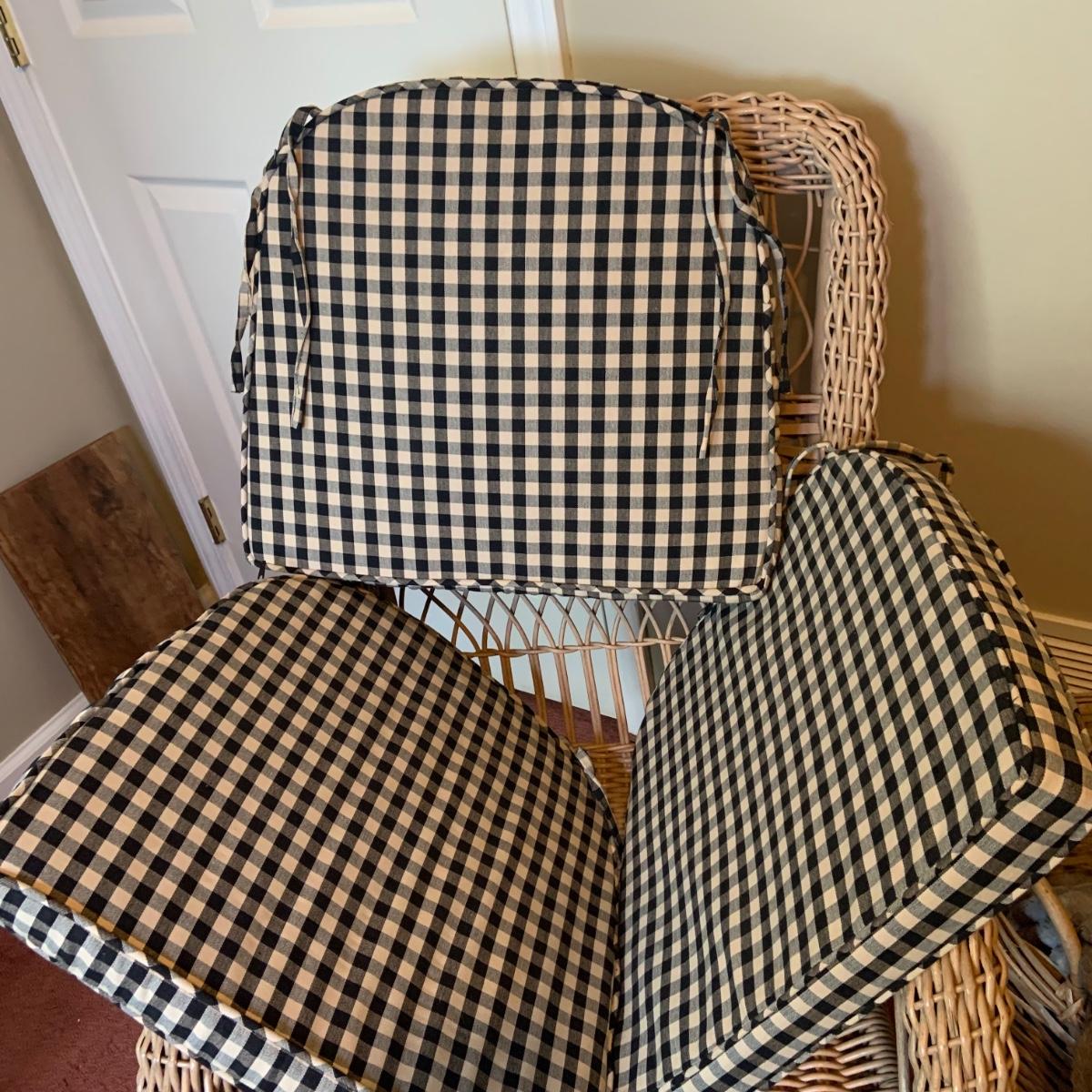 LOT96:: Wicker Rocking Chair, Large Wicker Basket with Handles, Black Gingham Seat Cushions and Cozy Blanker