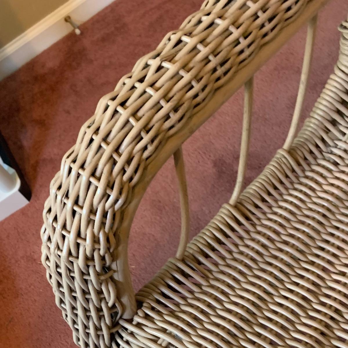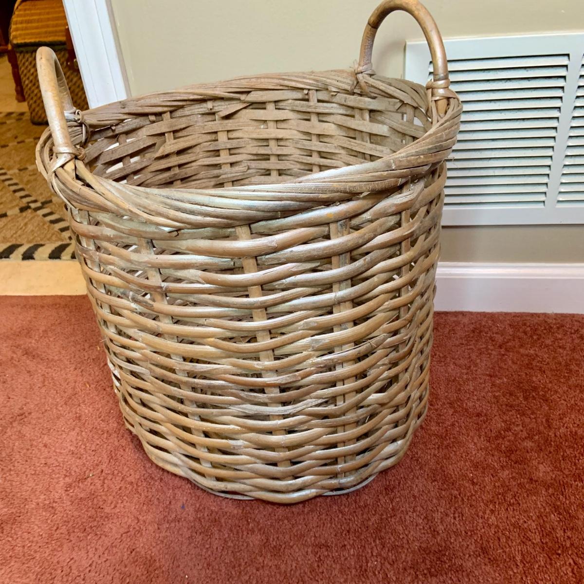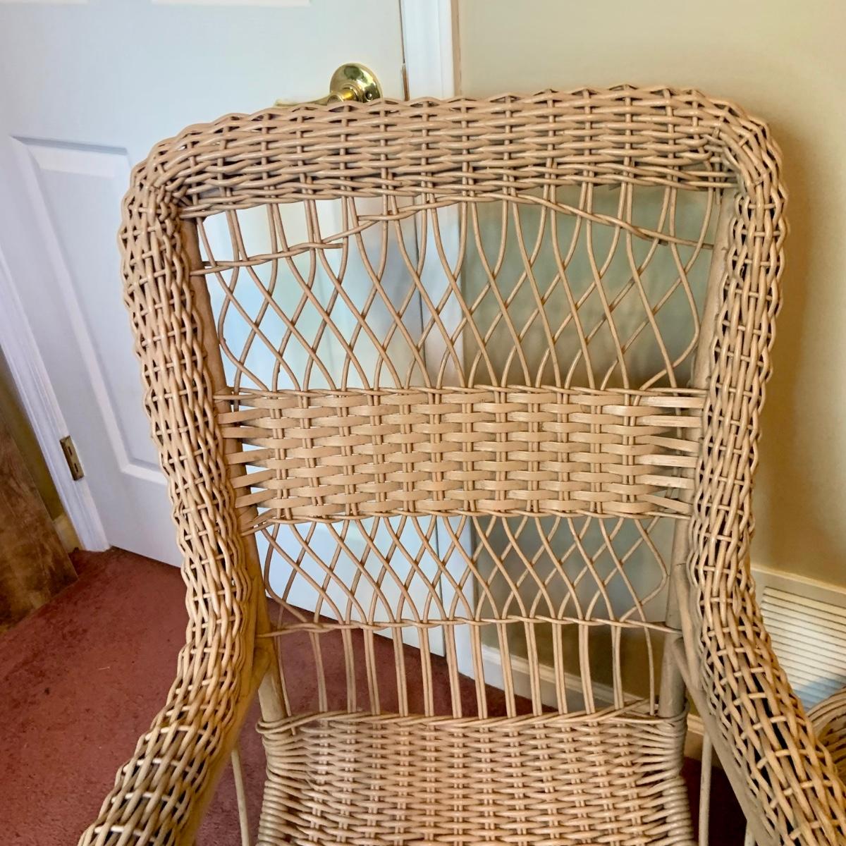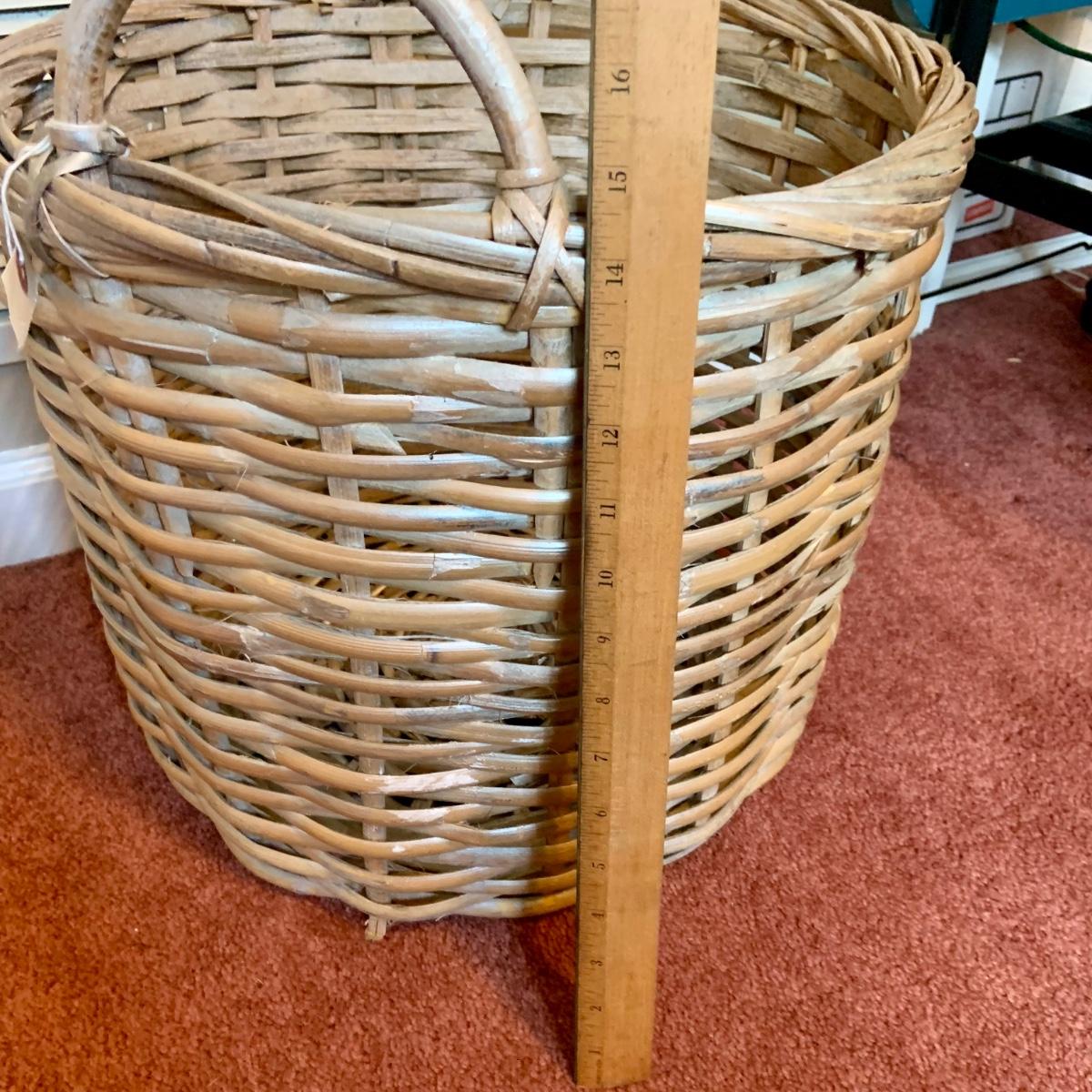 LOT96:: Wicker Rocking Chair, Large Wicker Basket with Handles, Black Gingham Seat Cushions and Cozy Blanker