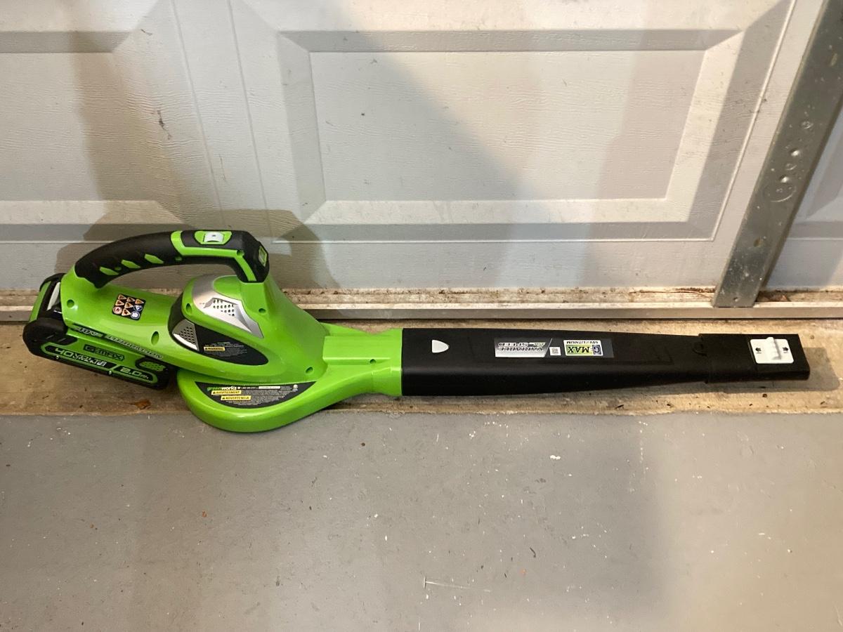 LOT 117G: Greenworks 40v Cordless Leaf Blower with Battery and Charger