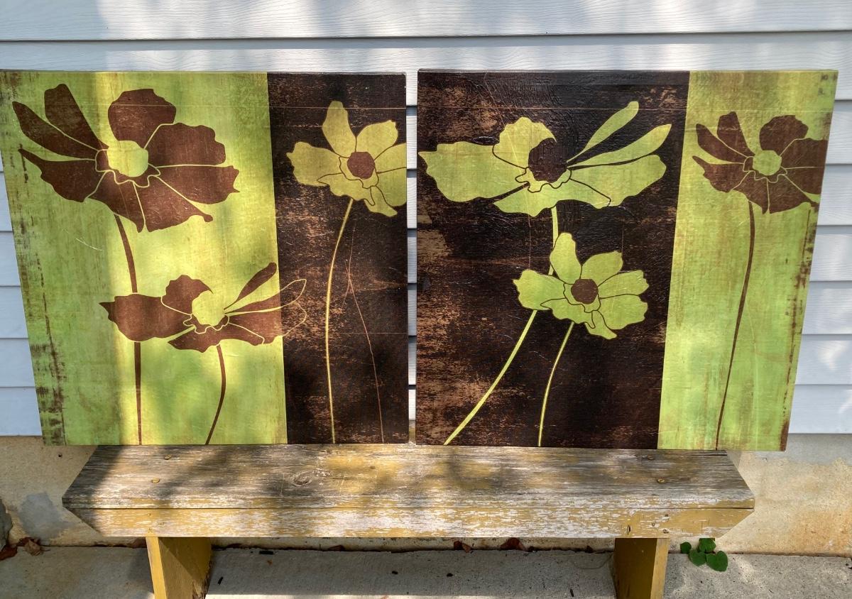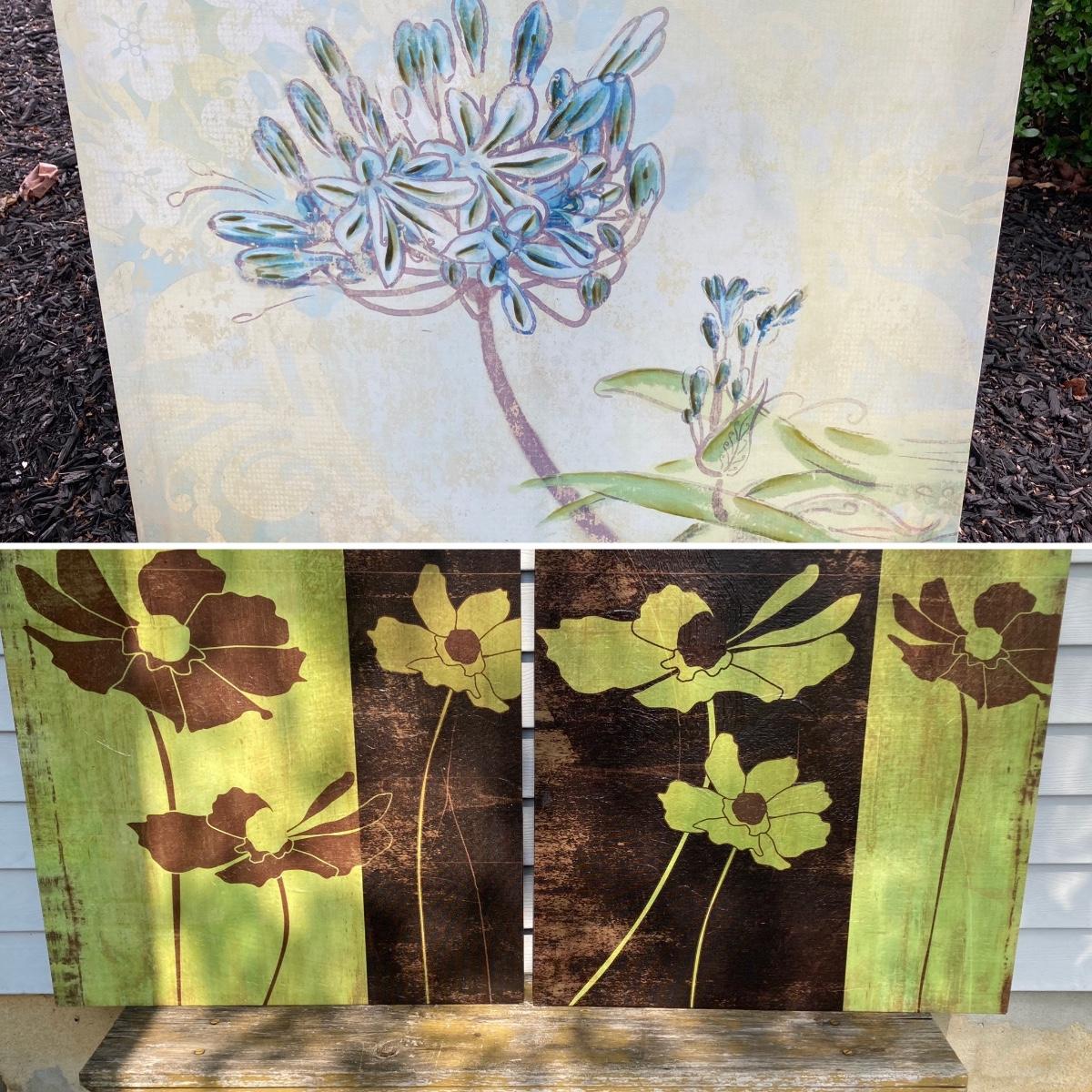 LOT 131G: Three Painted Canvas Wall Art / Prints - Signed Evelia and More