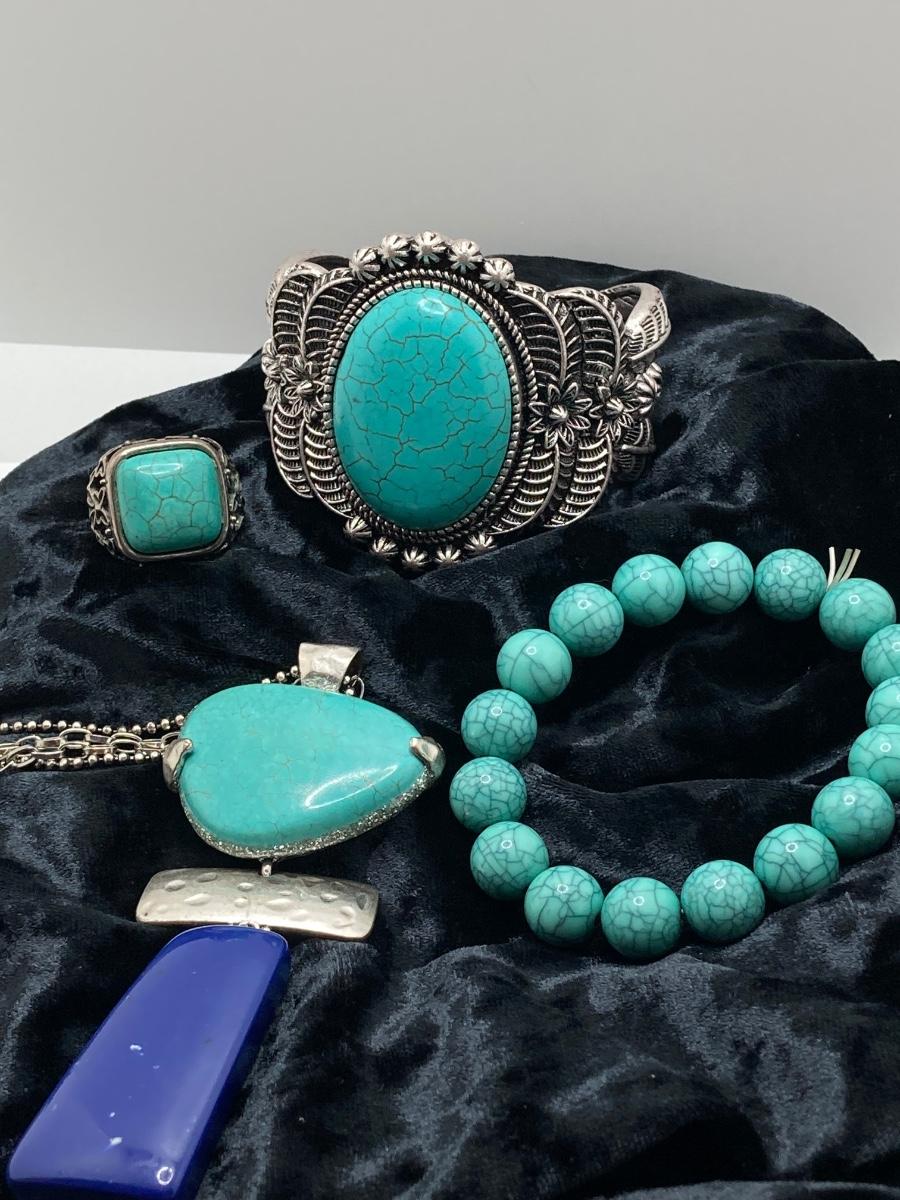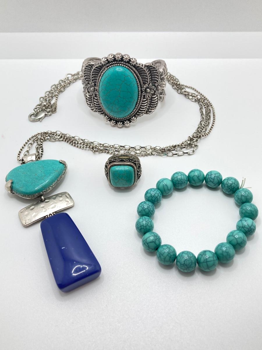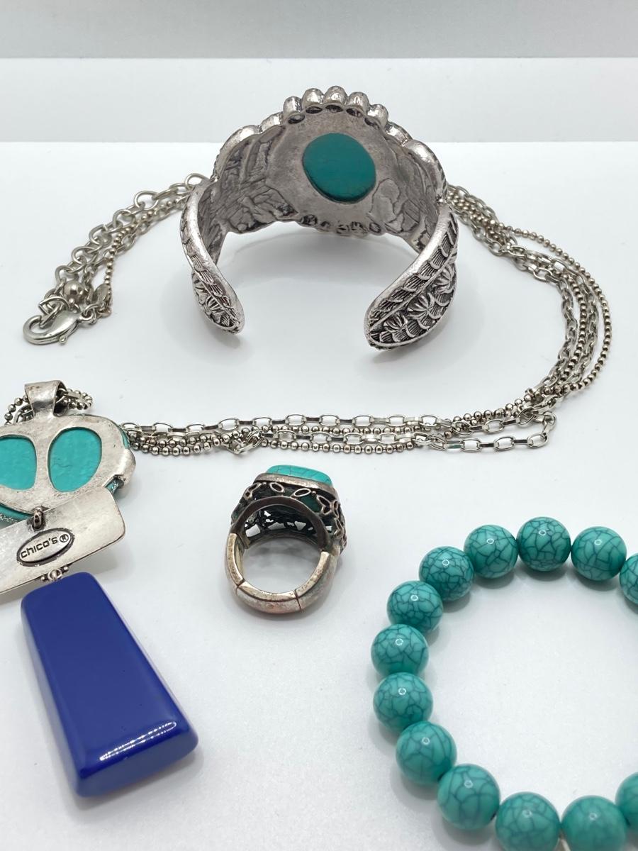 LOT 145: Faux Turquoise Collection and More - Cuff Bracelet, Ring, Chico's Necklace