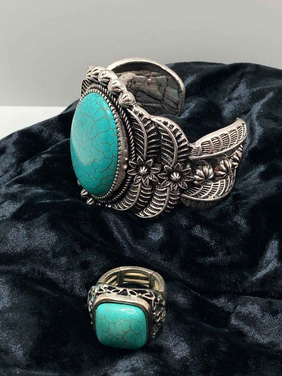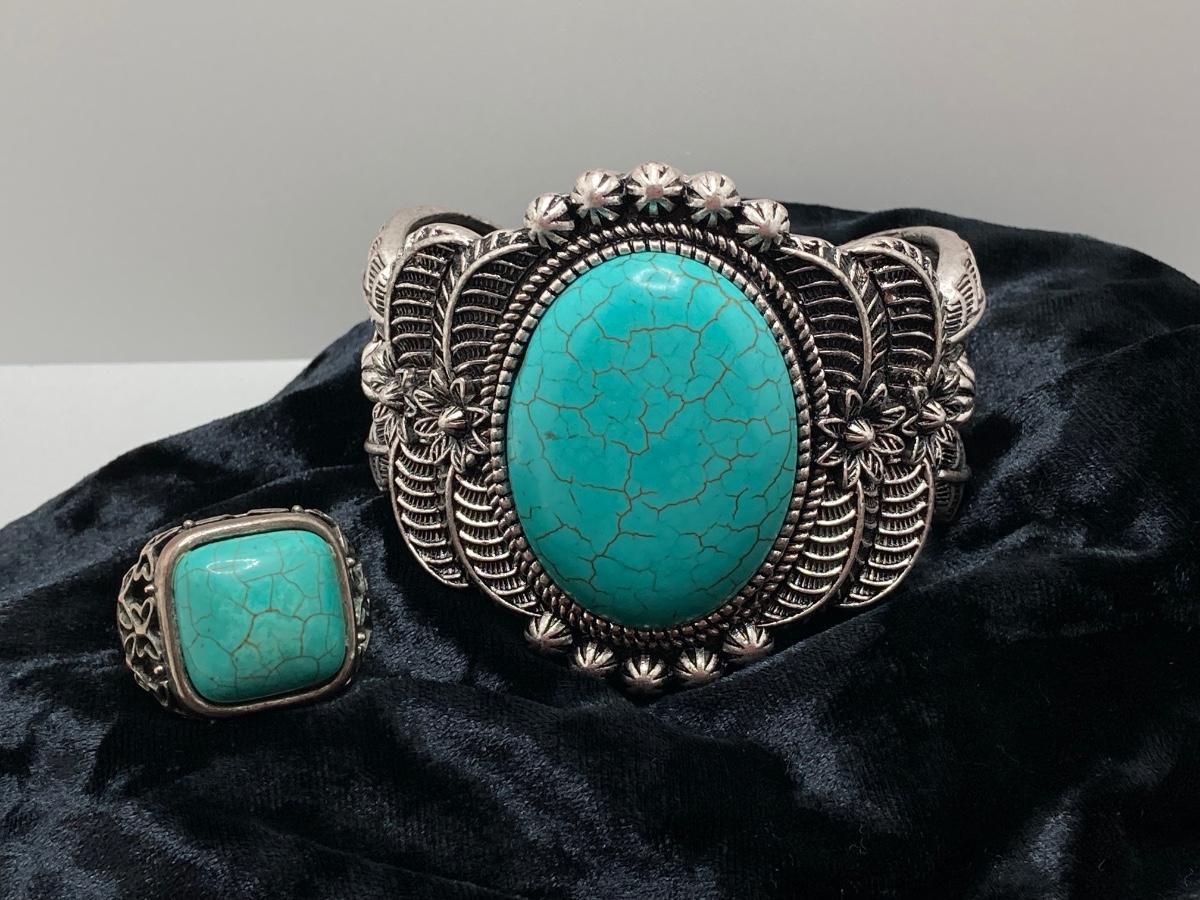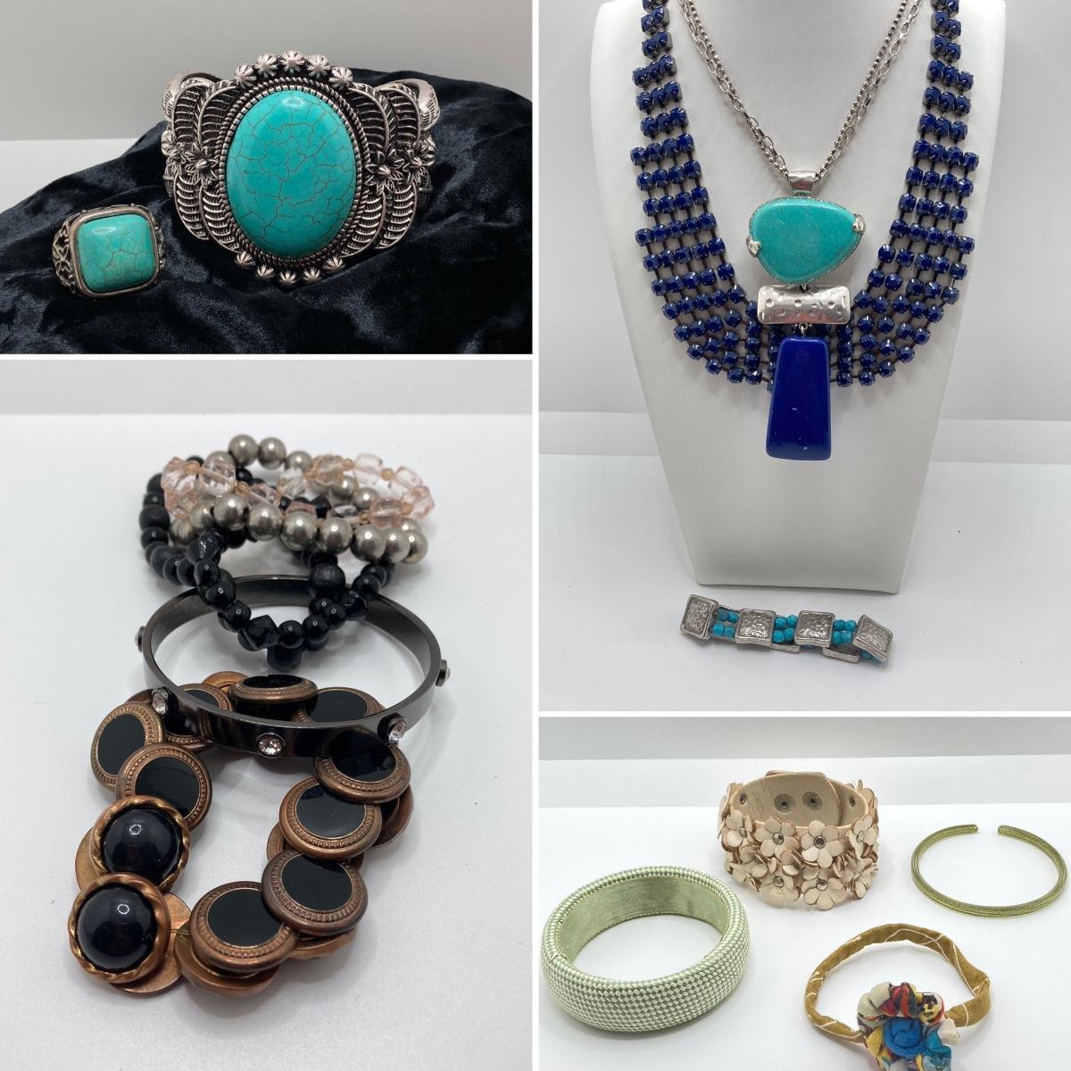 LOT 145: Faux Turquoise Collection and More - Cuff Bracelet, Ring, Chico's Necklace