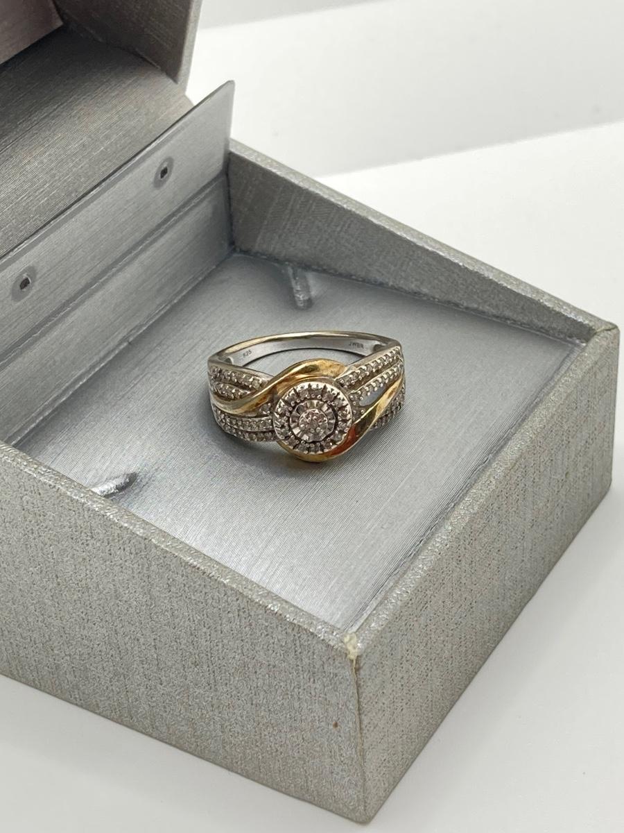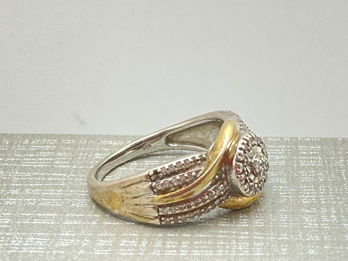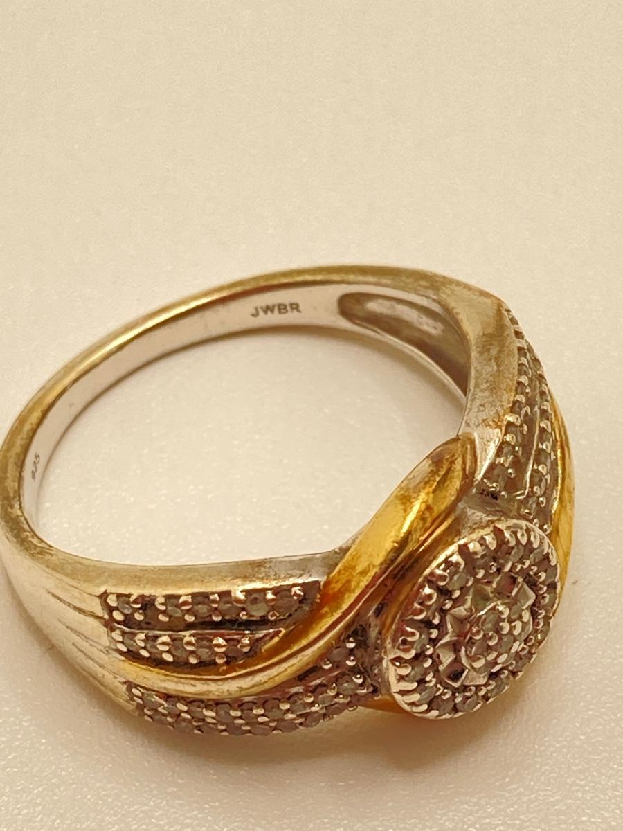 LOT 148: JWBR Sterling and Diamond Two Tone Deco Style Ring - Sz 7