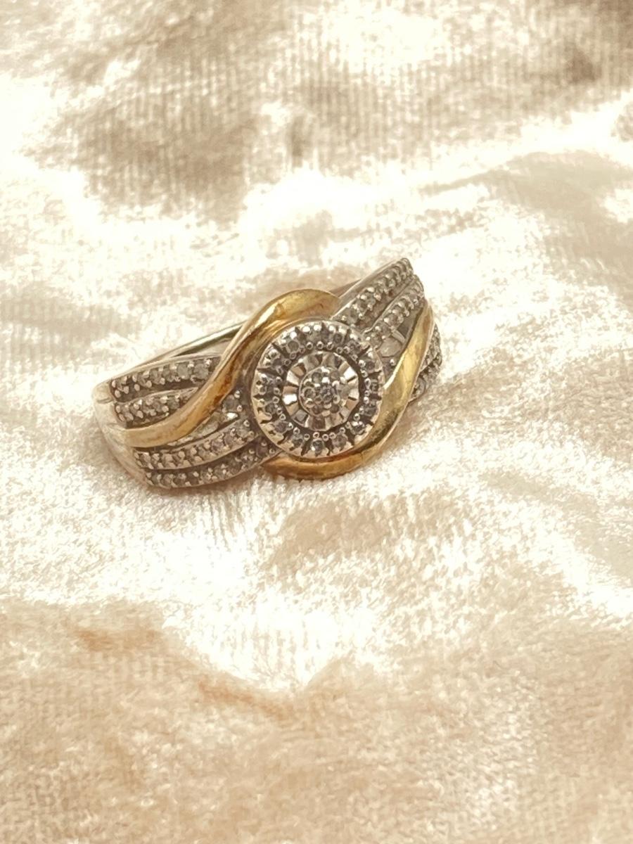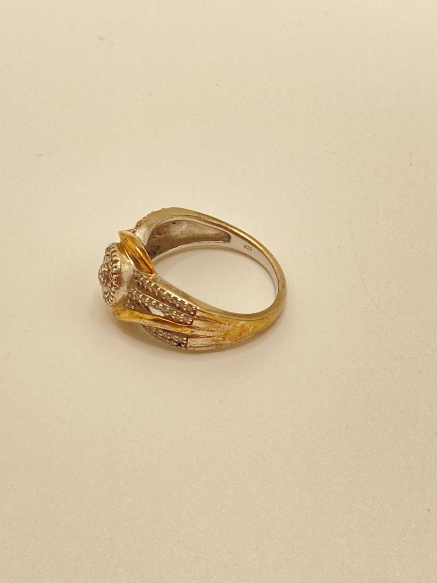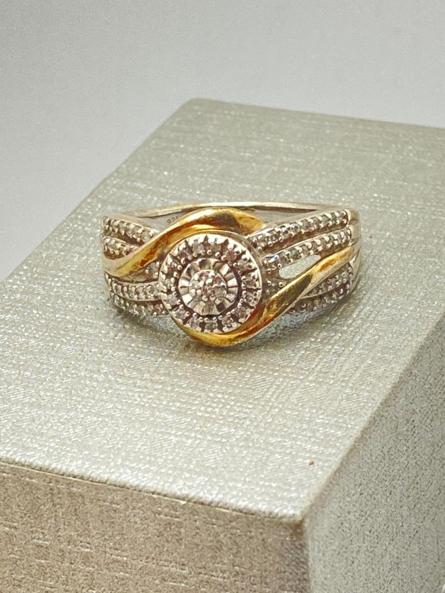 LOT 148: JWBR Sterling and Diamond Two Tone Deco Style Ring - Sz 7
