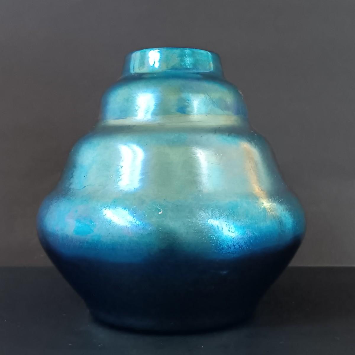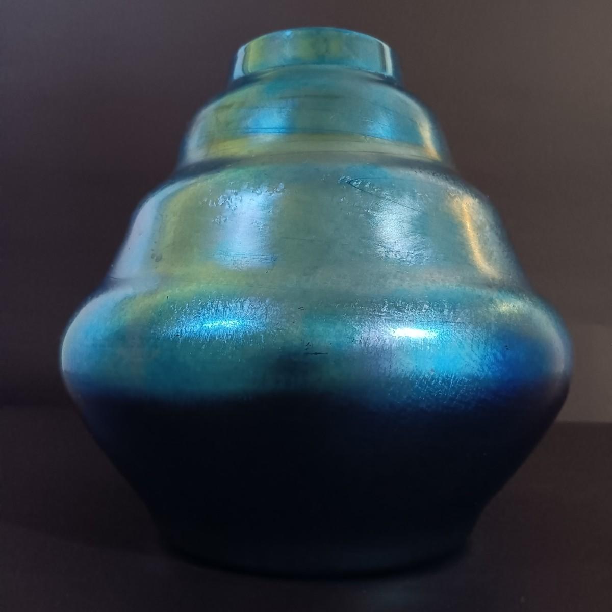 LOT 16: Vineland NJ Durand Signed Blue Beehive Art Glass Vase 1979-6- Vineland Flint Glass Works