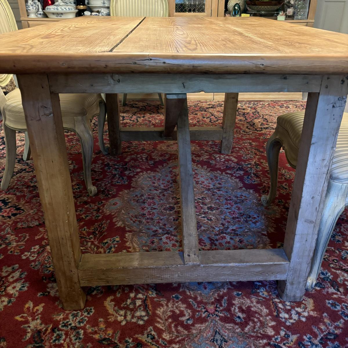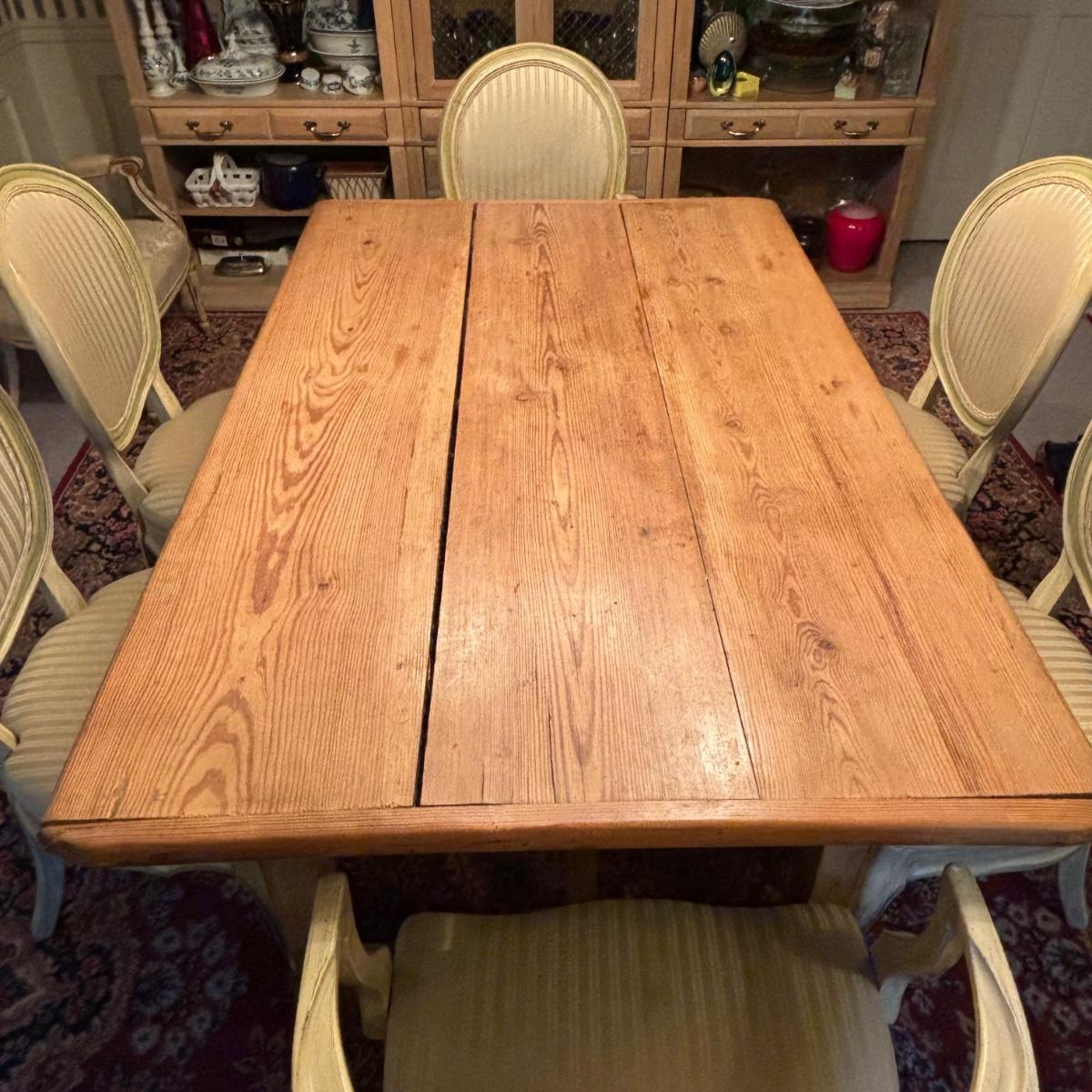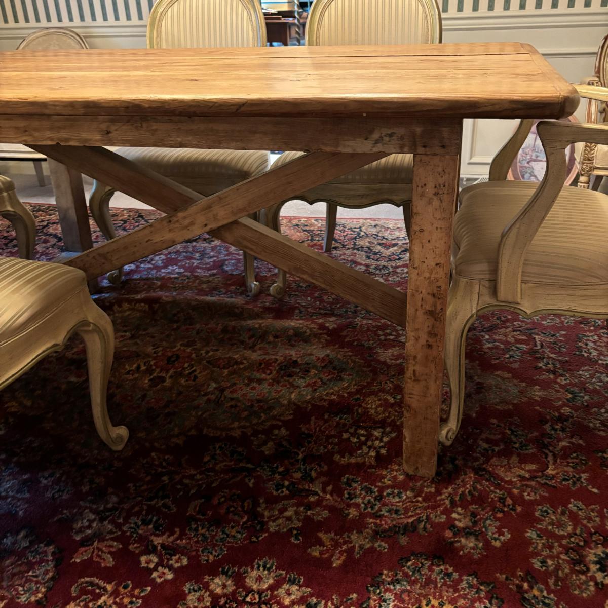 LOT 28: Rustic Farmhouse Table w/French Country Upholstered Cottage Chairs