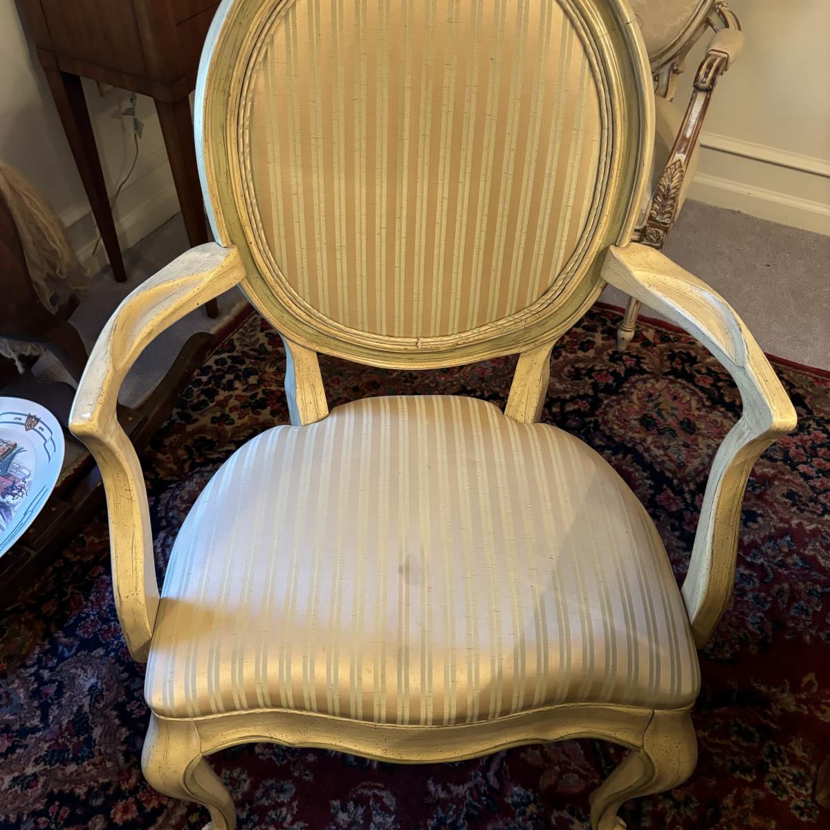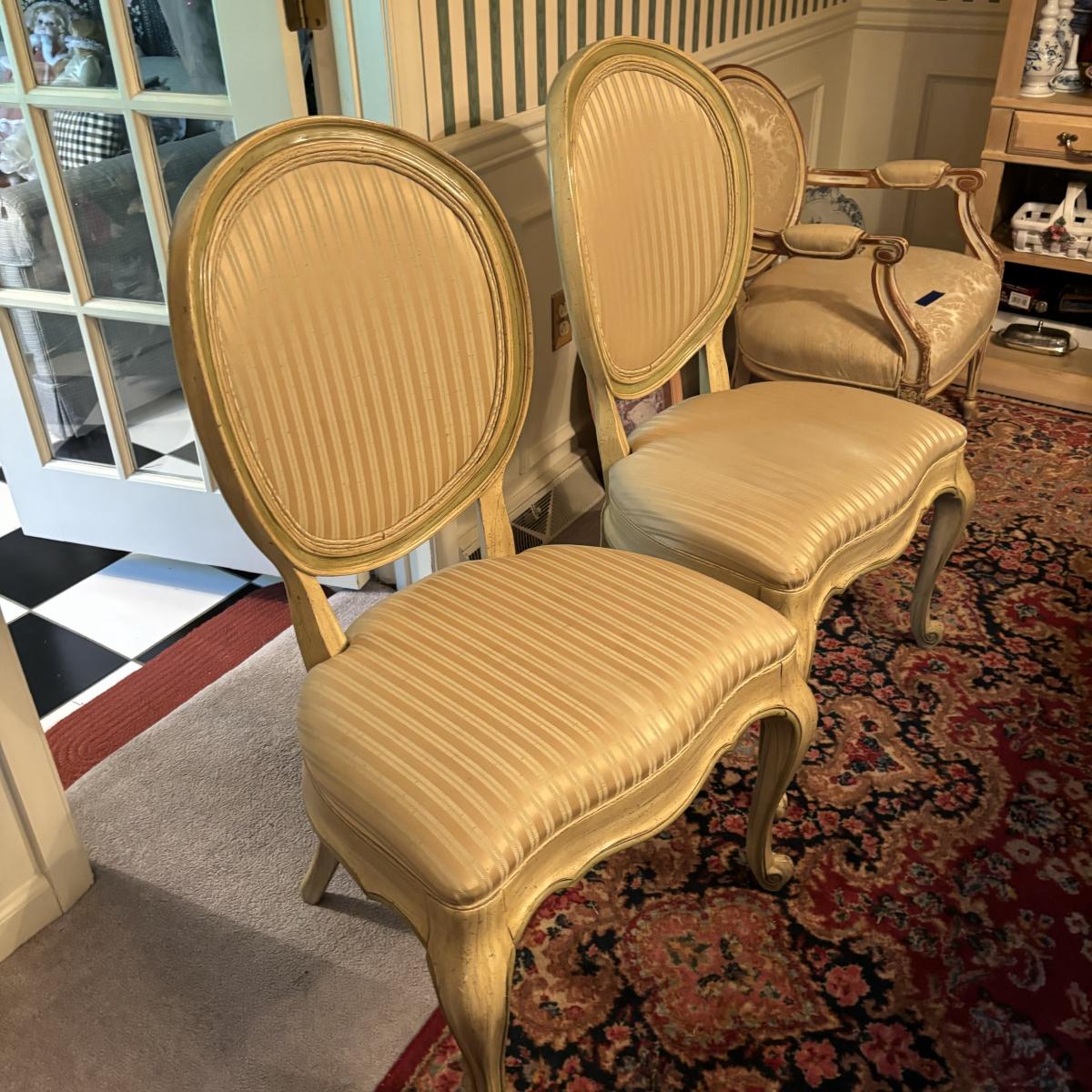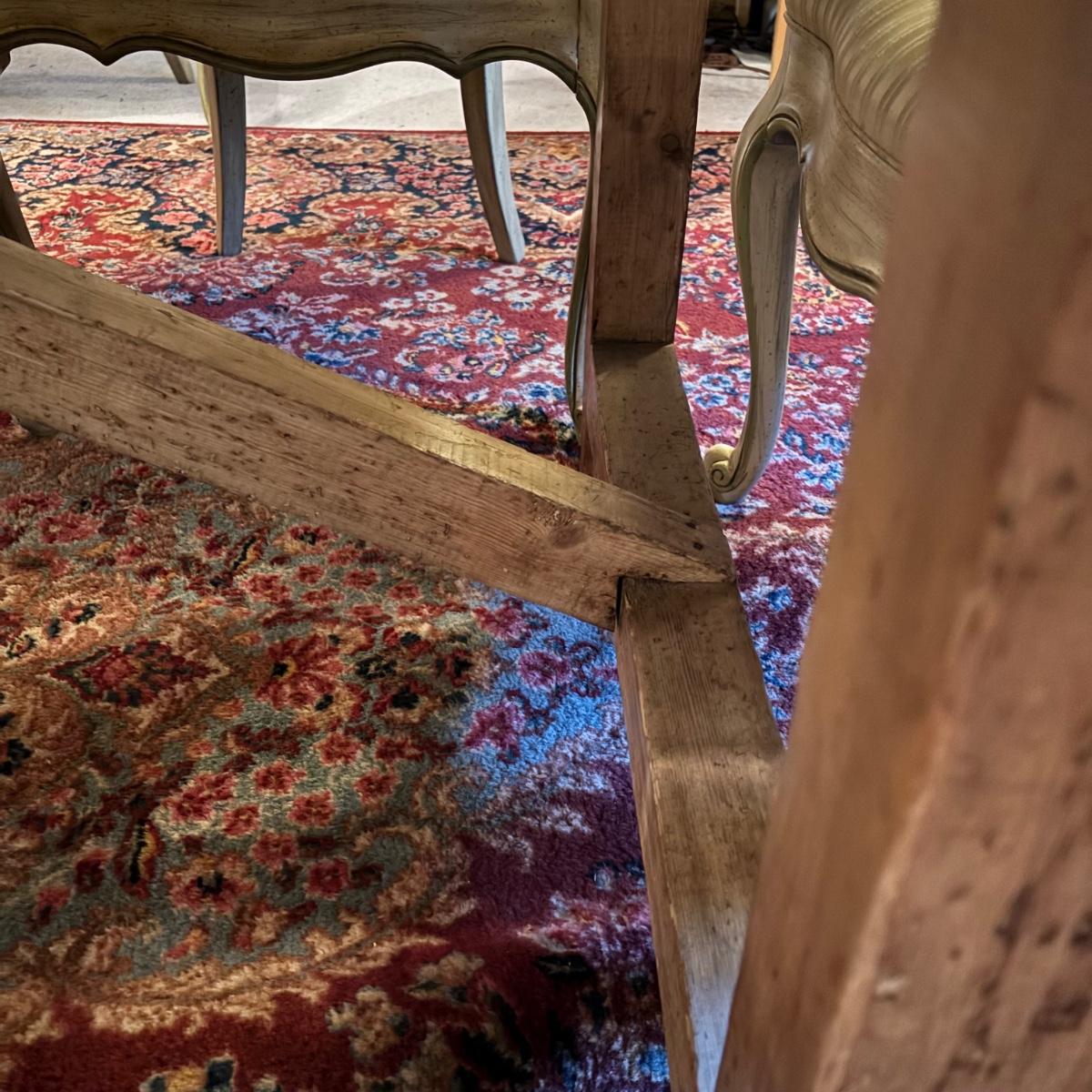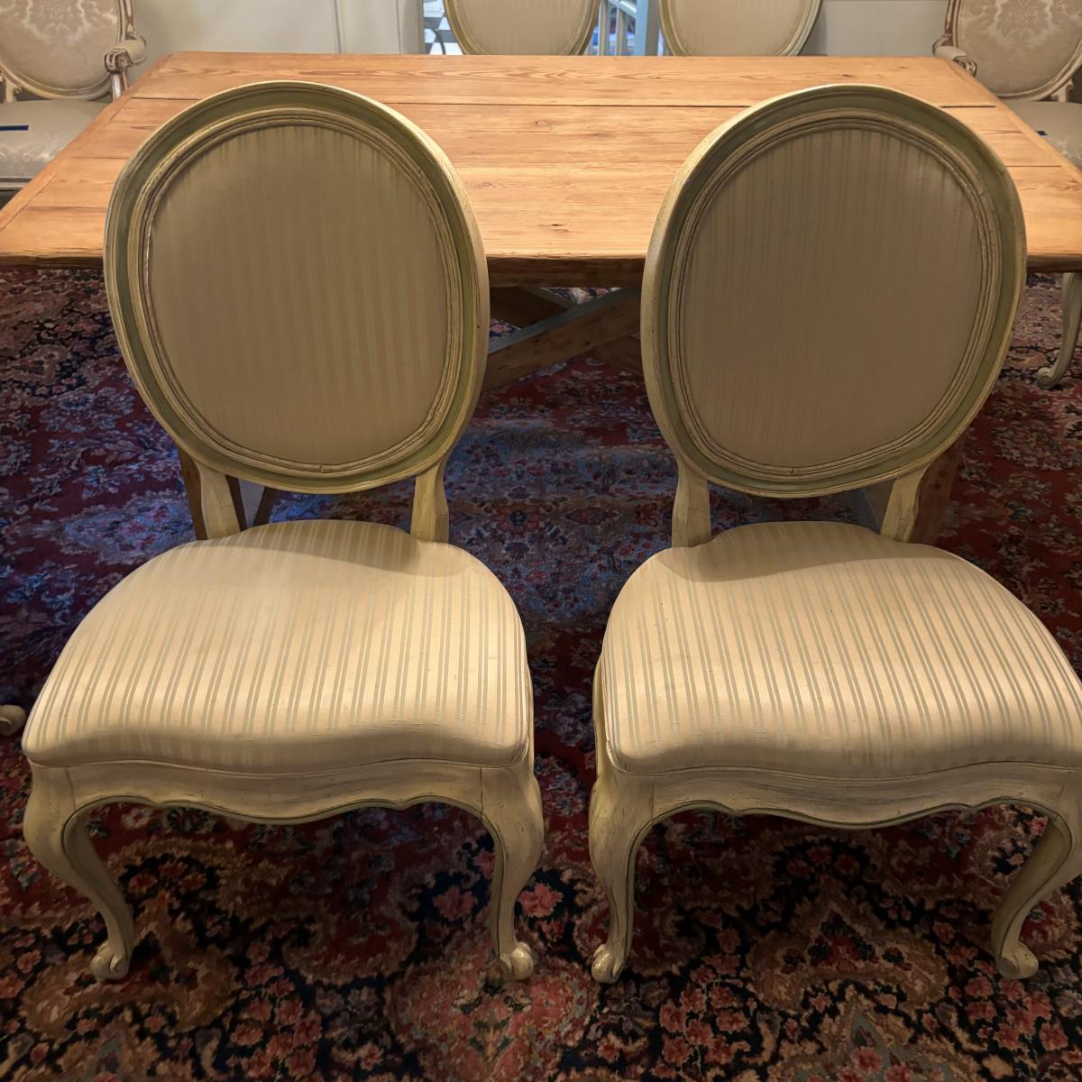 LOT 28: Rustic Farmhouse Table w/French Country Upholstered Cottage Chairs