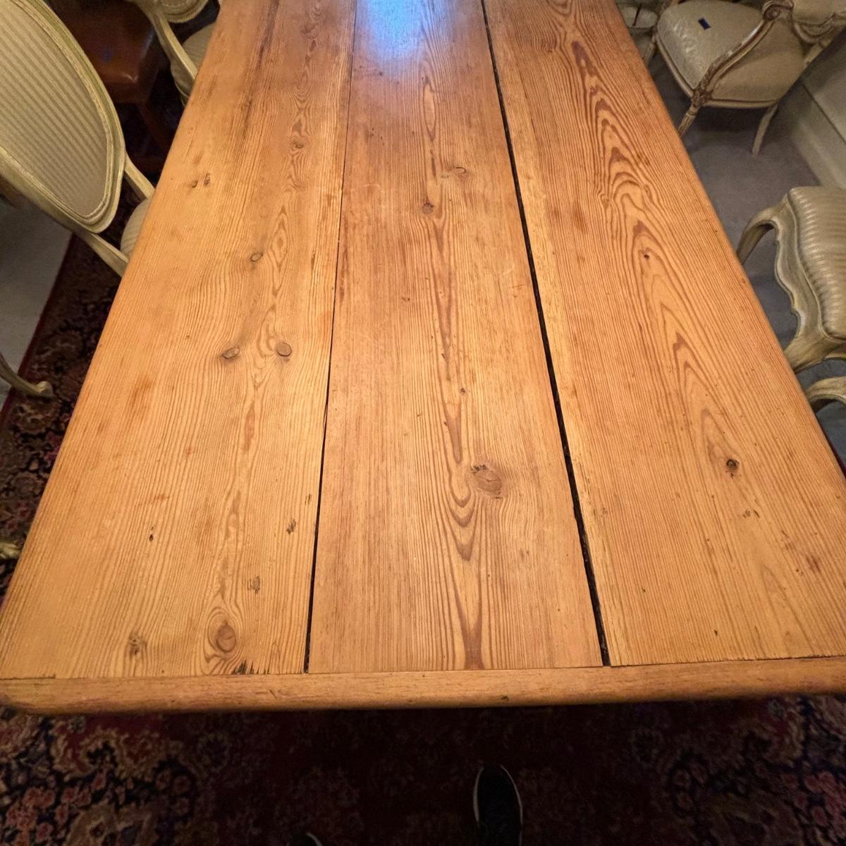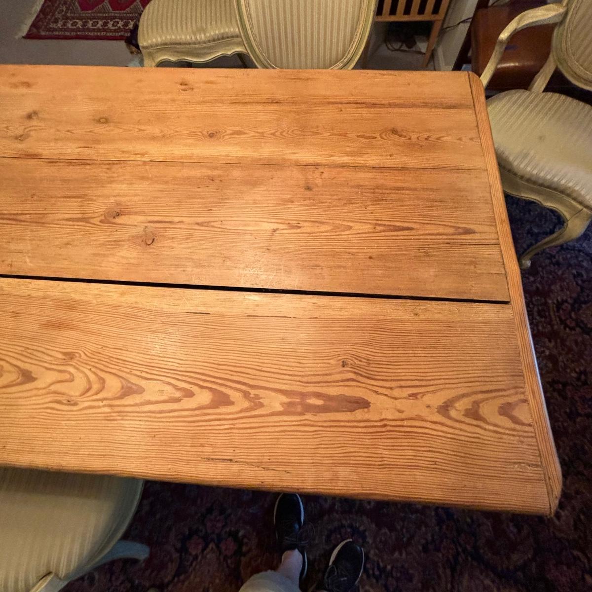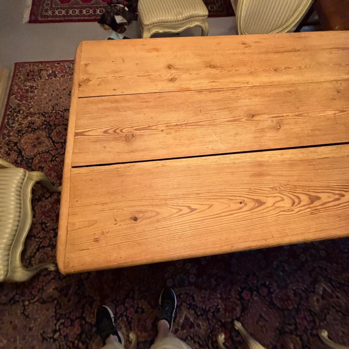 Table is very rustic with a split or two in the tabletop - as pictures show
