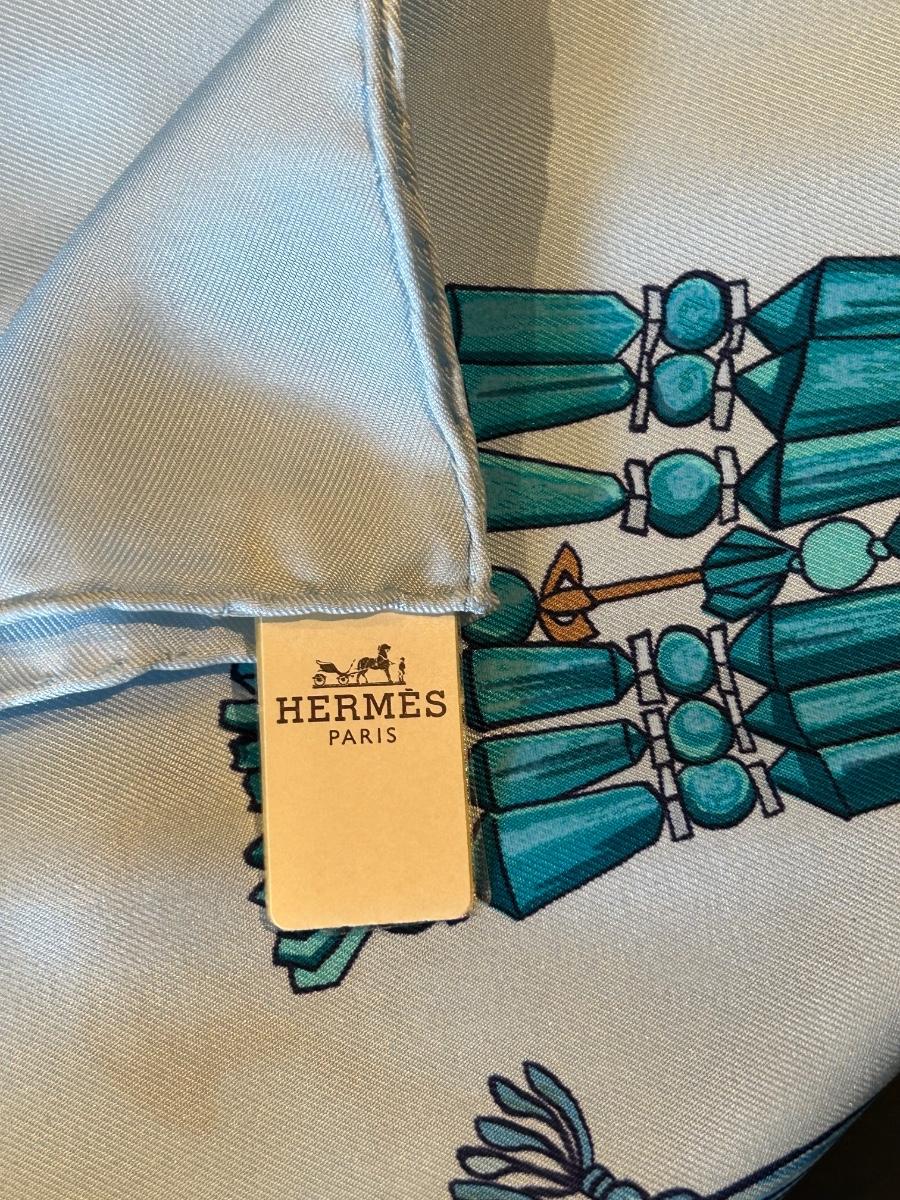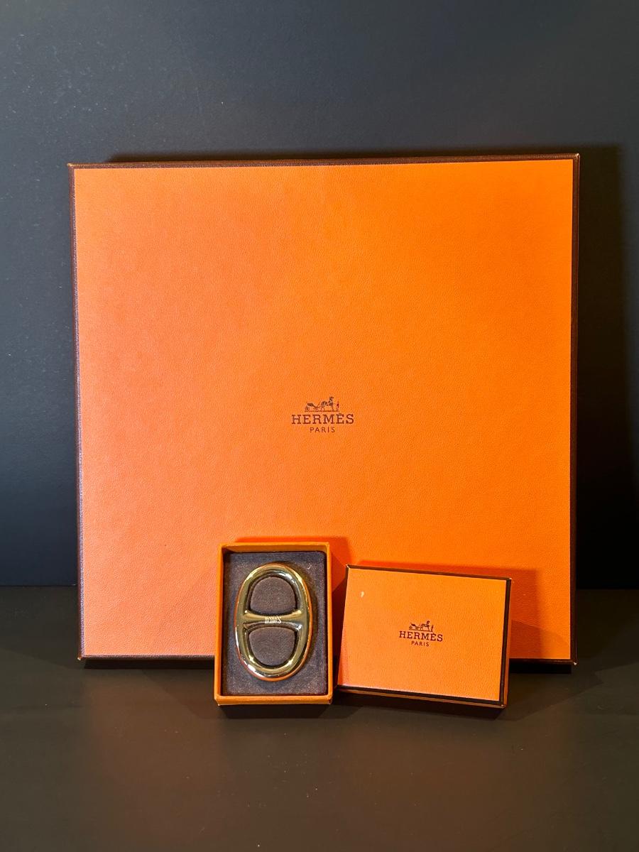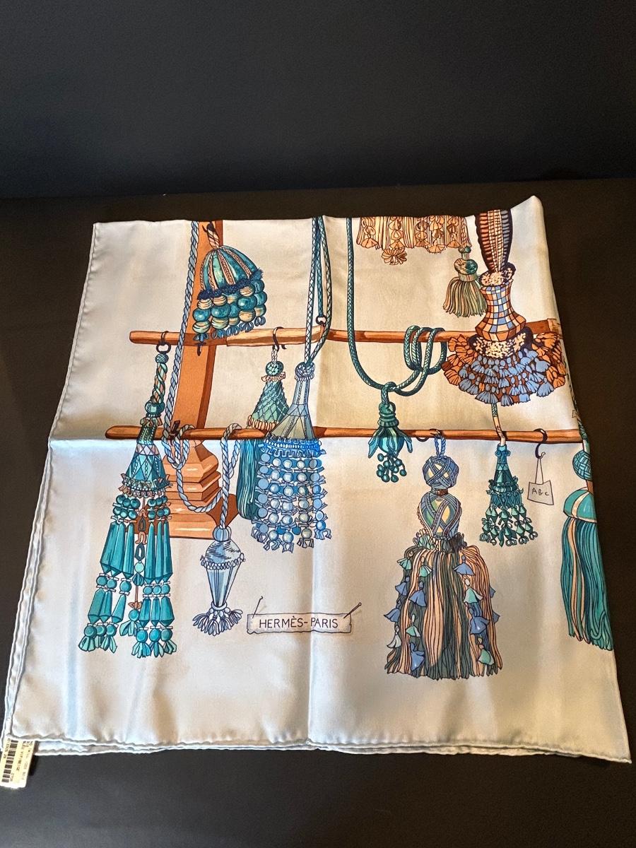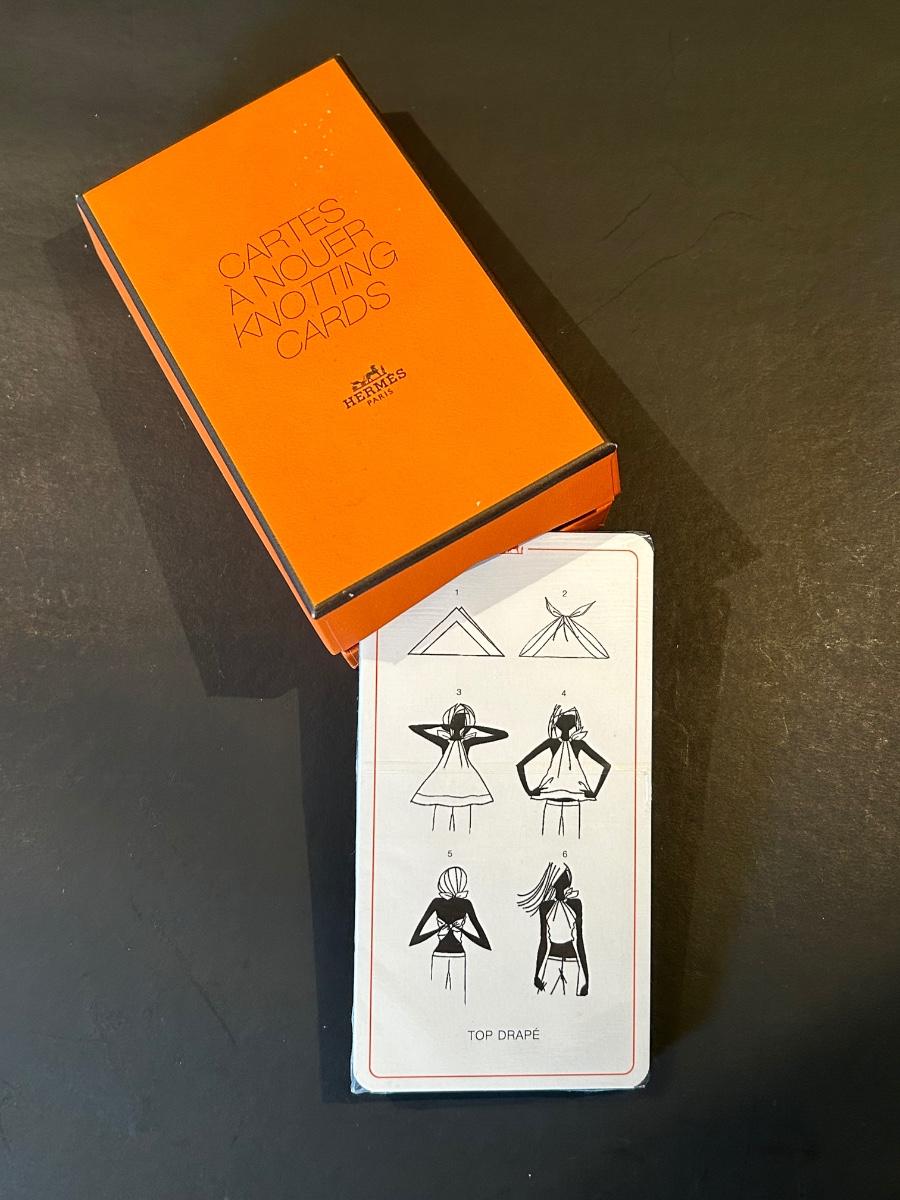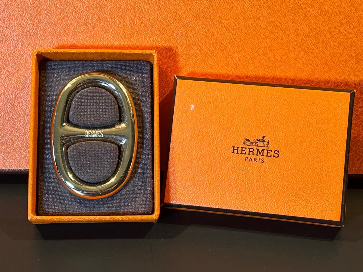 LOT 50BR: Hermes Silk Scarf & Hermes Gold Scarf Clip - Includes Hermes Boxes, Style Cards and Book