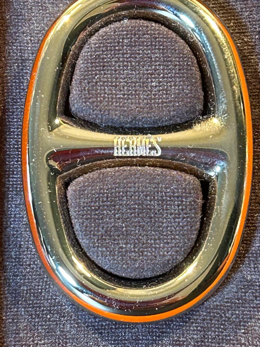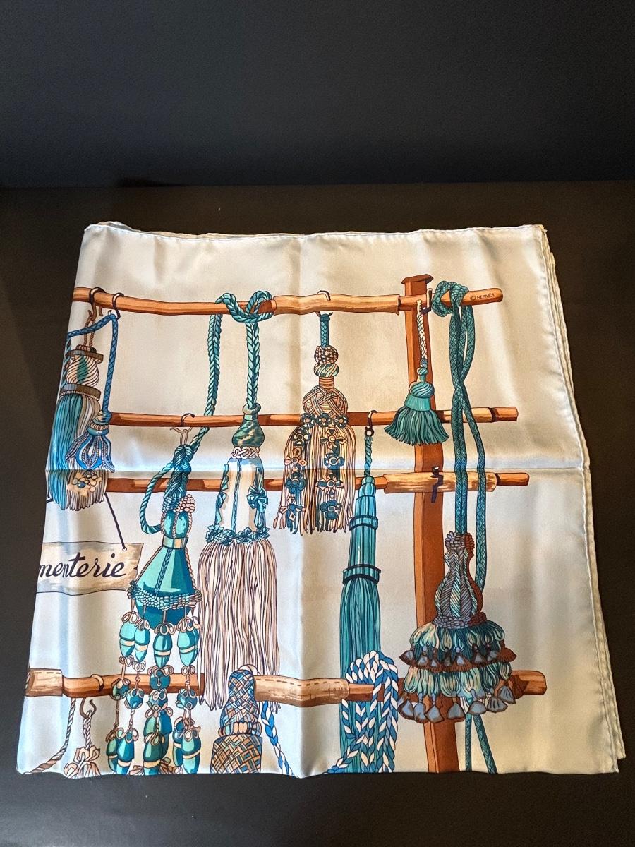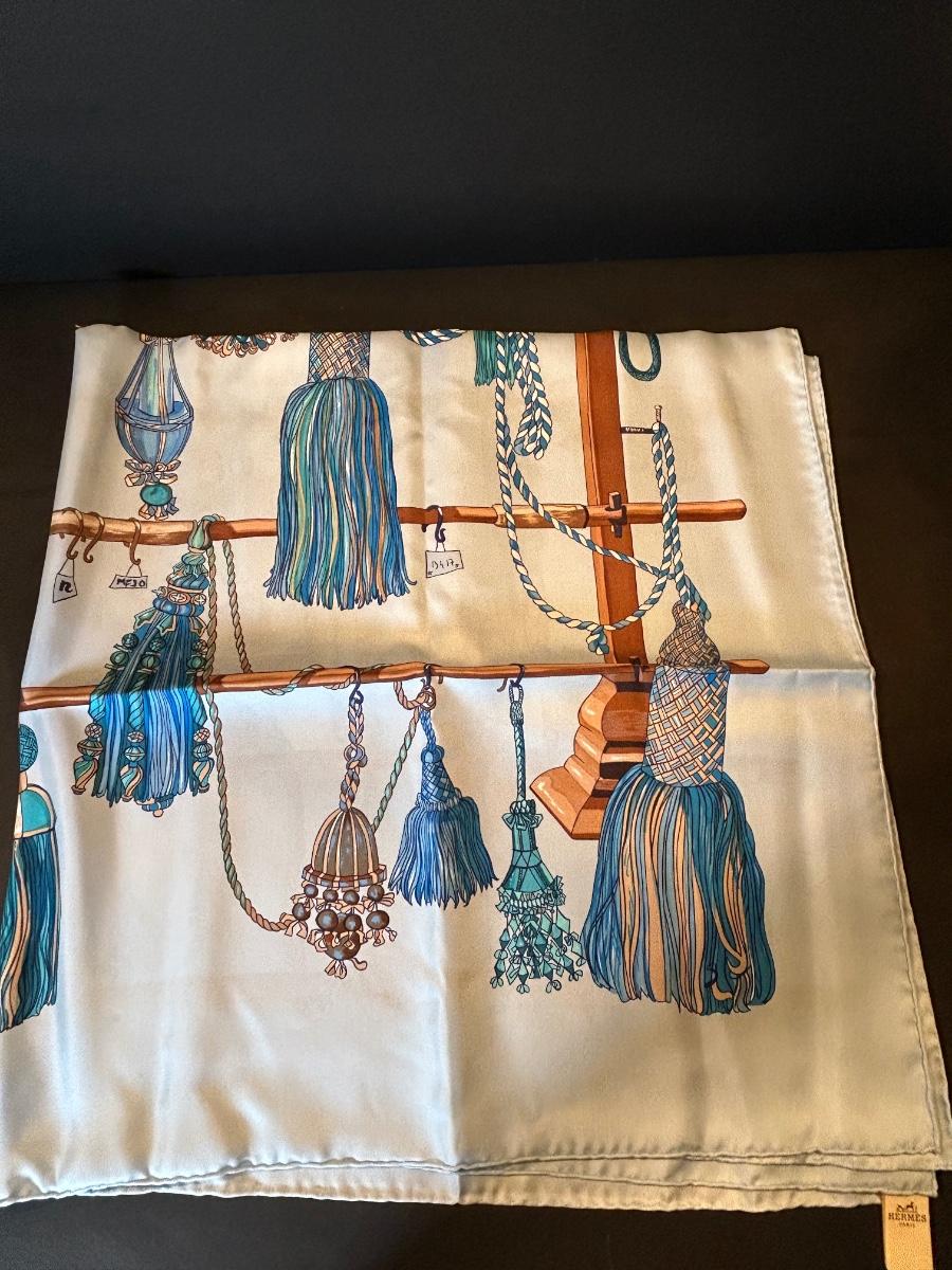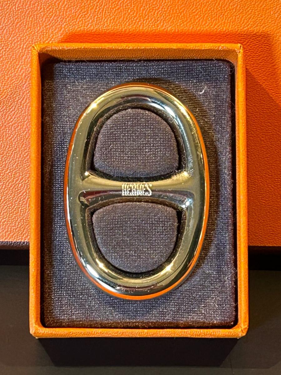 LOT 50BR: Hermes Silk Scarf & Hermes Gold Scarf Clip - Includes Hermes Boxes, Style Cards and Book