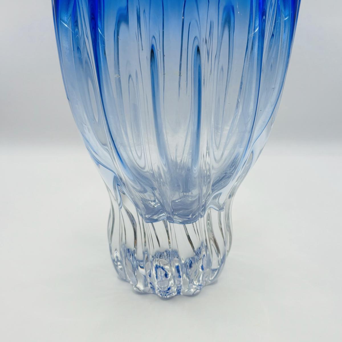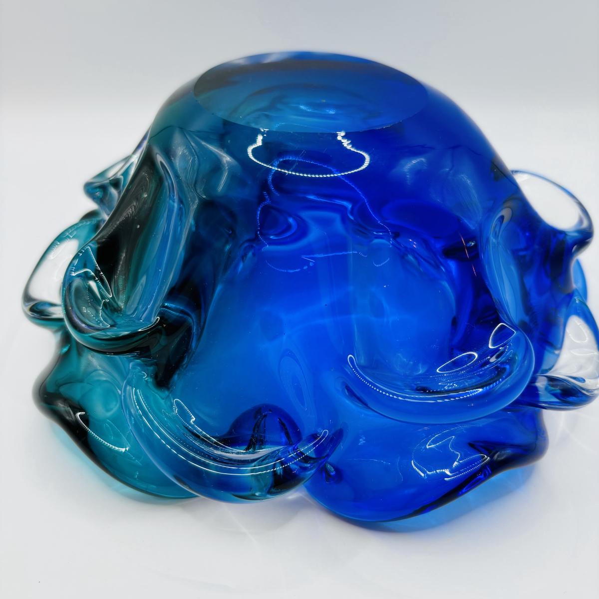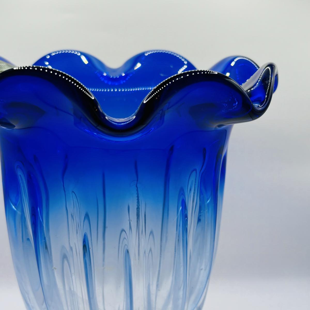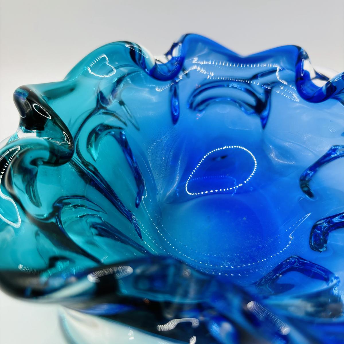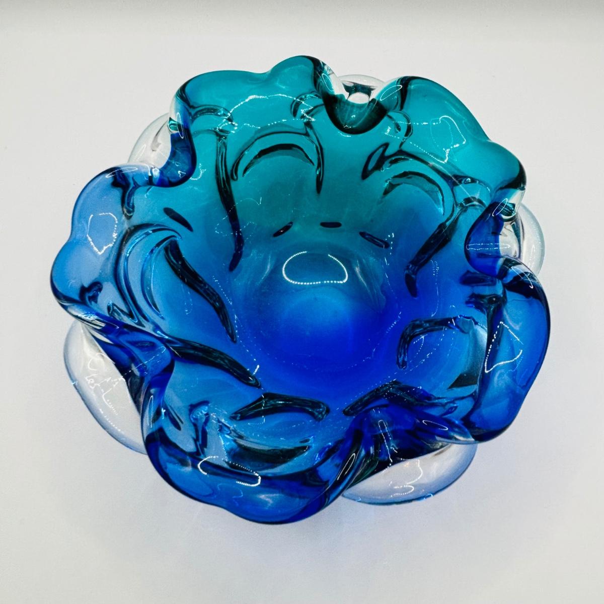 LOT 55: Beautiful Blue to Clear Shannon Crystal Vase & Vintage Murano Style Blue & Green Glass Bowl w/ Wavy Petals