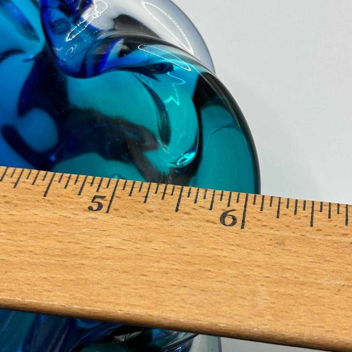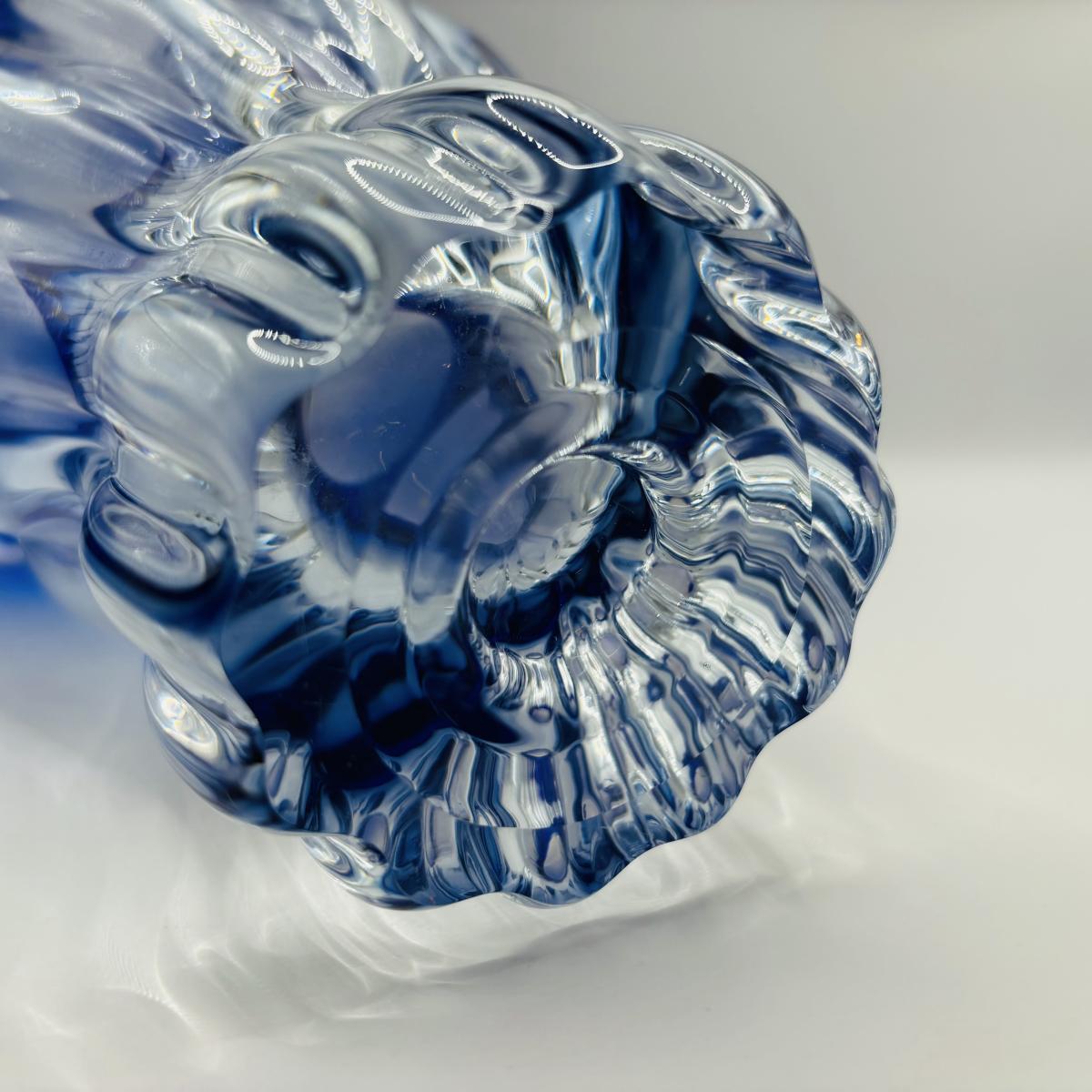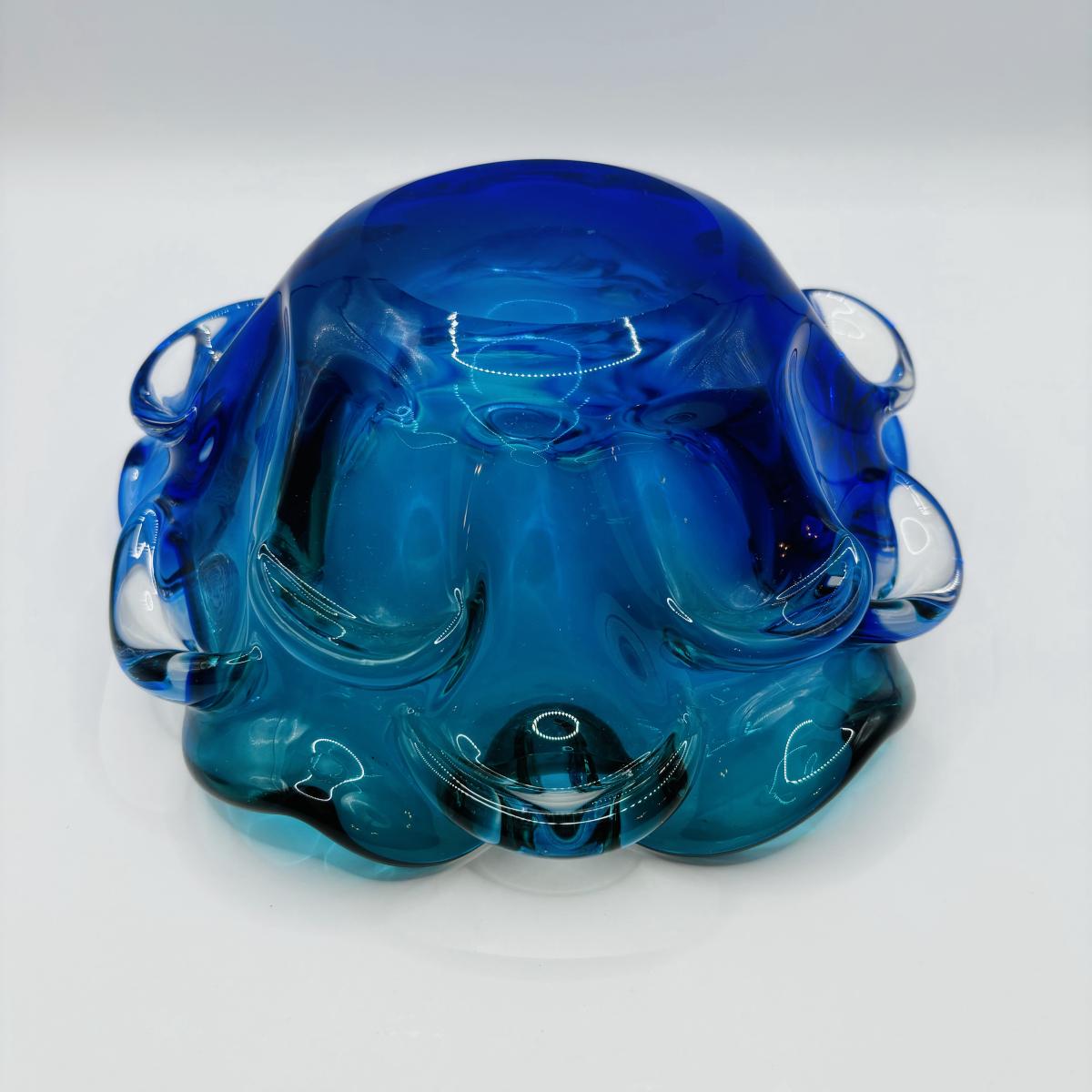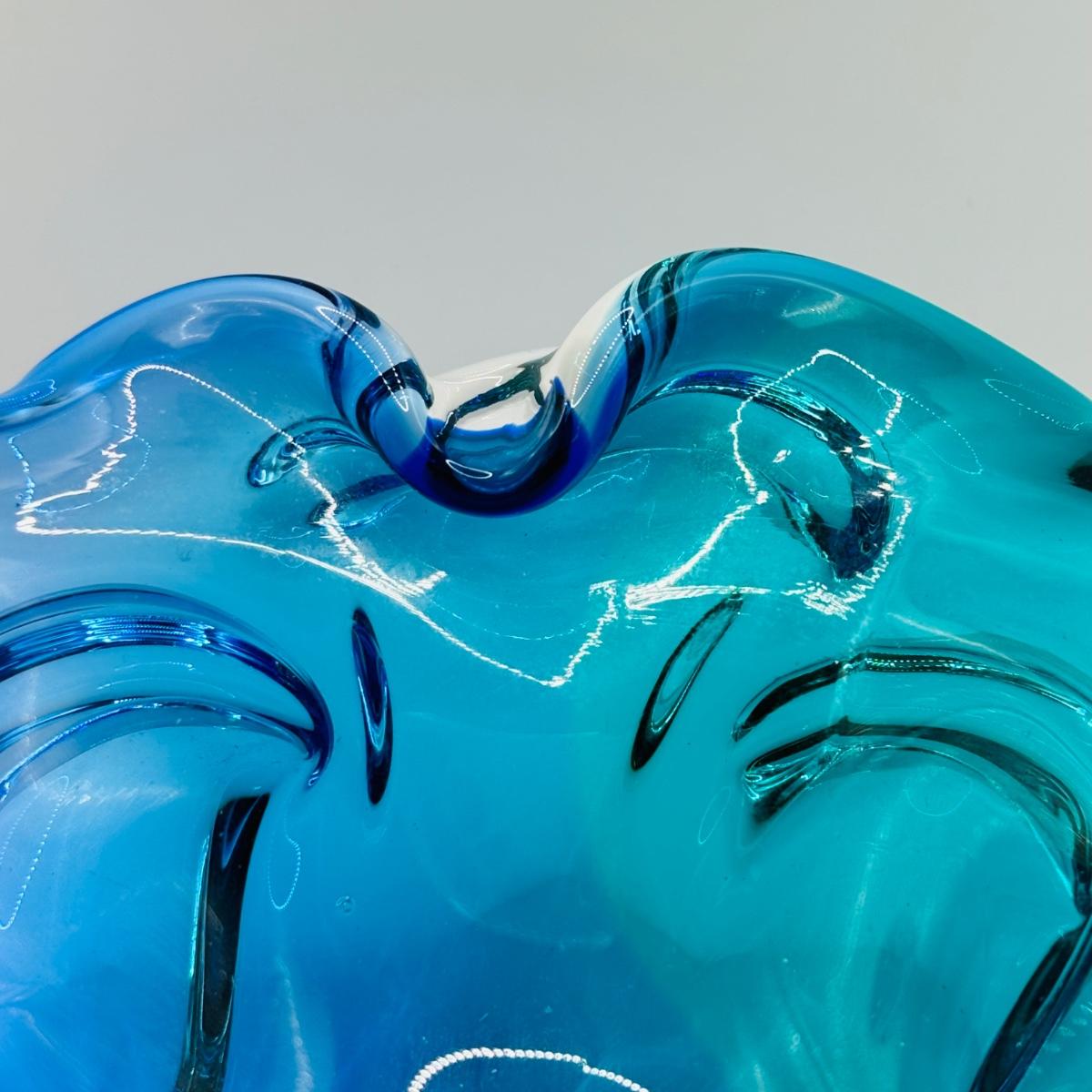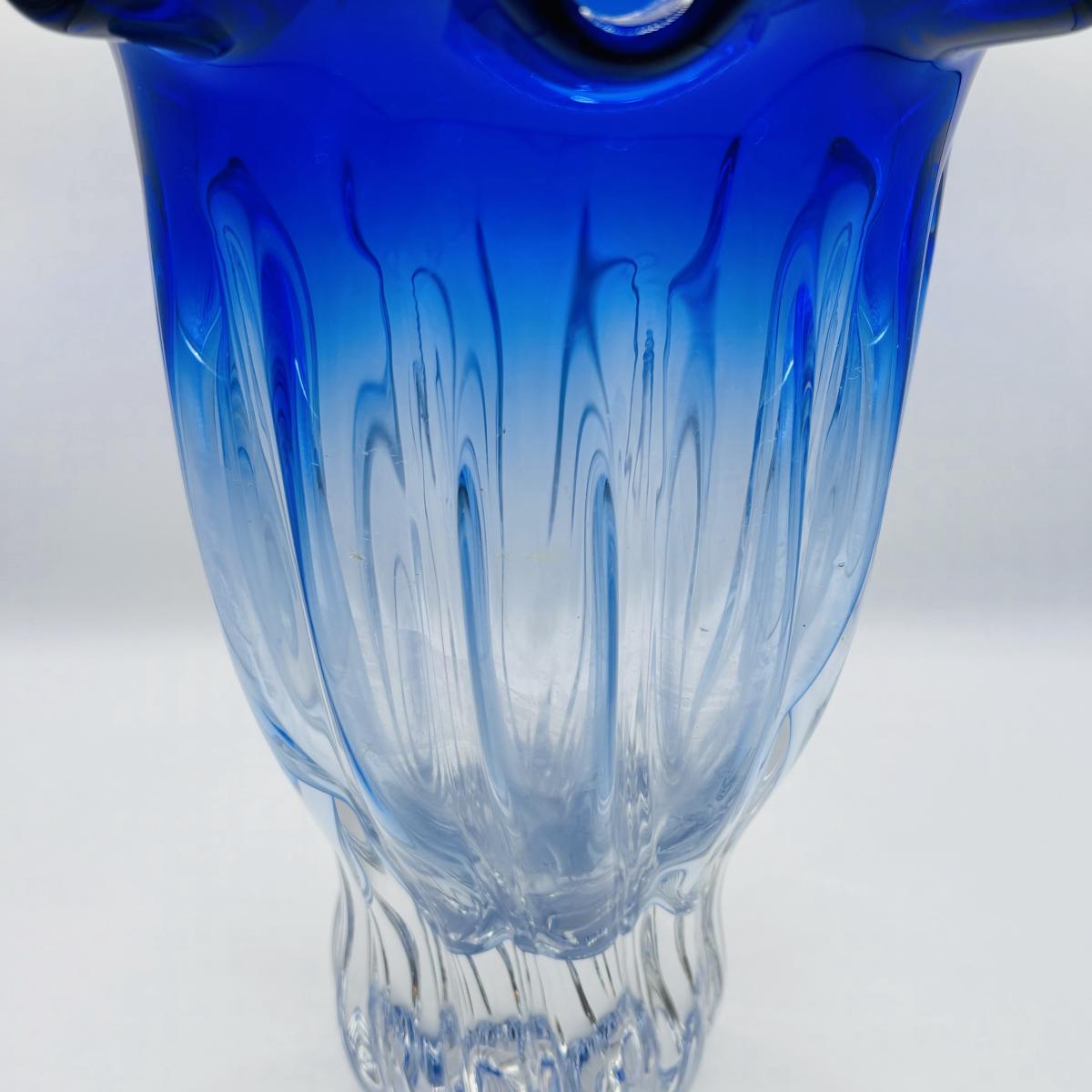 LOT 55: Beautiful Blue to Clear Shannon Crystal Vase & Vintage Murano Style Blue & Green Glass Bowl w/ Wavy Petals