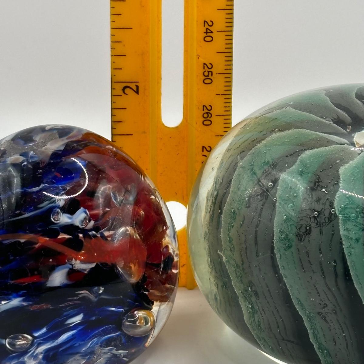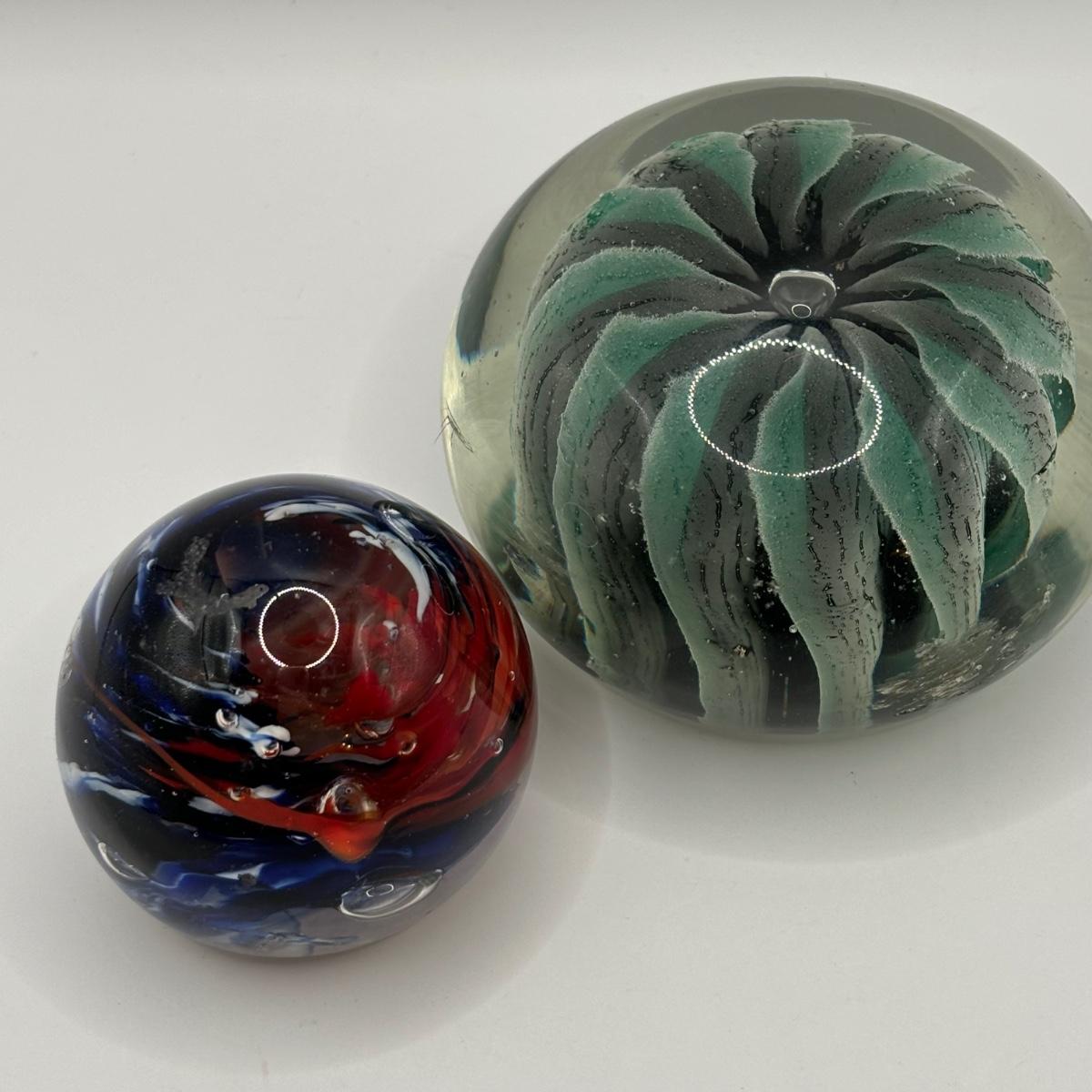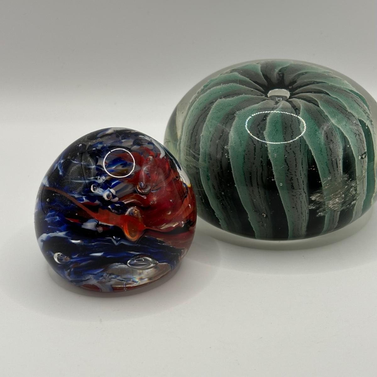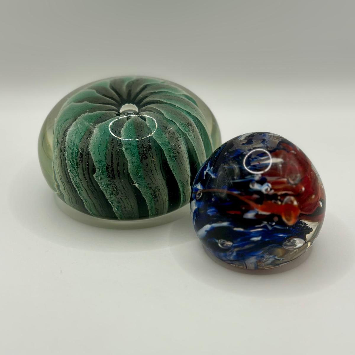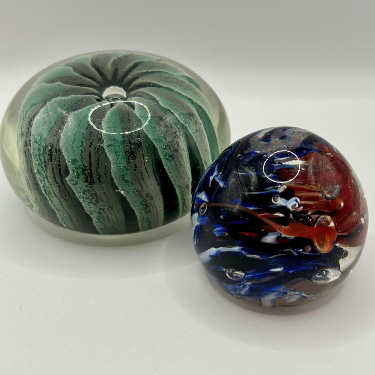LOT 59: Shades of Green Paper Weight & Shade of Red & Blue Paper Weight
