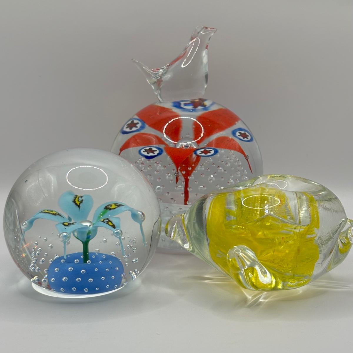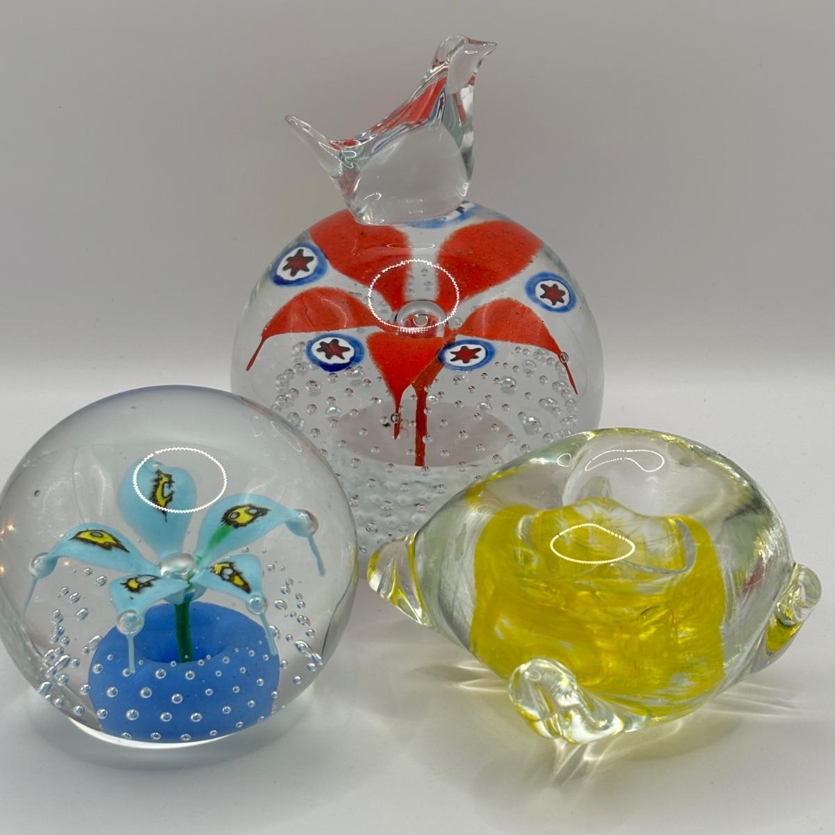 LOT 64: Collection of 3 Paperweights w/Hallmarks: Tricia, BPS-WW, WV