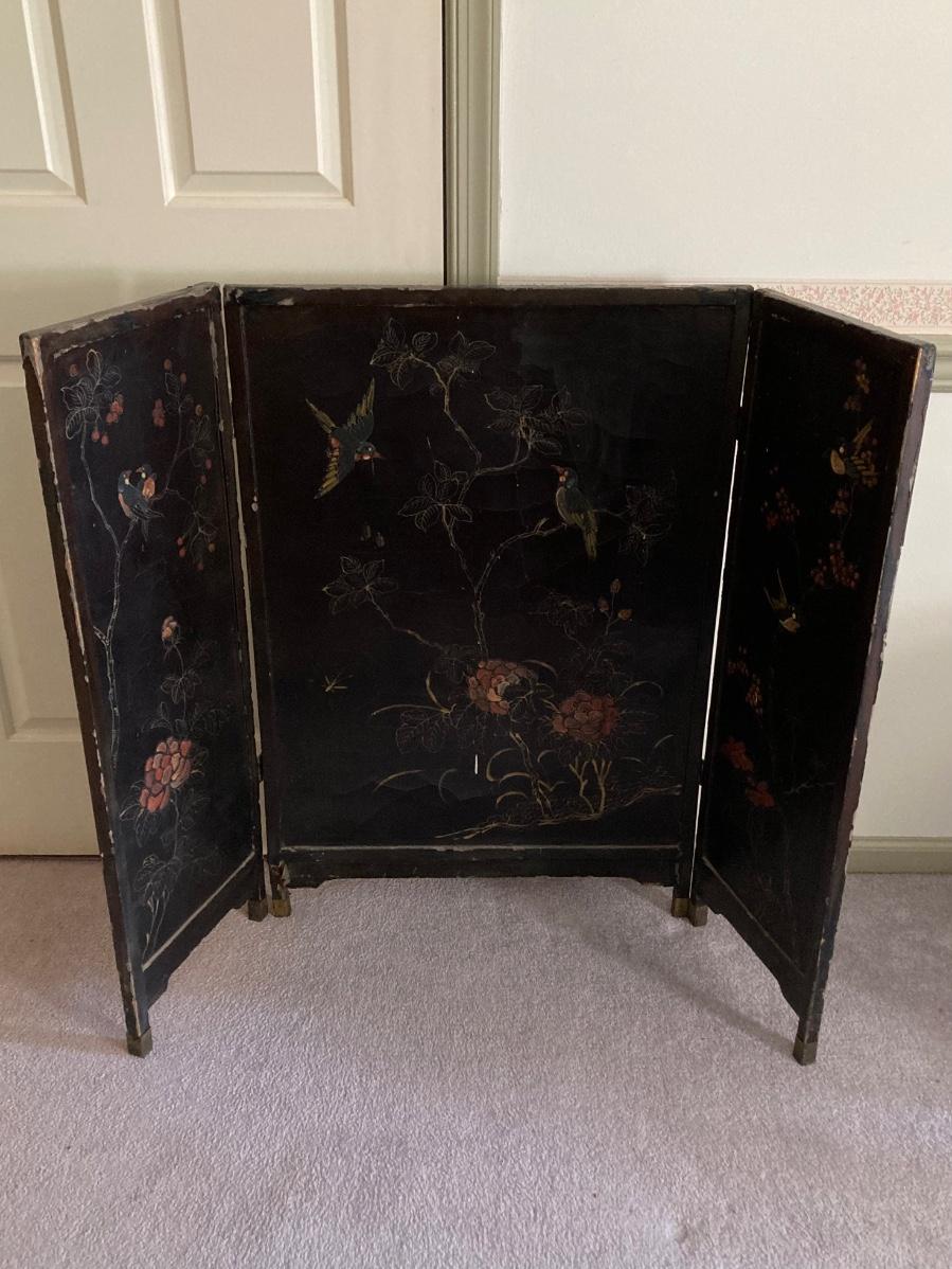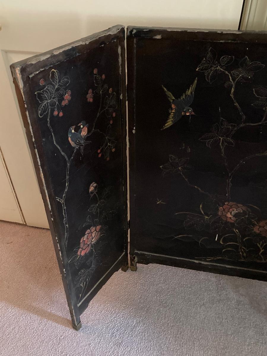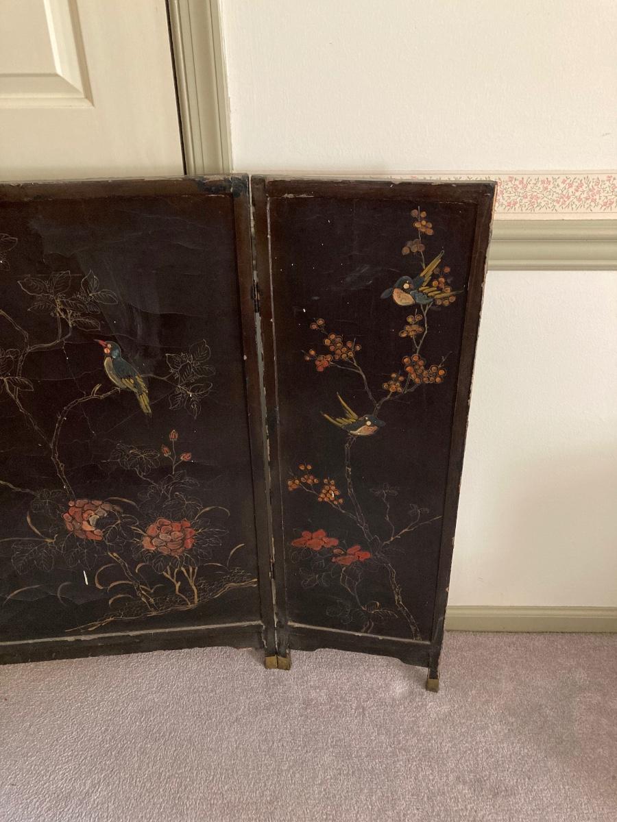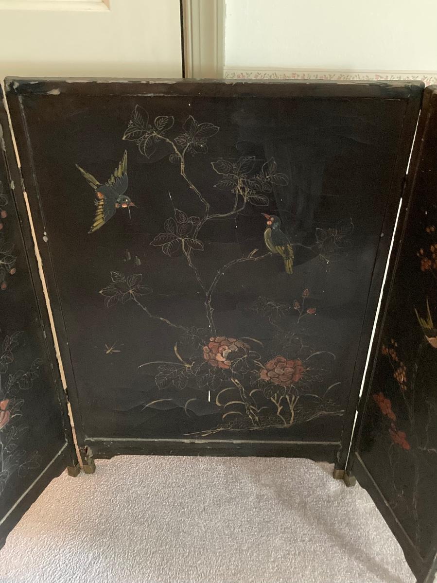 LOT 92: Vintage / Antique Three Panel Hand Painted Double Sided Asian Screen