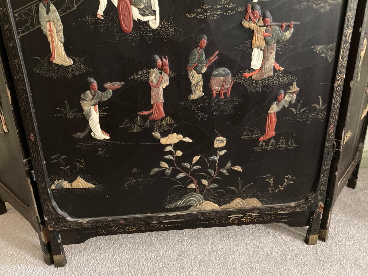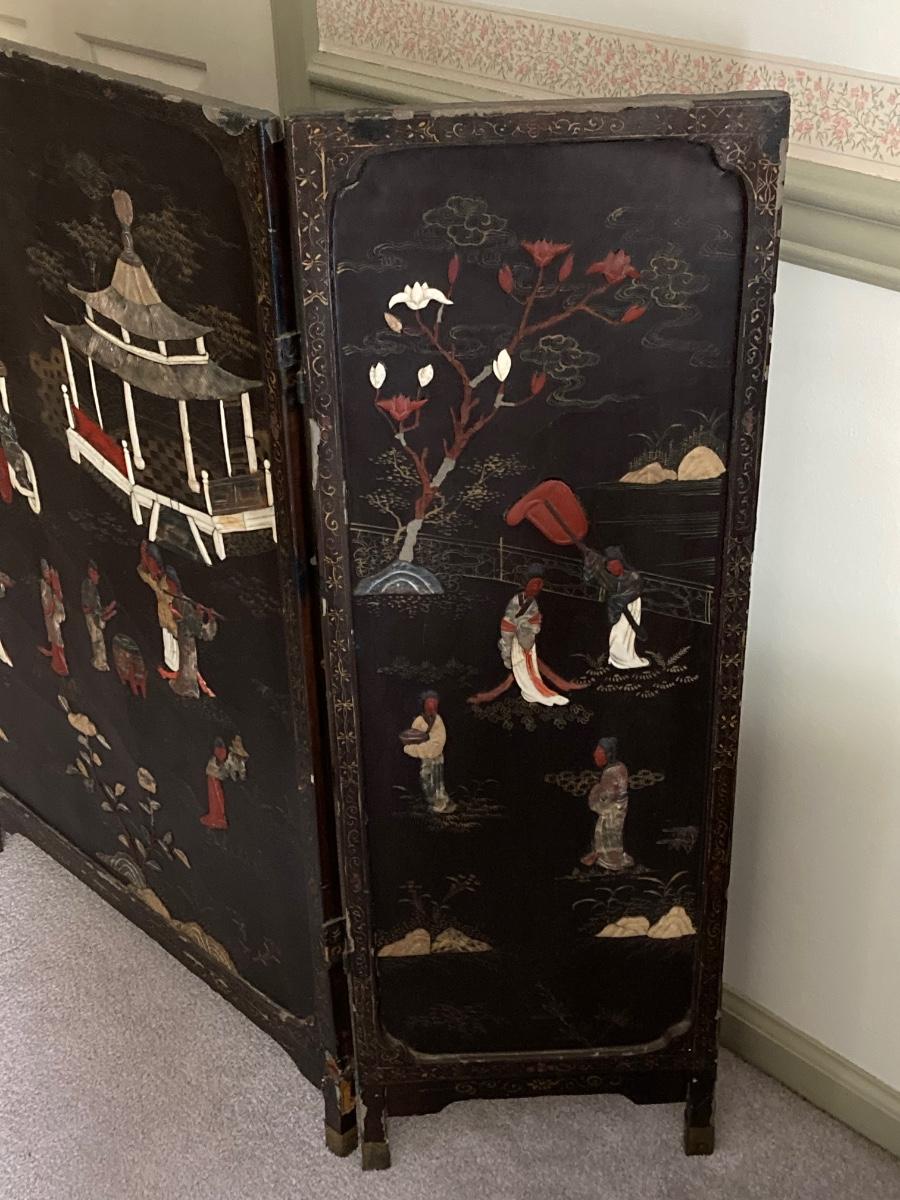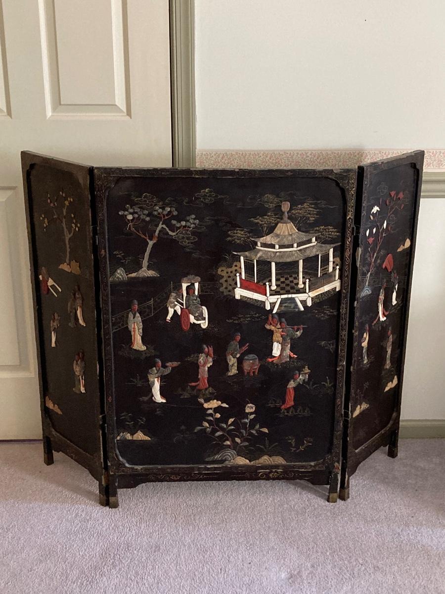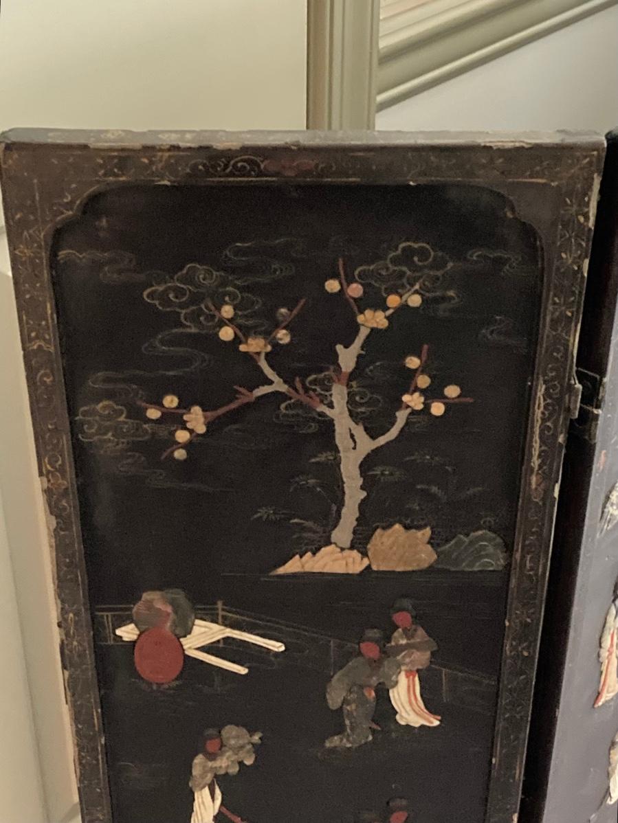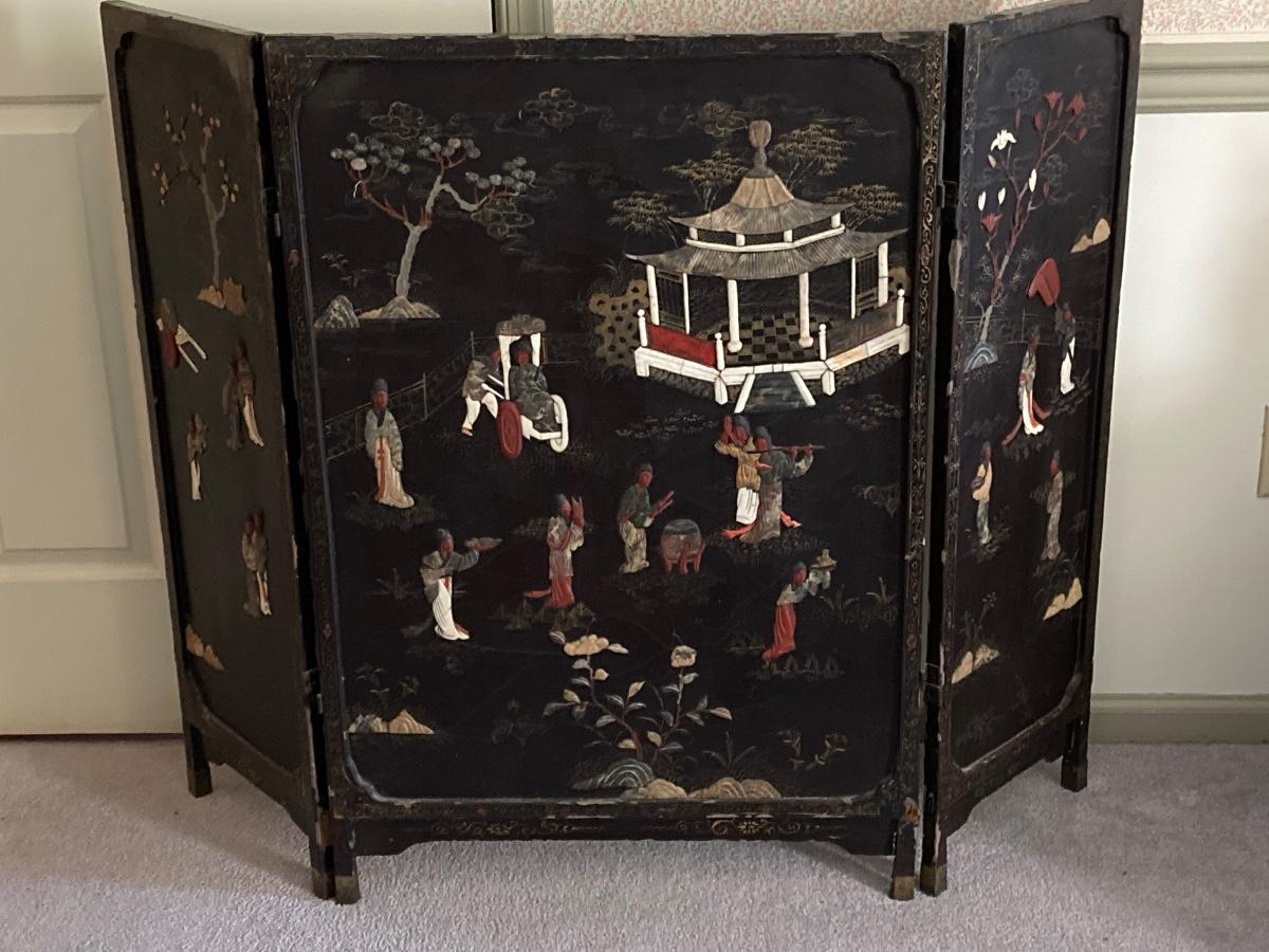 LOT 92: Vintage / Antique Three Panel Hand Painted Double Sided Asian Screen