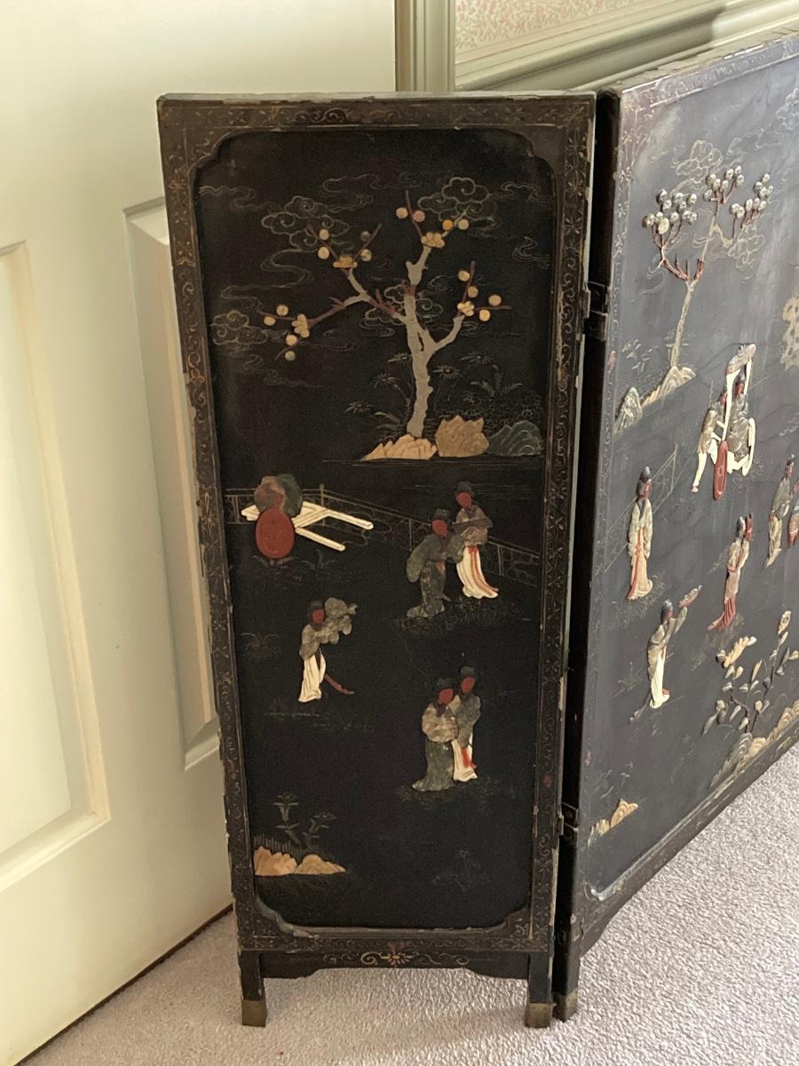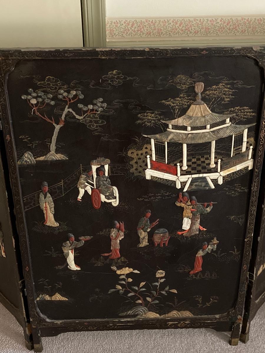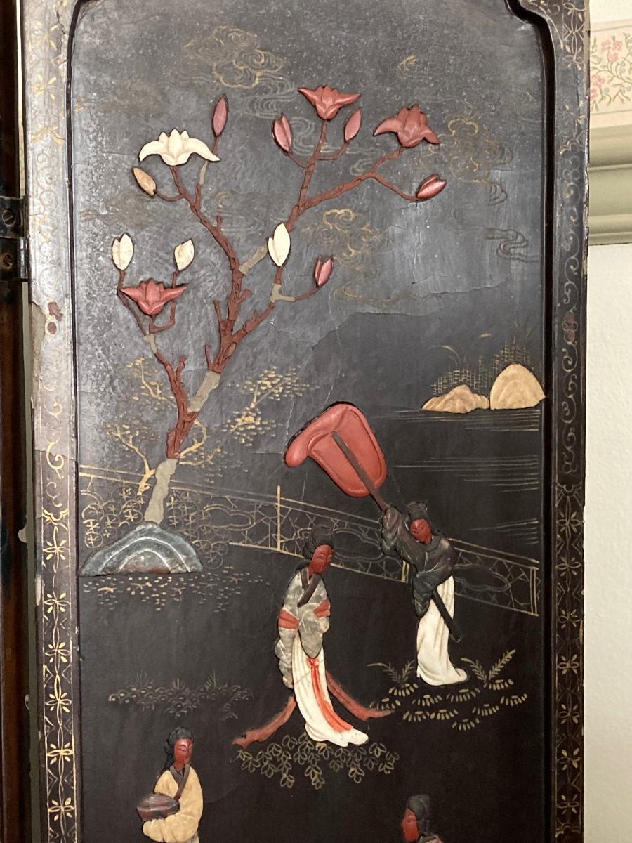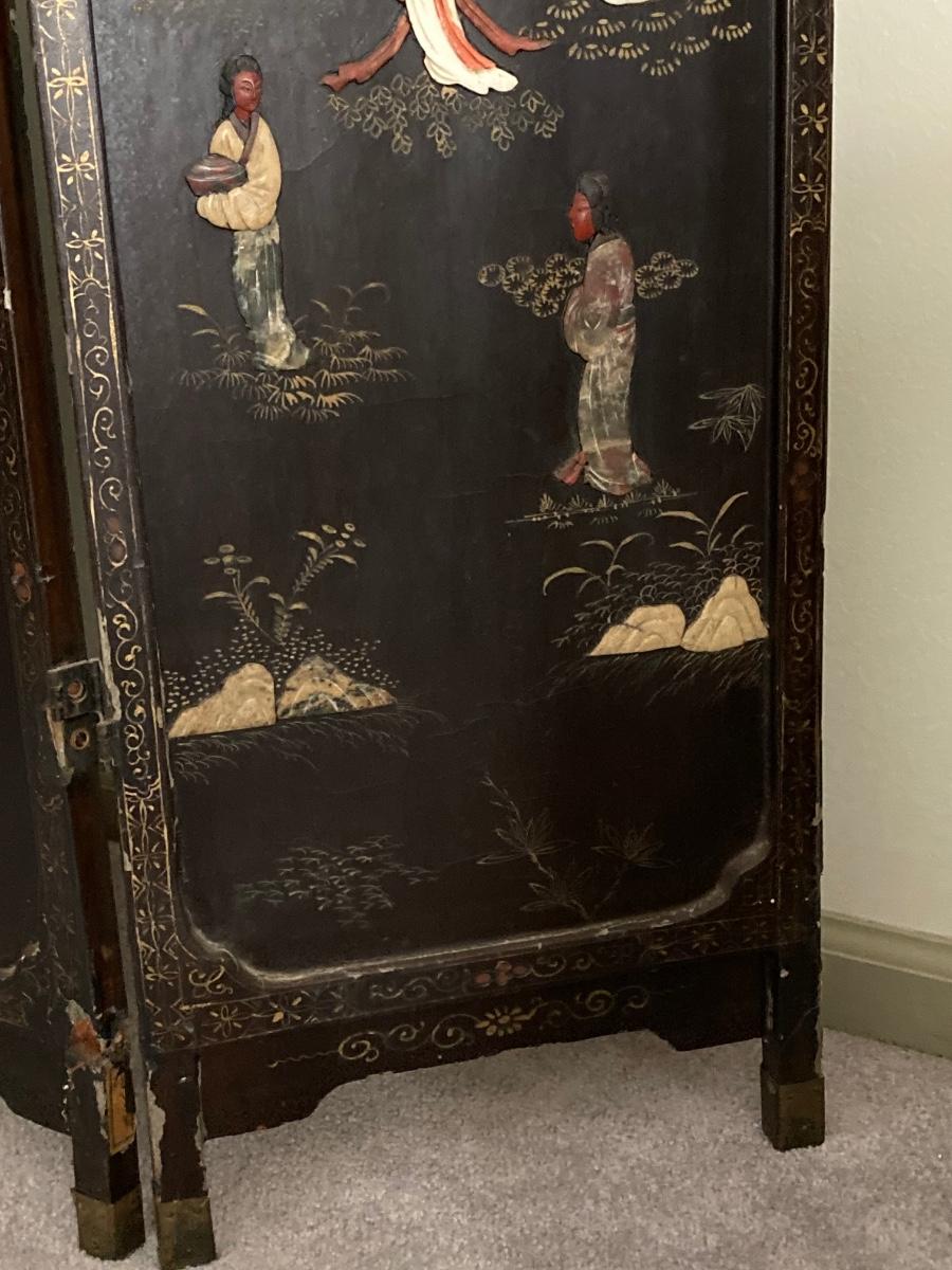 LOT 92: Vintage / Antique Three Panel Hand Painted Double Sided Asian Screen