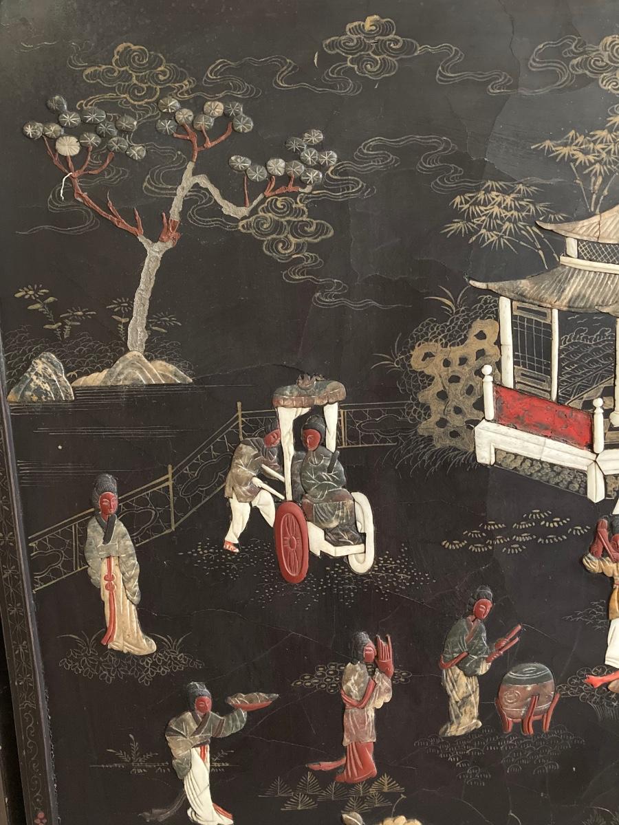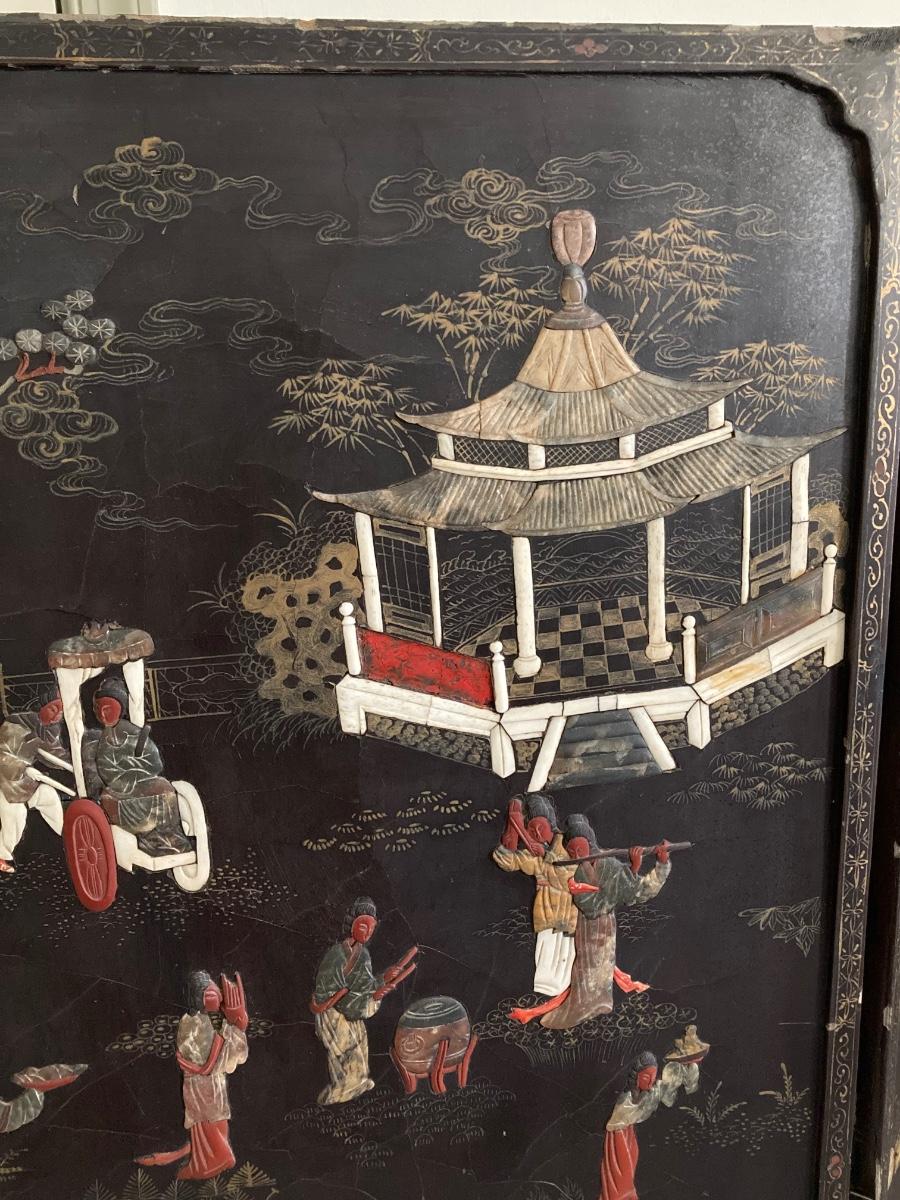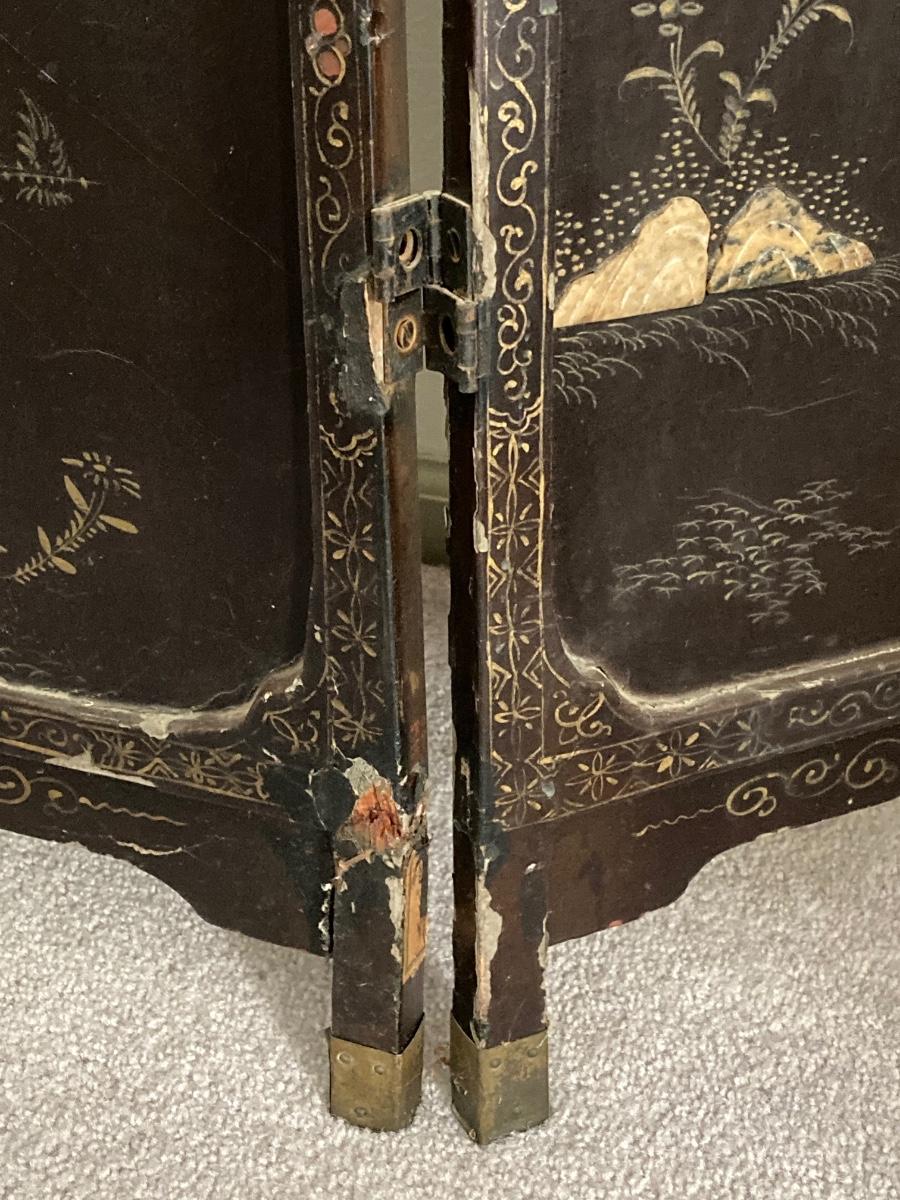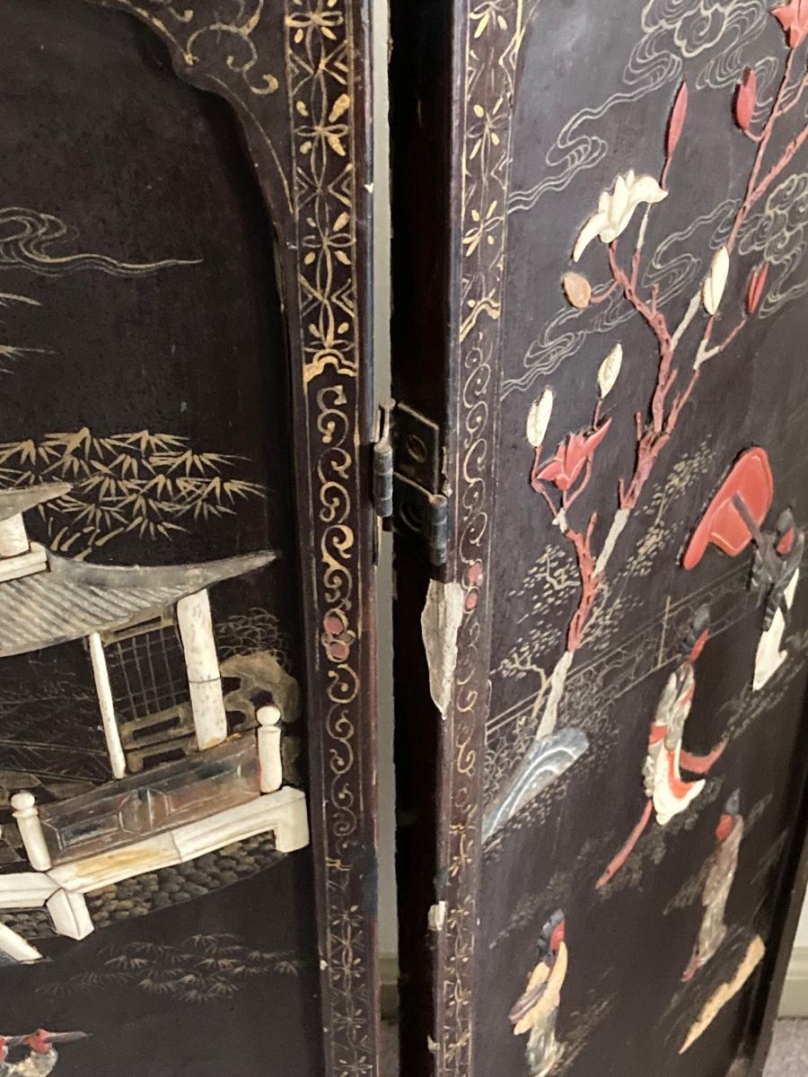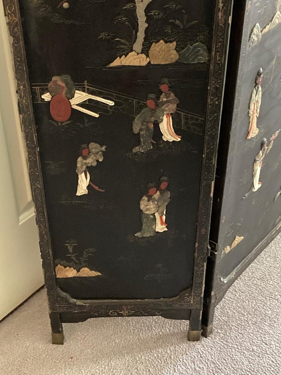 LOT 92: Vintage / Antique Three Panel Hand Painted Double Sided Asian Screen