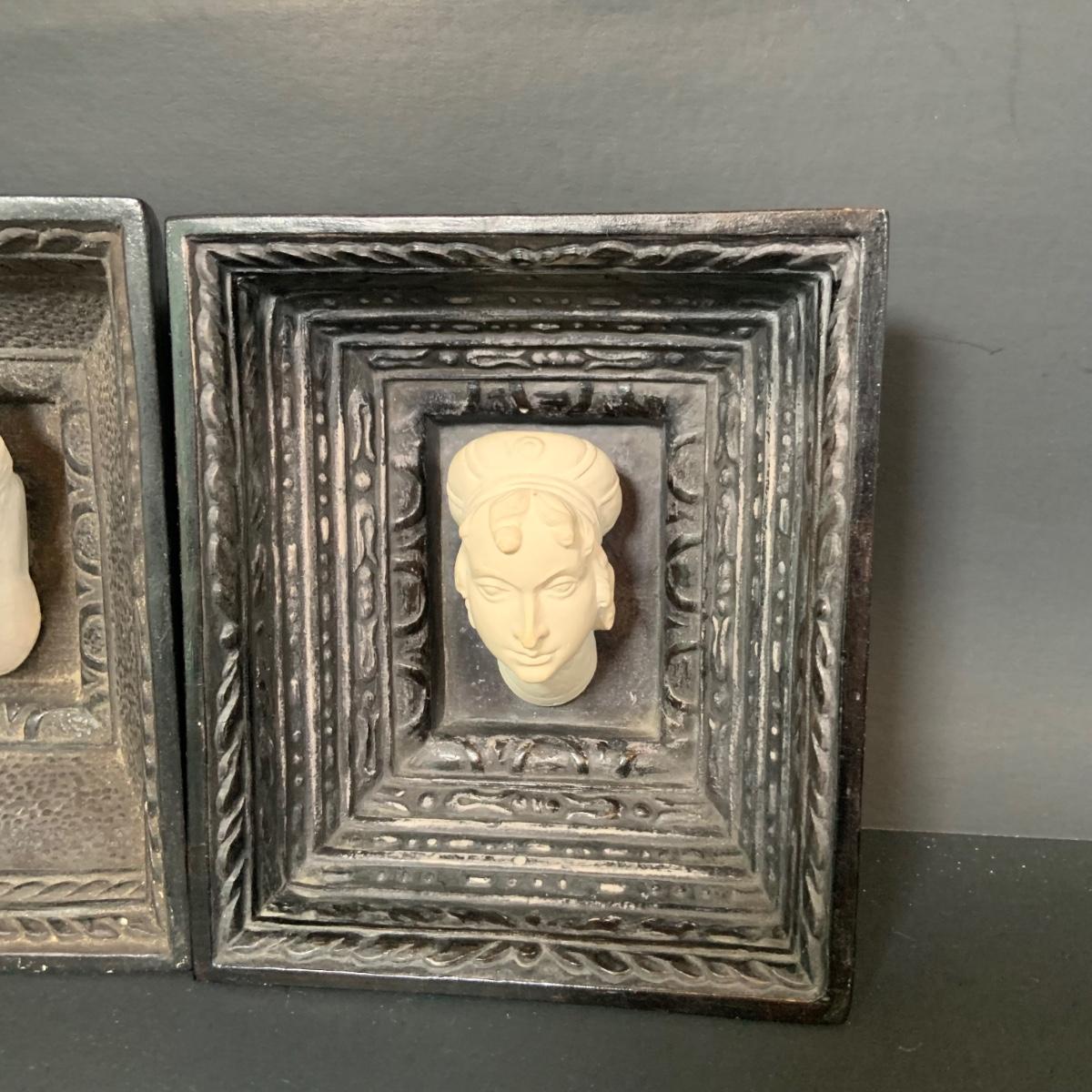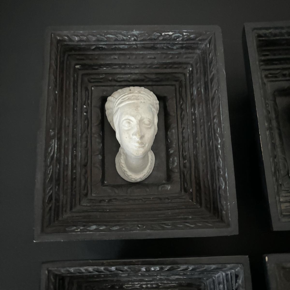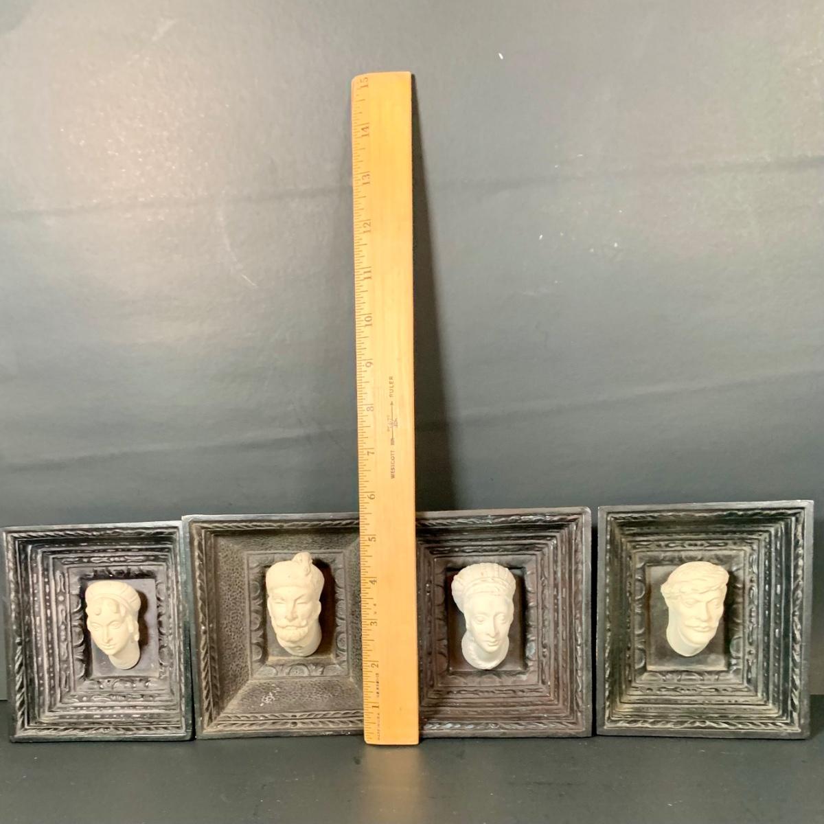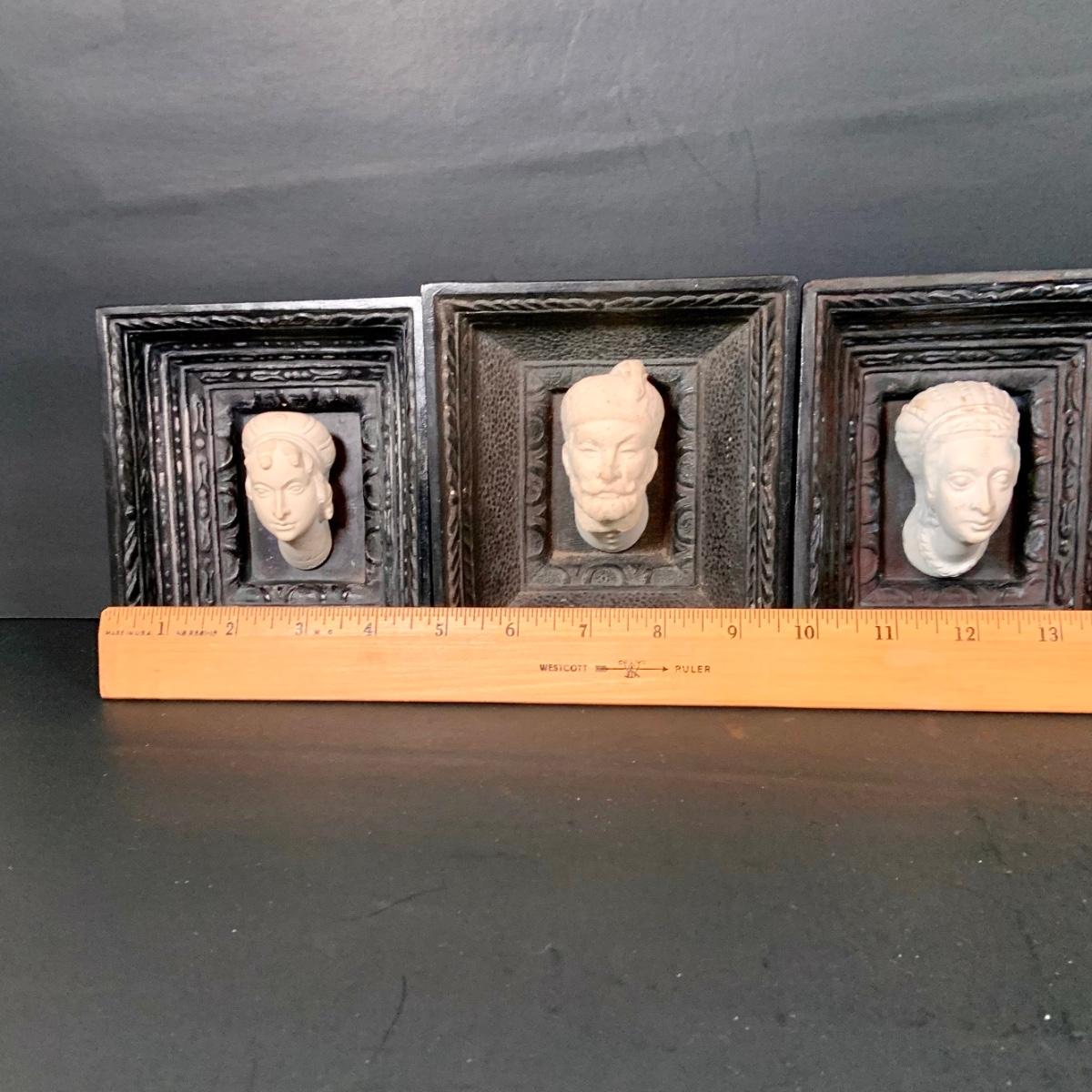 LOT:112: Collection of 4 Vintage Polish Framed Ceramic Busts - Some with Tags