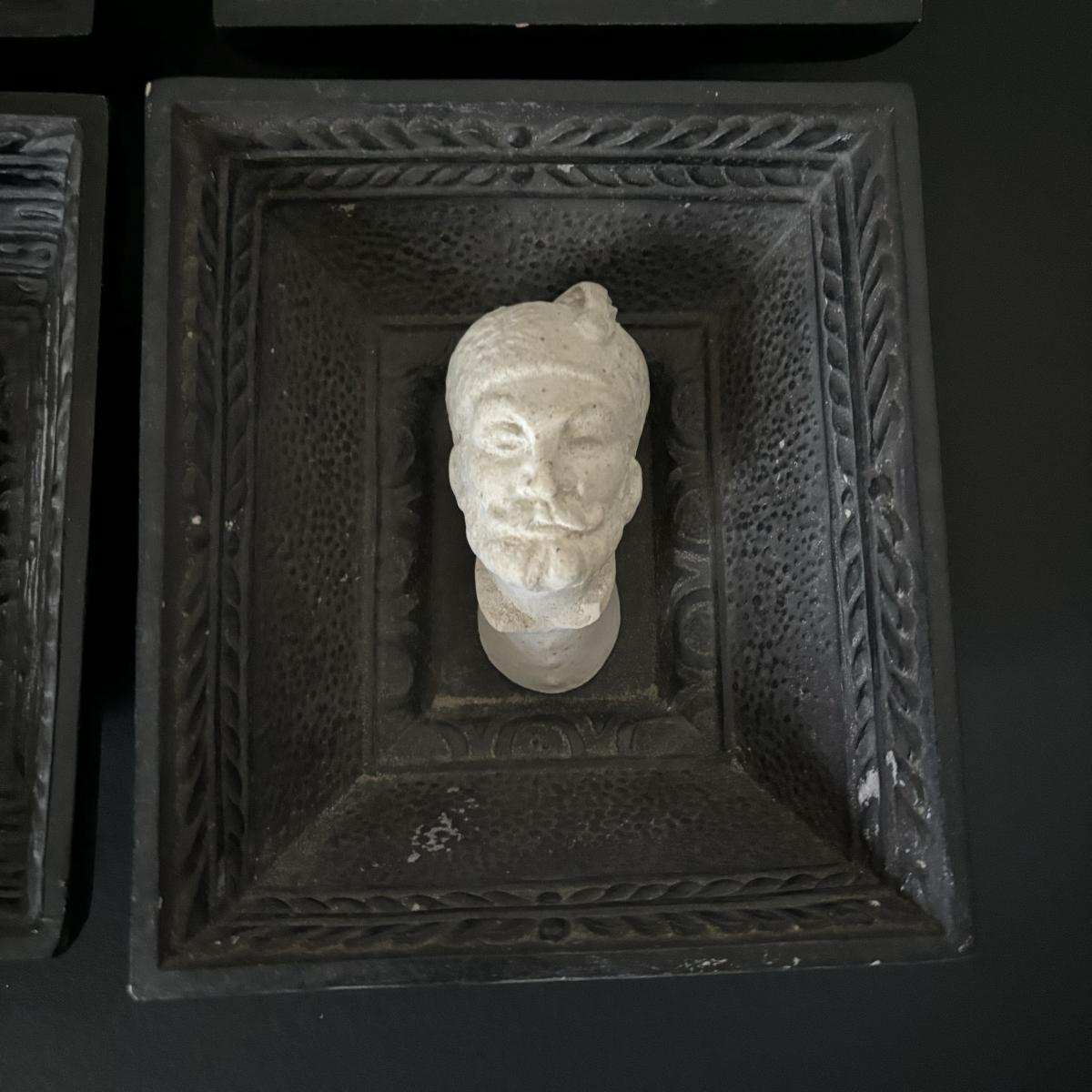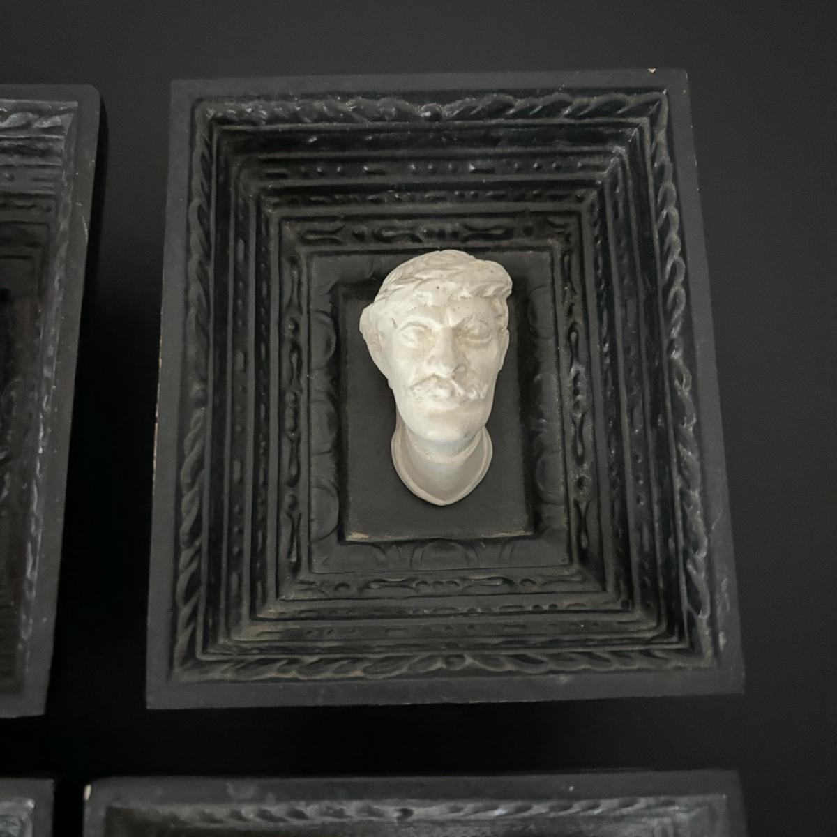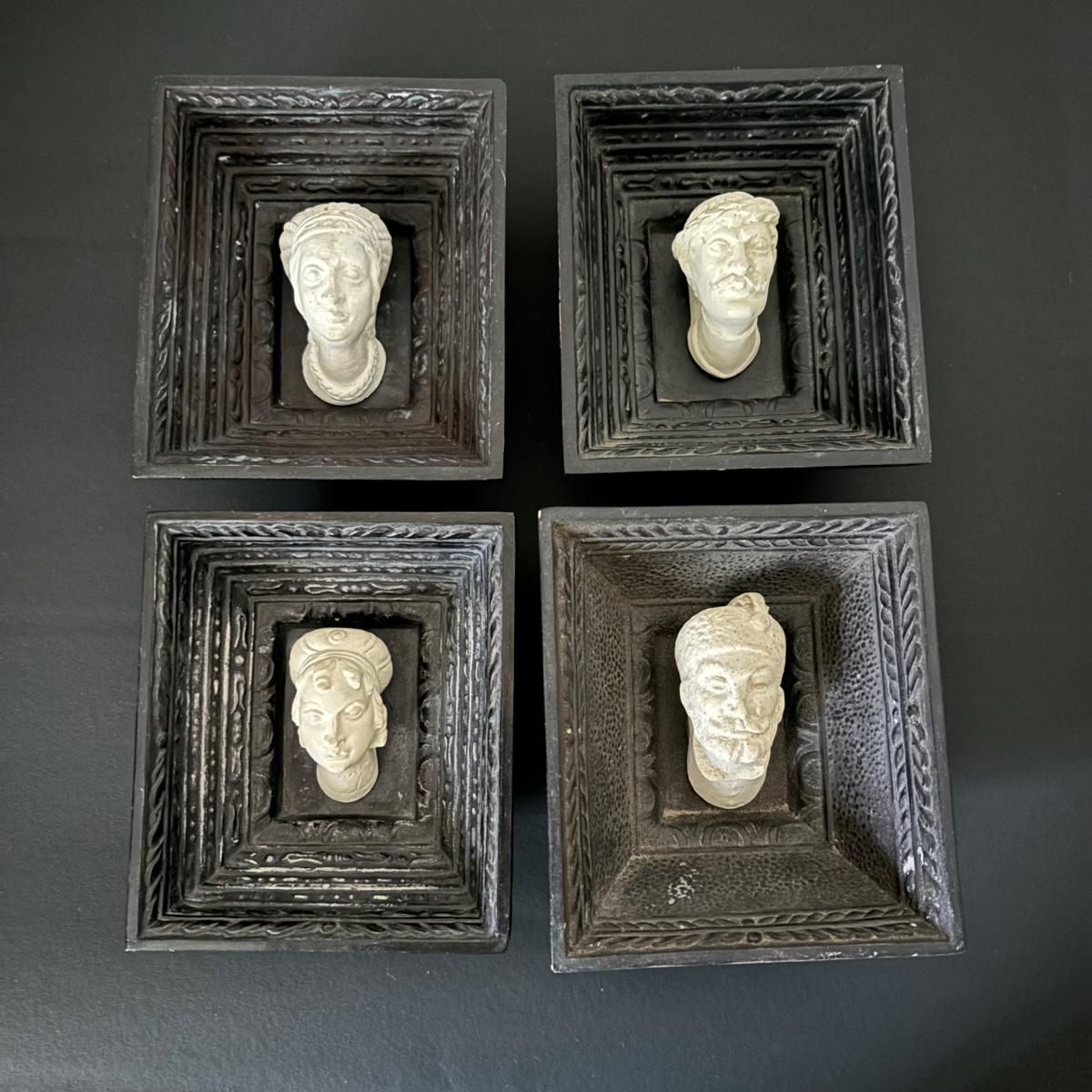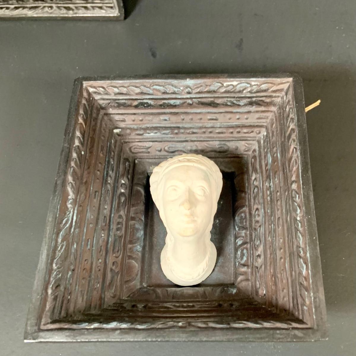 LOT:112: Collection of 4 Vintage Polish Framed Ceramic Busts - Some with Tags