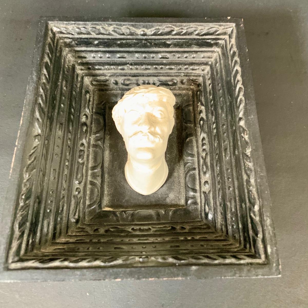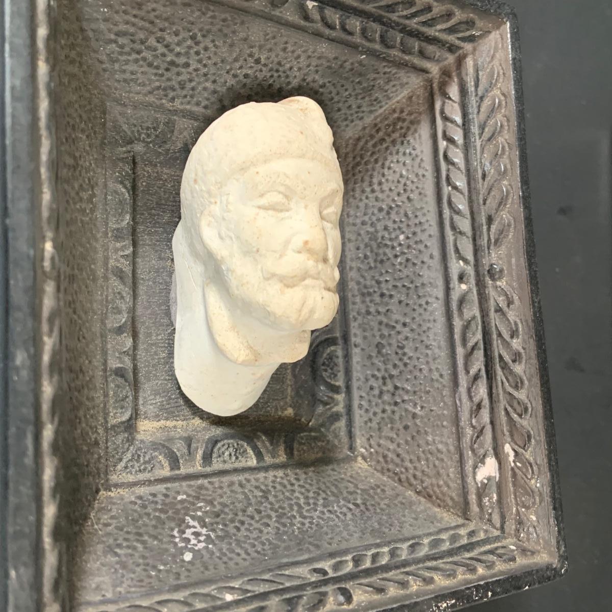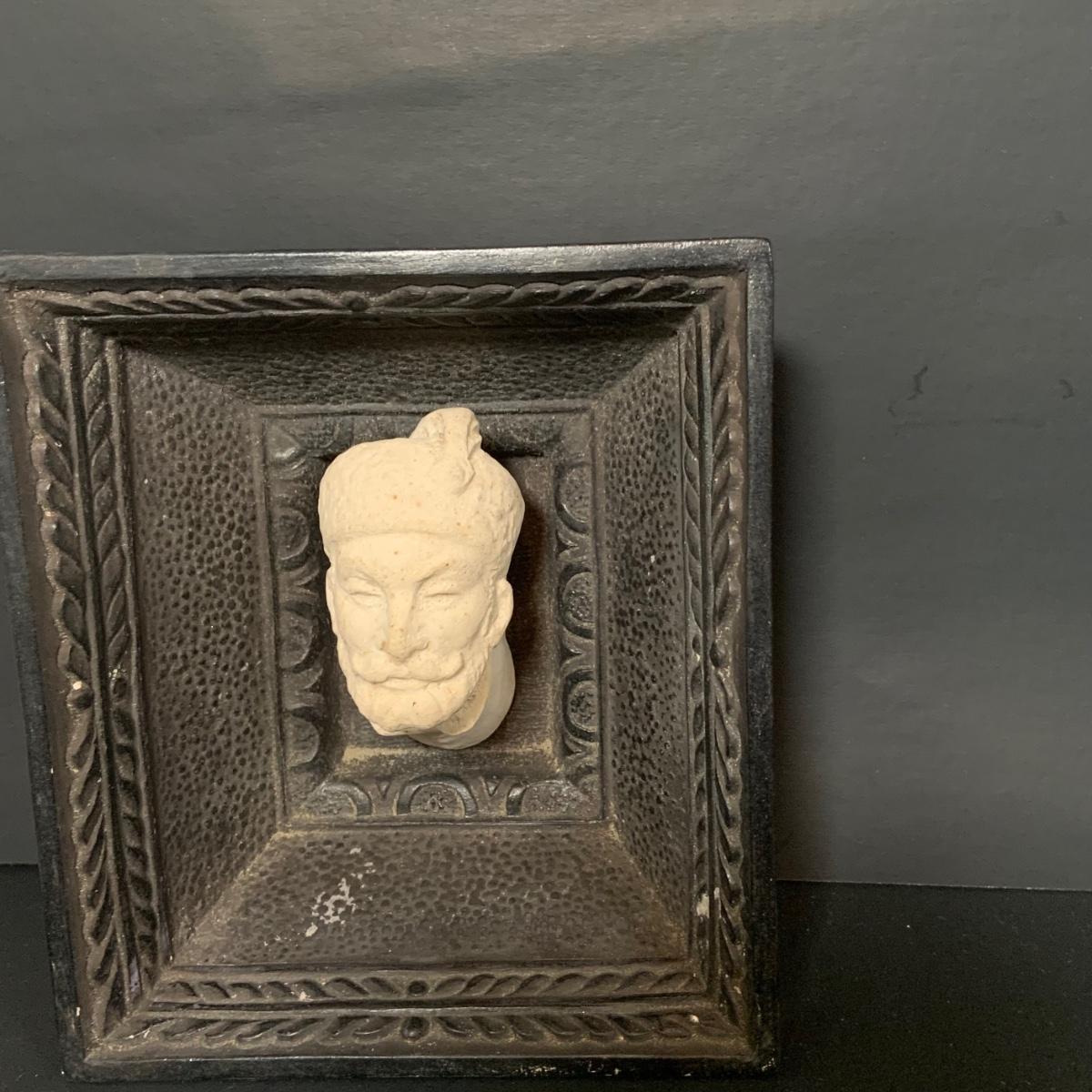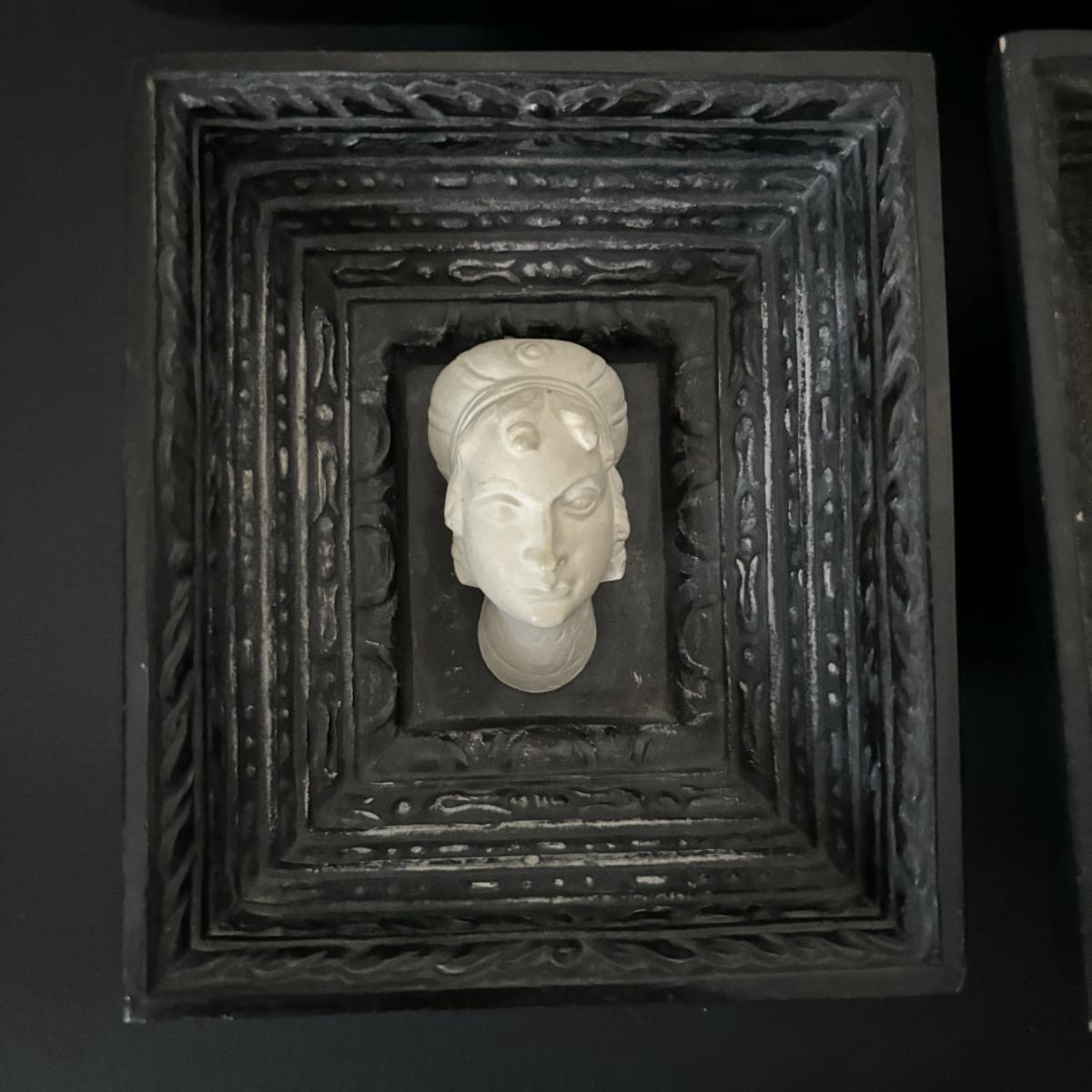 LOT:112: Collection of 4 Vintage Polish Framed Ceramic Busts - Some with Tags