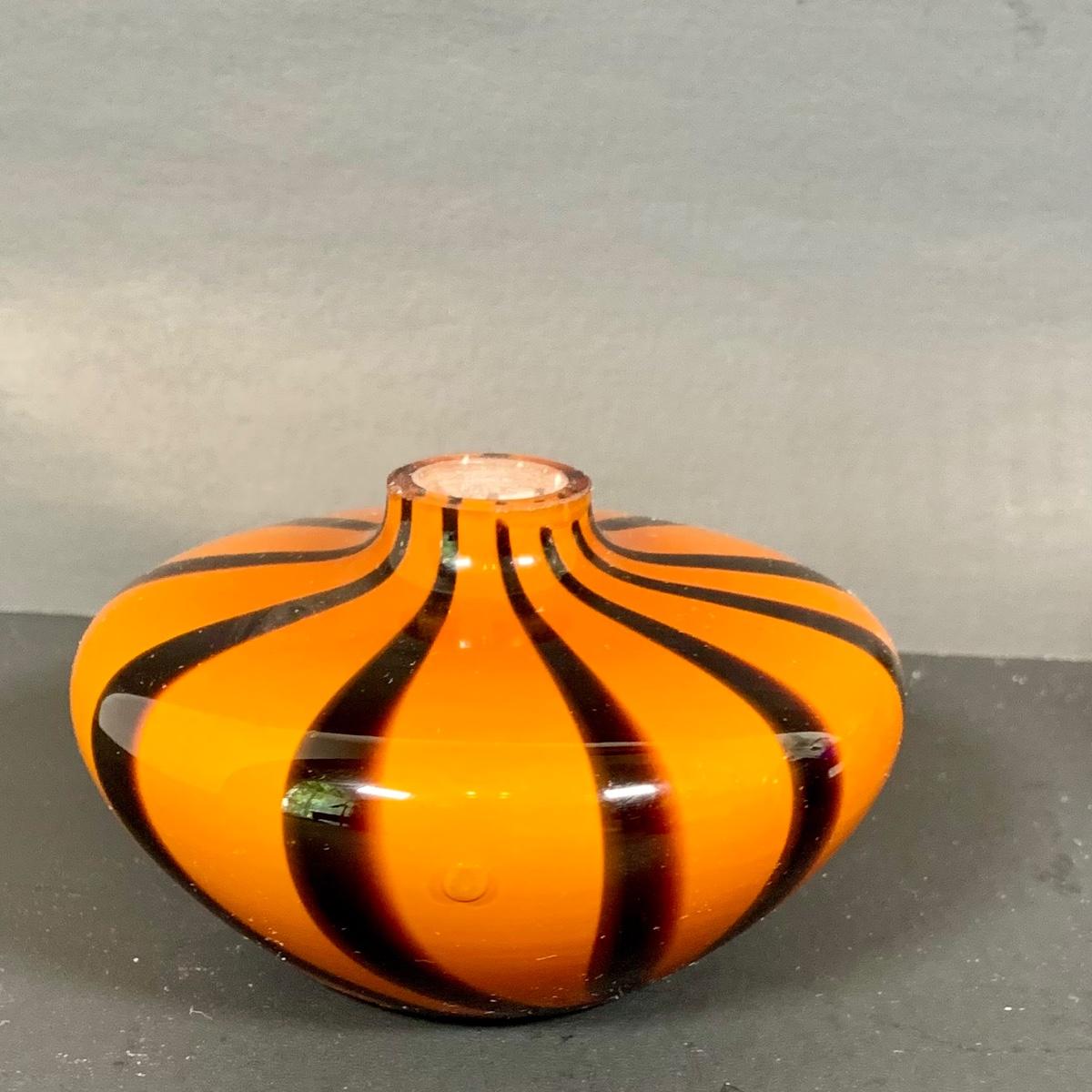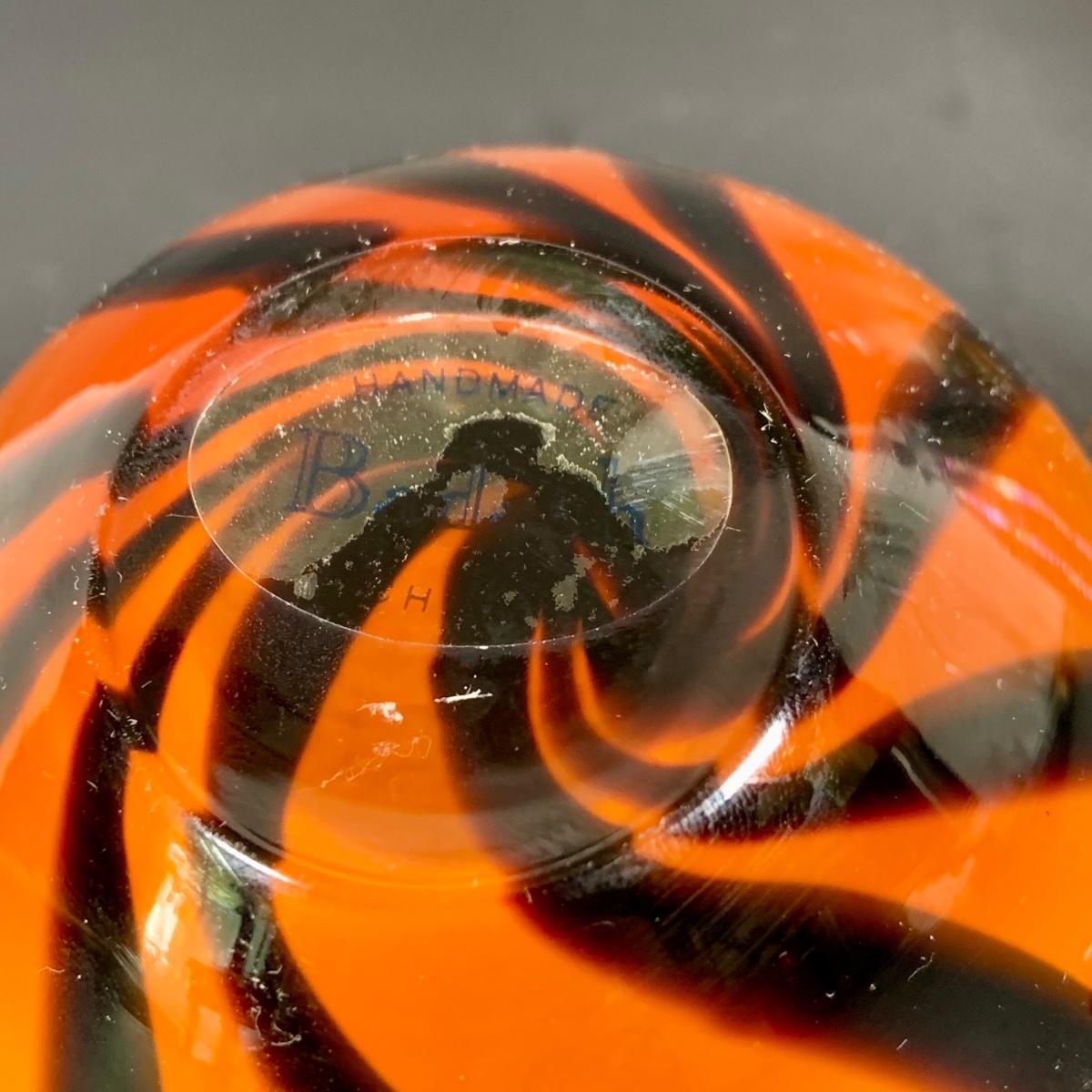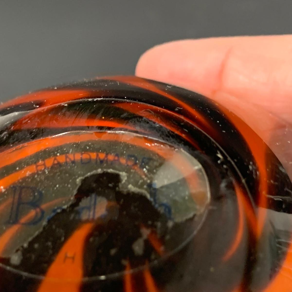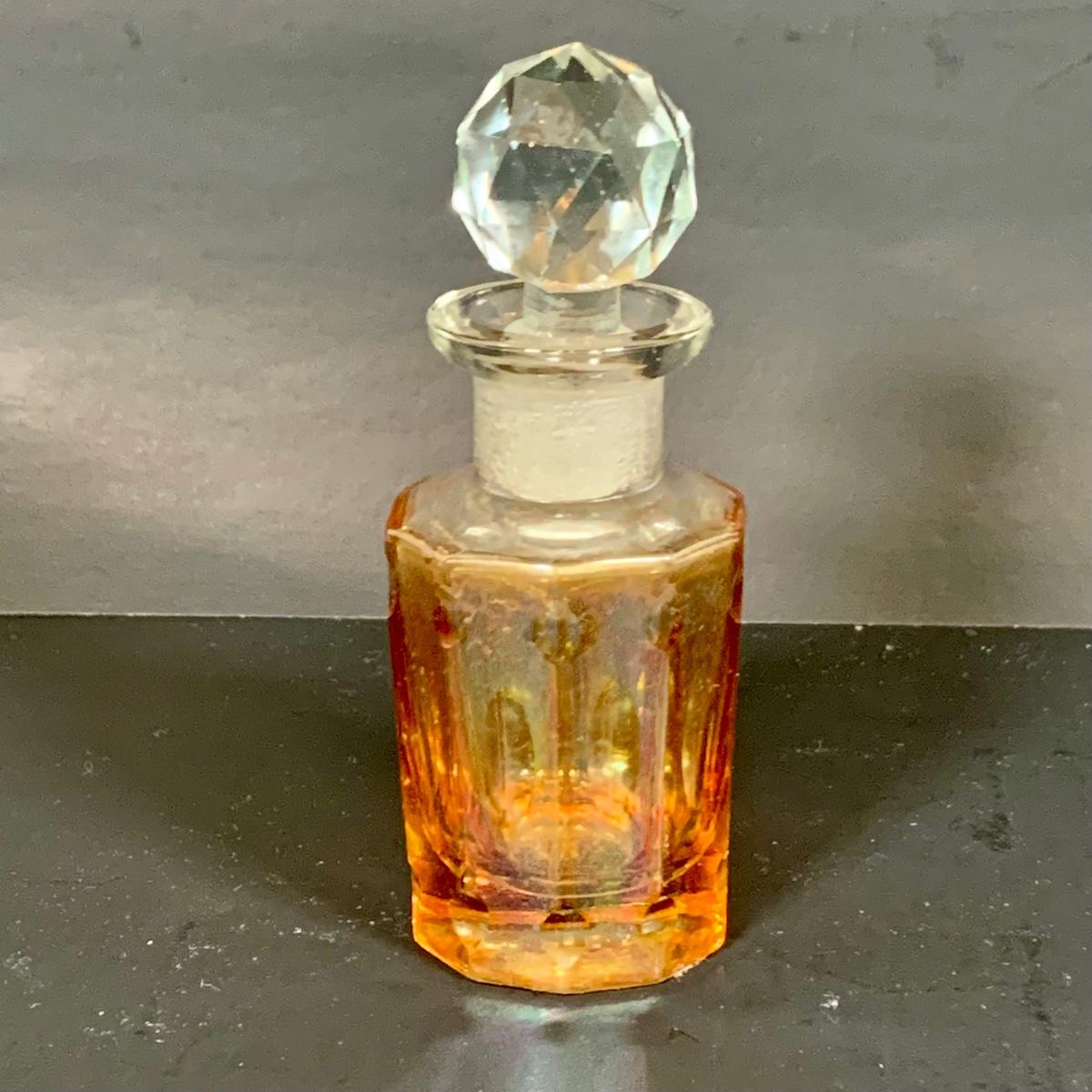 LOT:113: Beautiful Collection of Blown Glass Perfume Bottles- Two Handmade Badash Perfume Bottles, Iridesent Art Glass Bottle and Amber Czech Glass Bottle