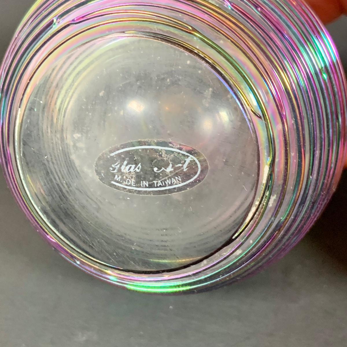 Iridescent Purple Pulled Feather Design Art Glass Perfume Bottle with Clear Glass Stopper