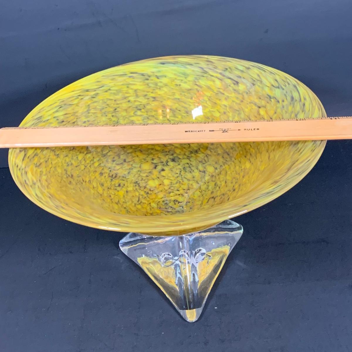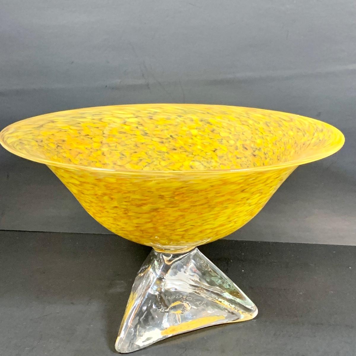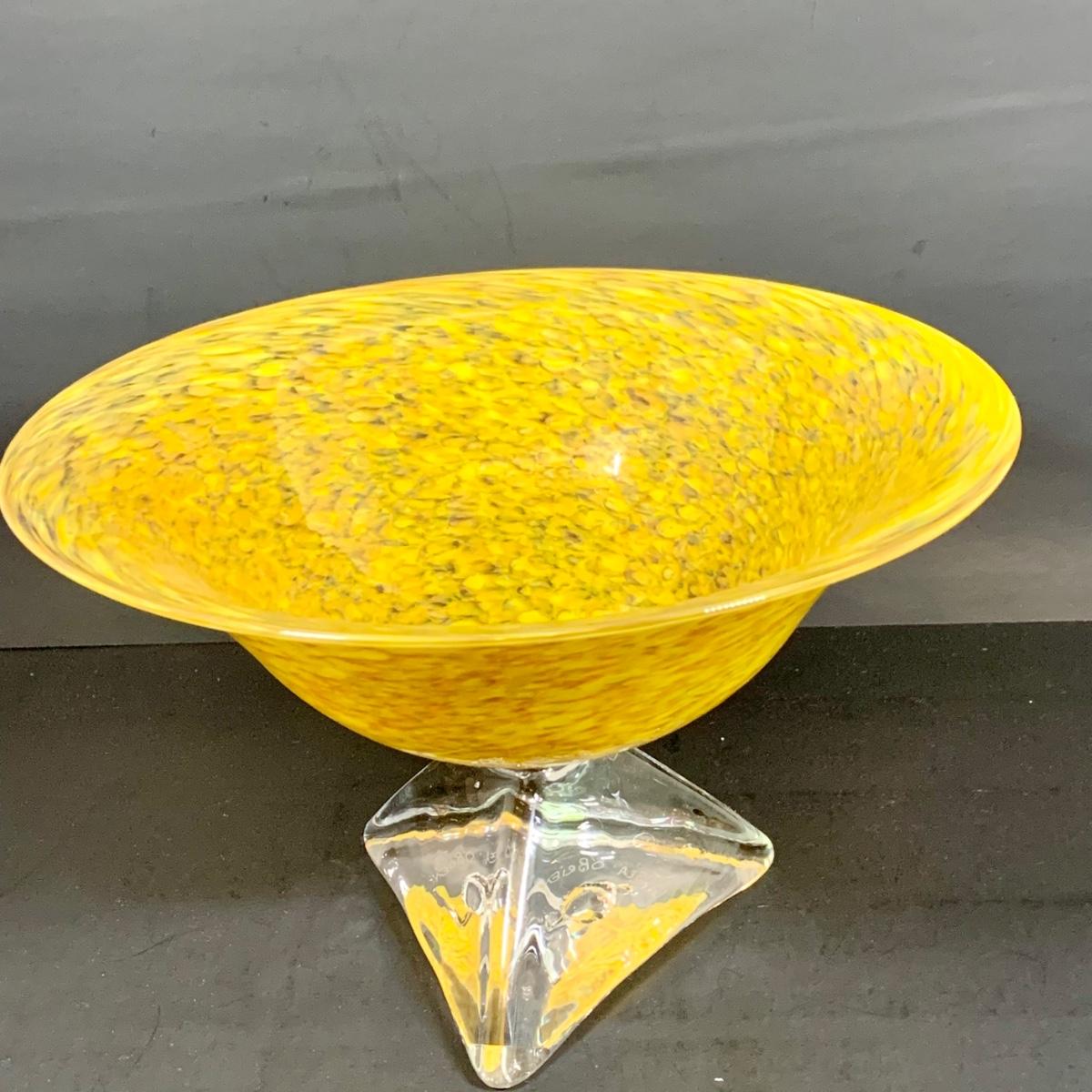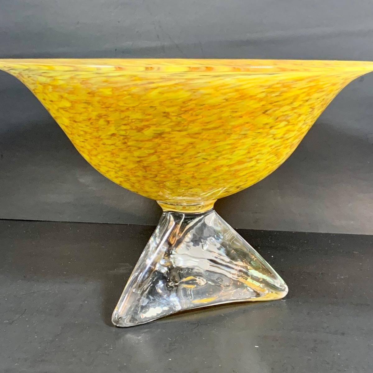 LOT:122 Signed Paul Willsea and Carol O'Brien Yellow Hand Blown Art Glass Bowl