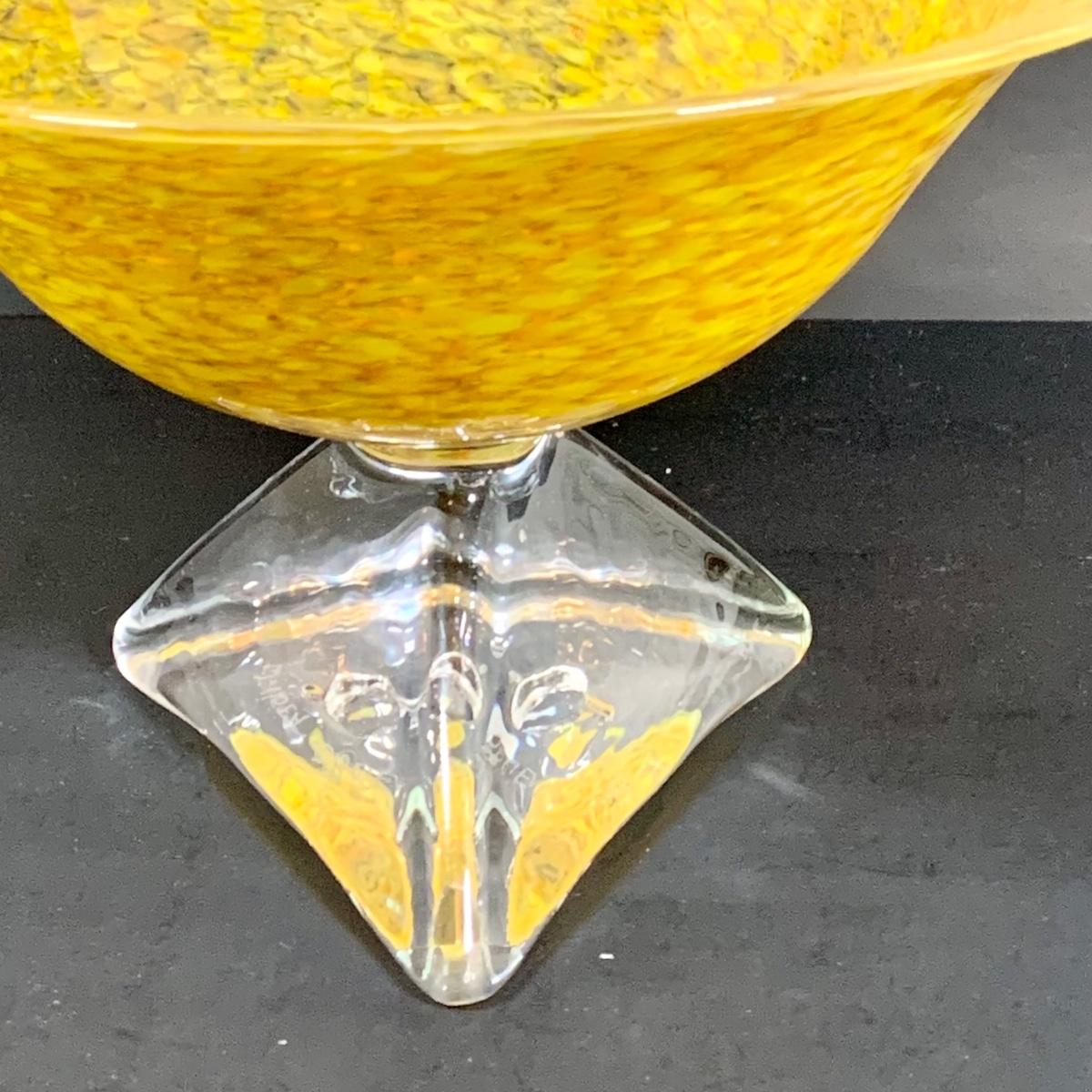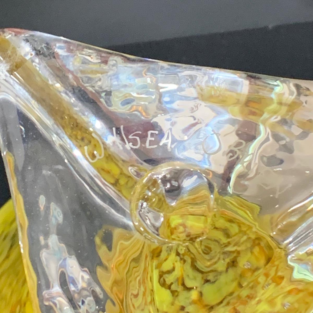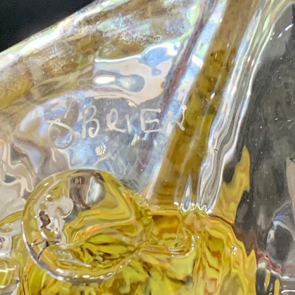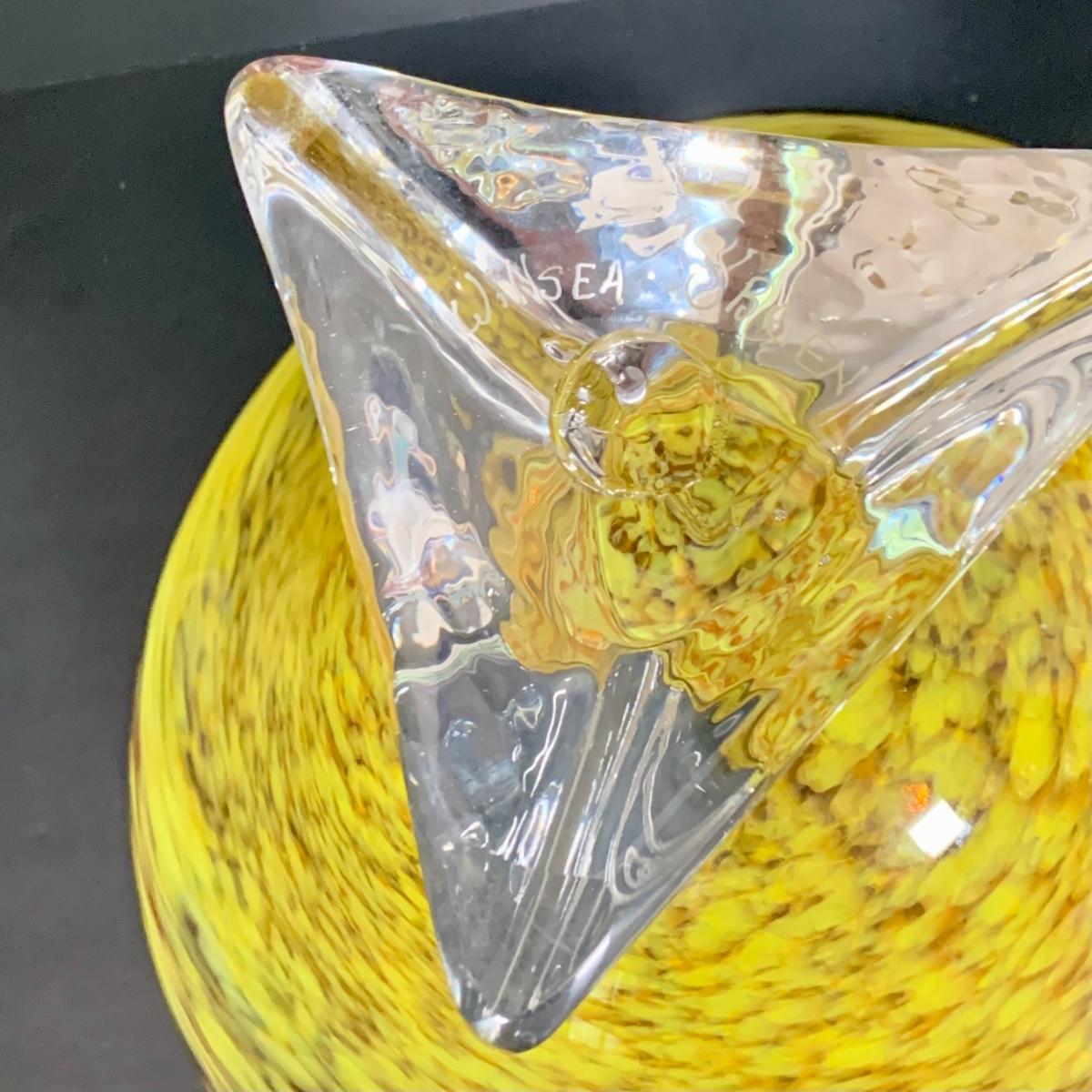 LOT:122 Signed Paul Willsea and Carol O'Brien Yellow Hand Blown Art Glass Bowl