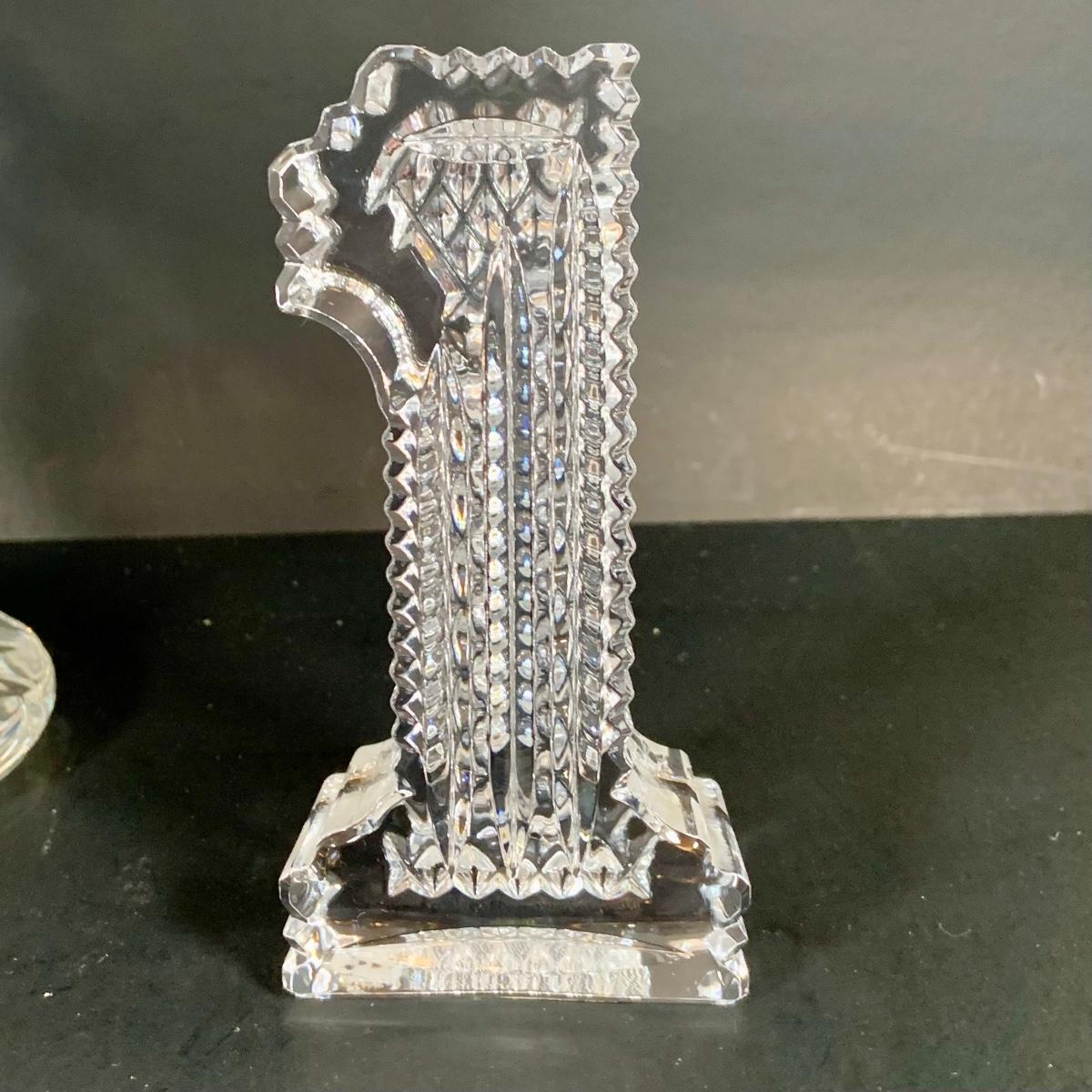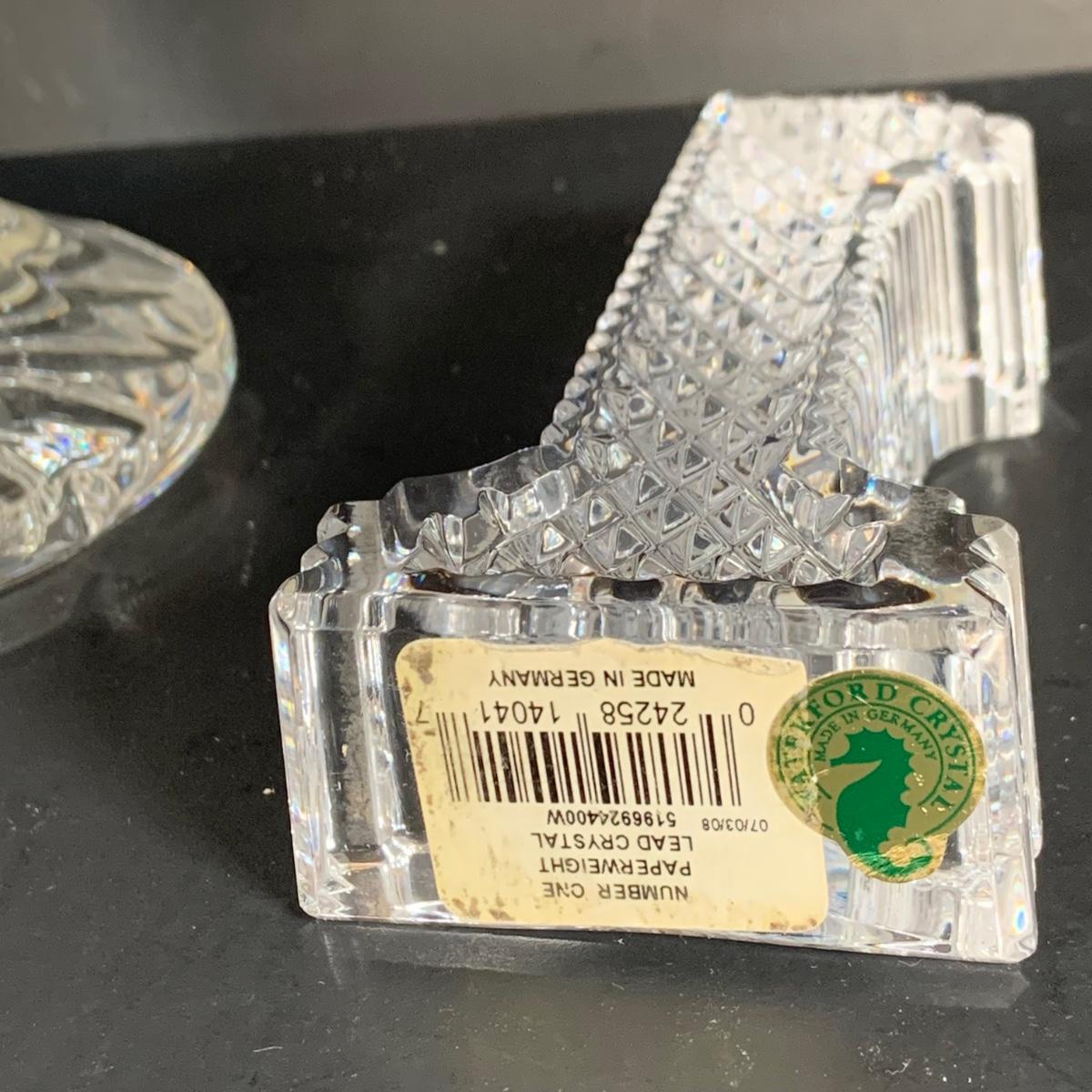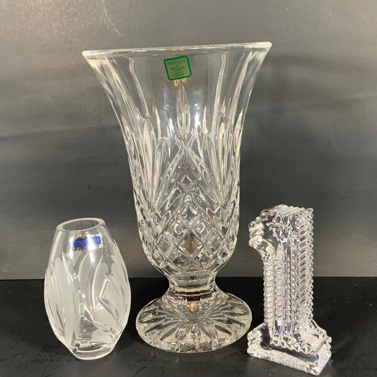 LOT:125: Waterford Crystal Collection - Large Vase, Bud Vase and '1' Paperweight.