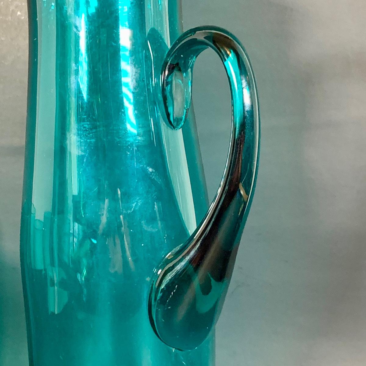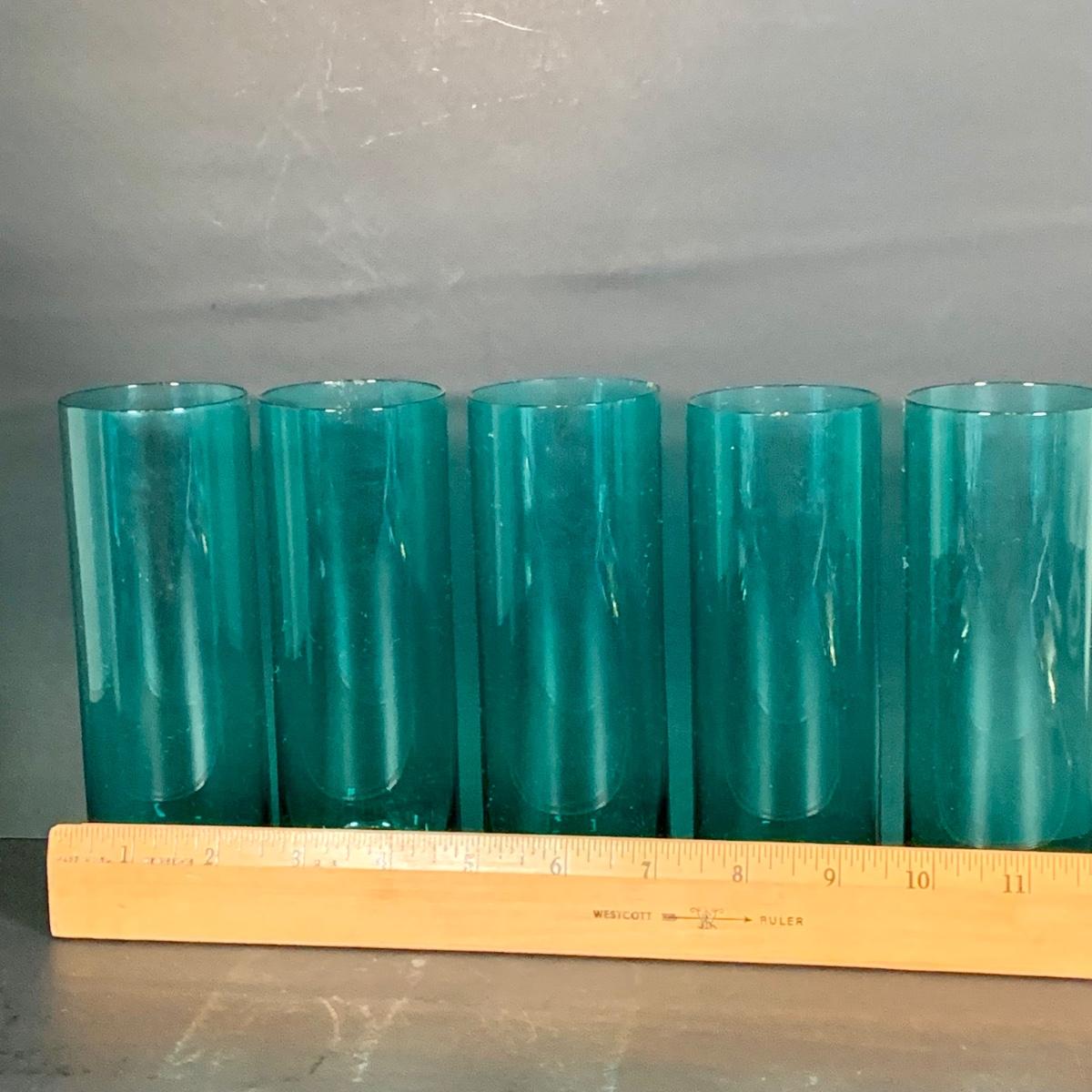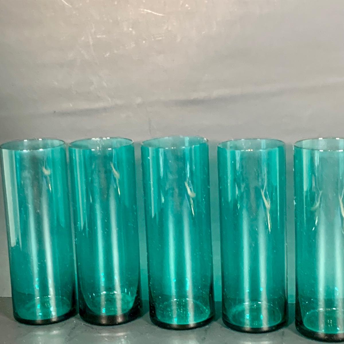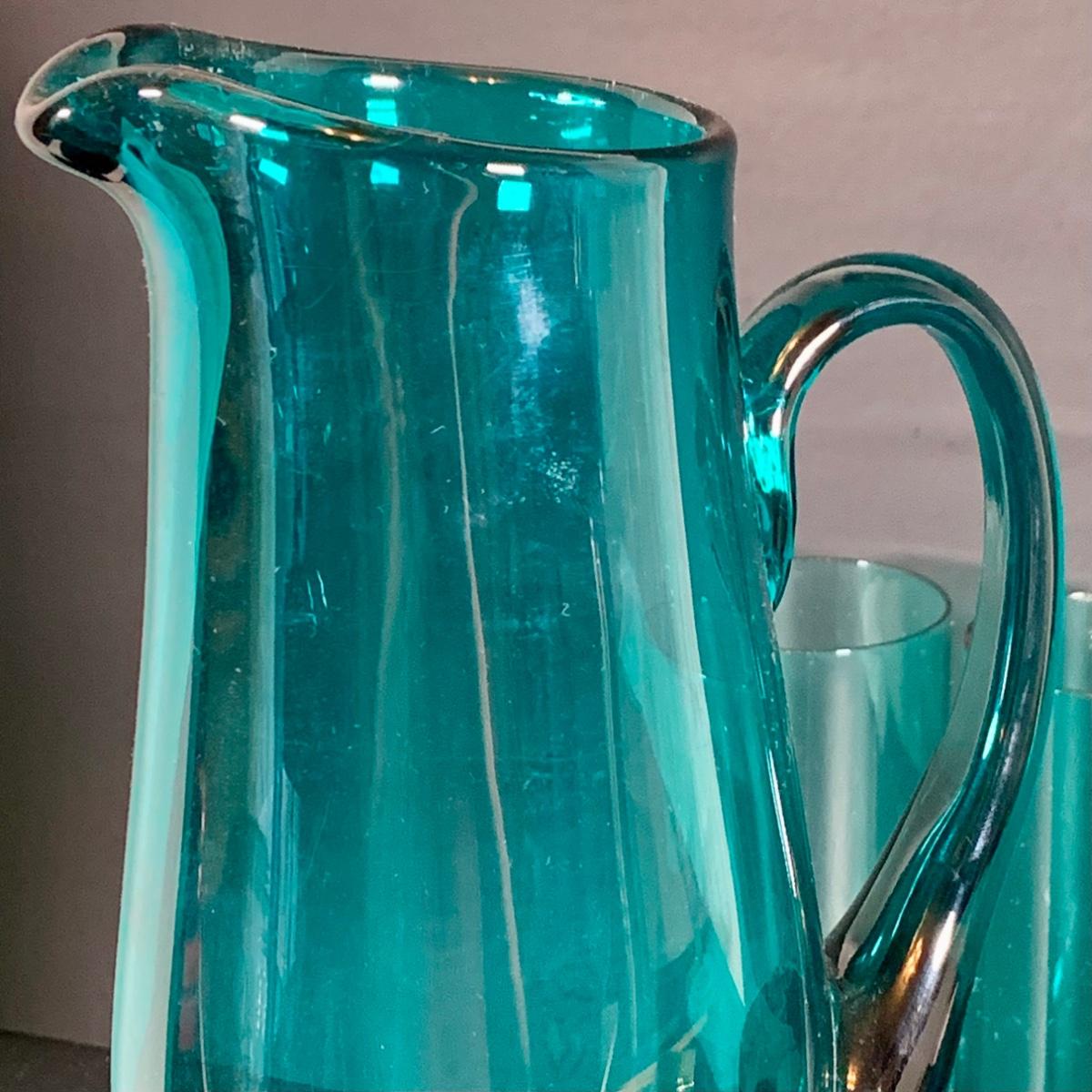 LOT:130: Tall Green Art Glass Pitcher and Glasses