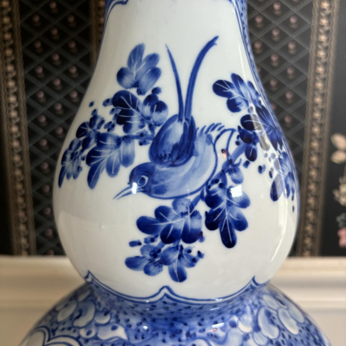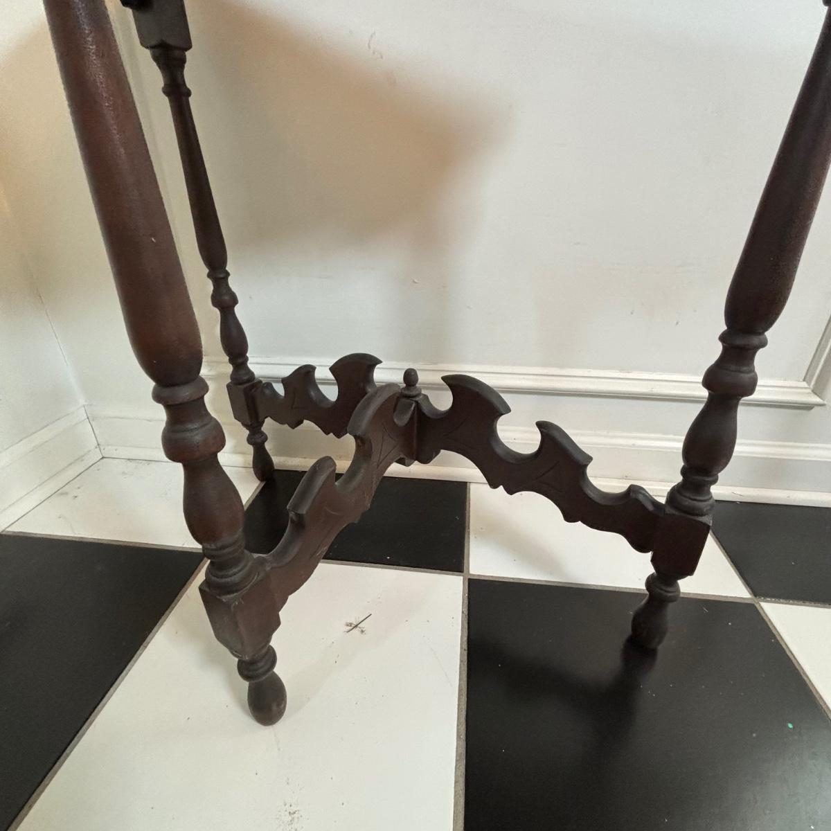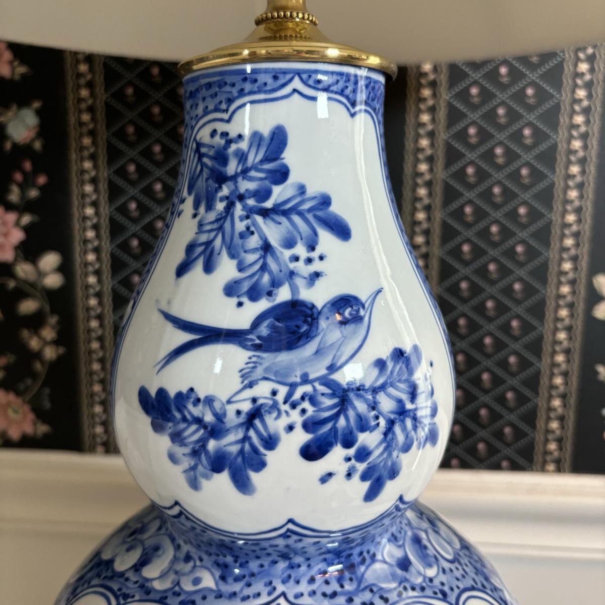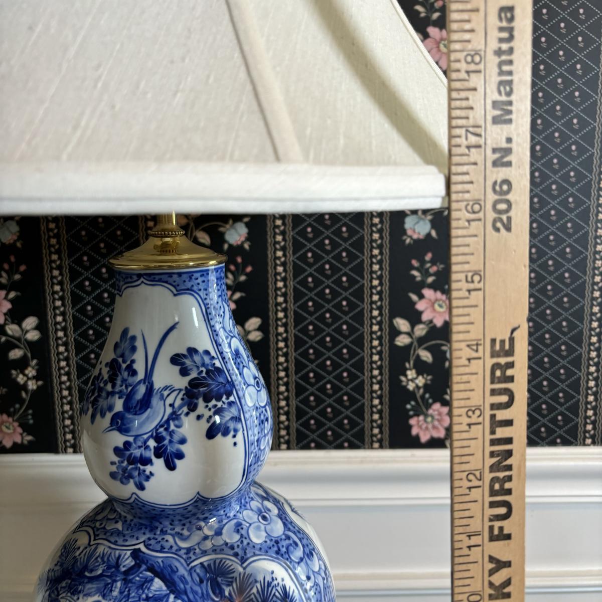 LOT 133: Wooden Side Table along with a Blue & White Floral/Bird Ceramic Lamp