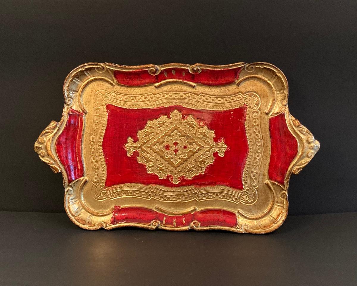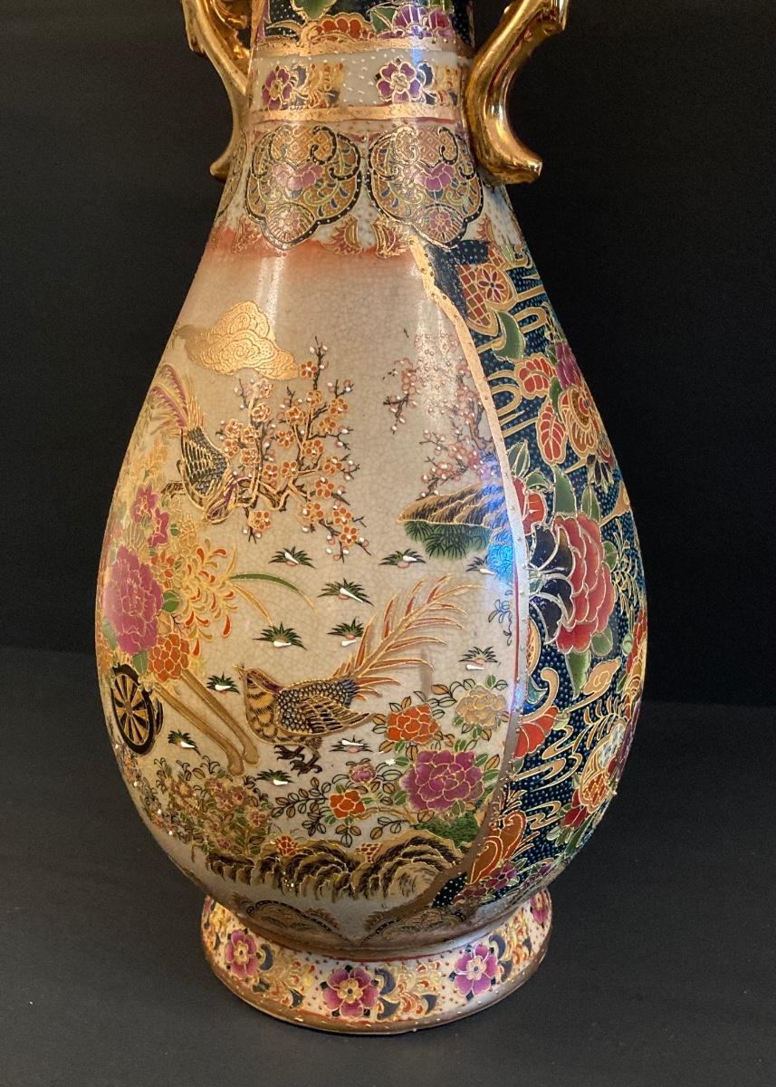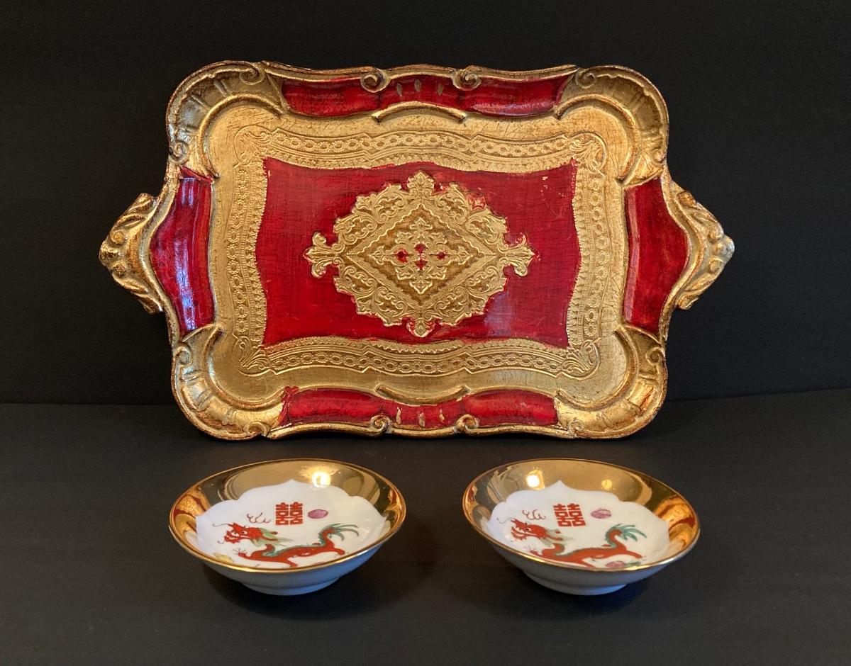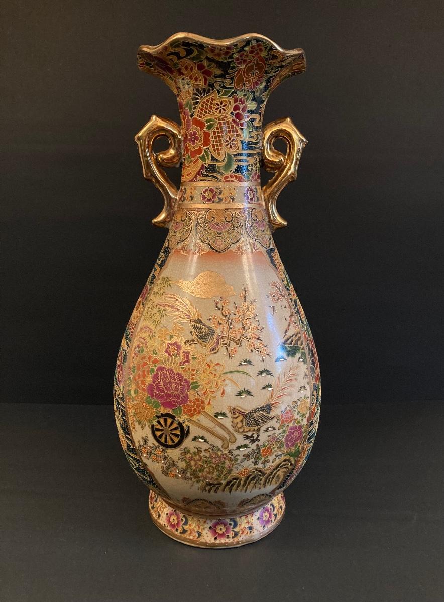 LOT 141: Gorgeous Royal Satsuma Vase, Painted Red / Gold Wood Tray and More