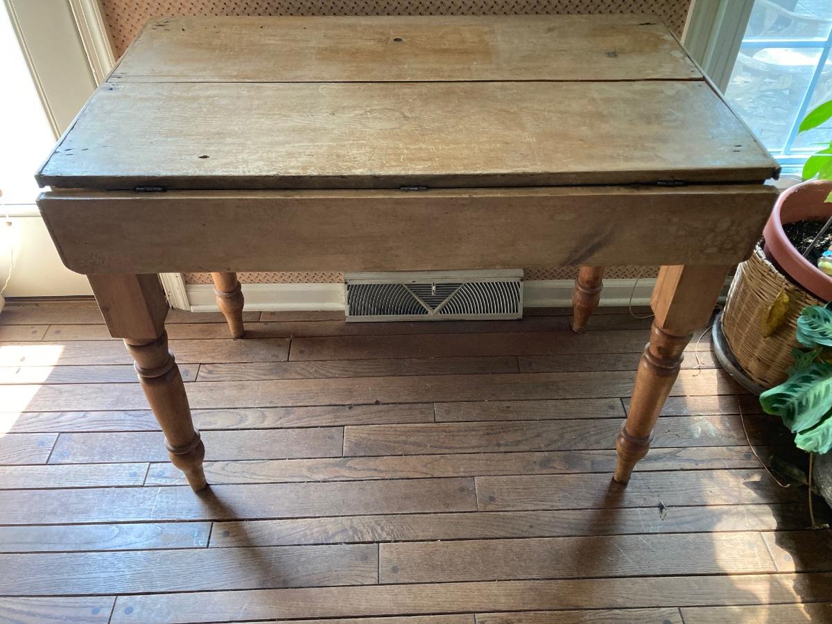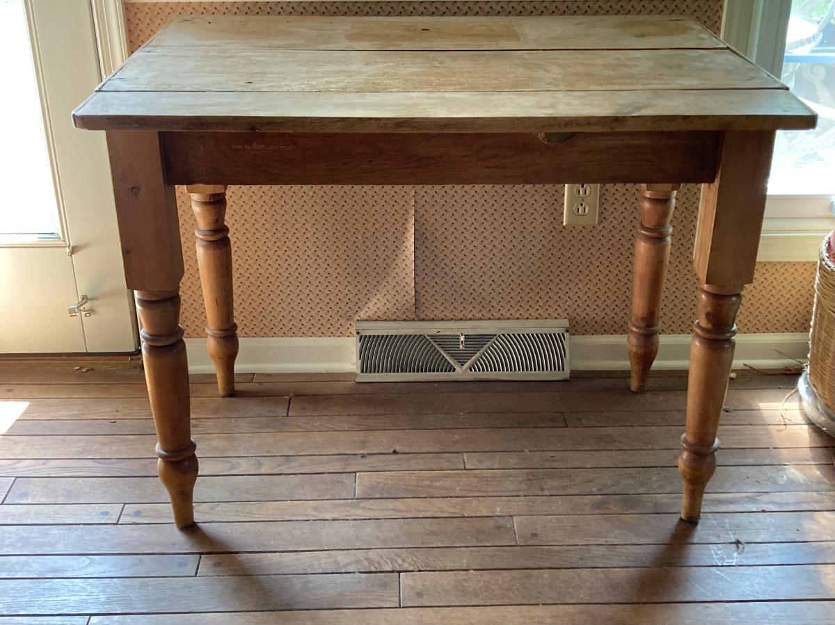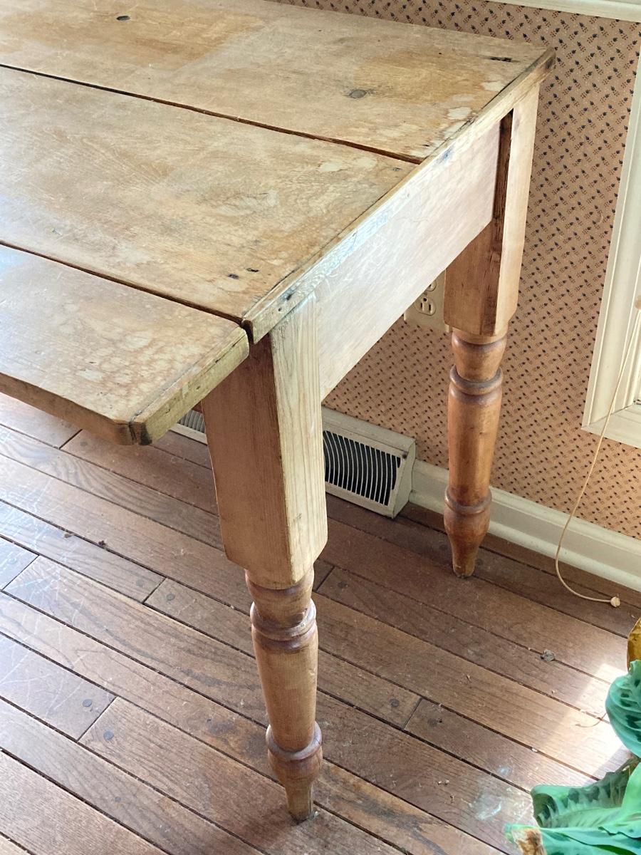LOT 149: Vintage Farmhouse Drop Leaf Wooden Table