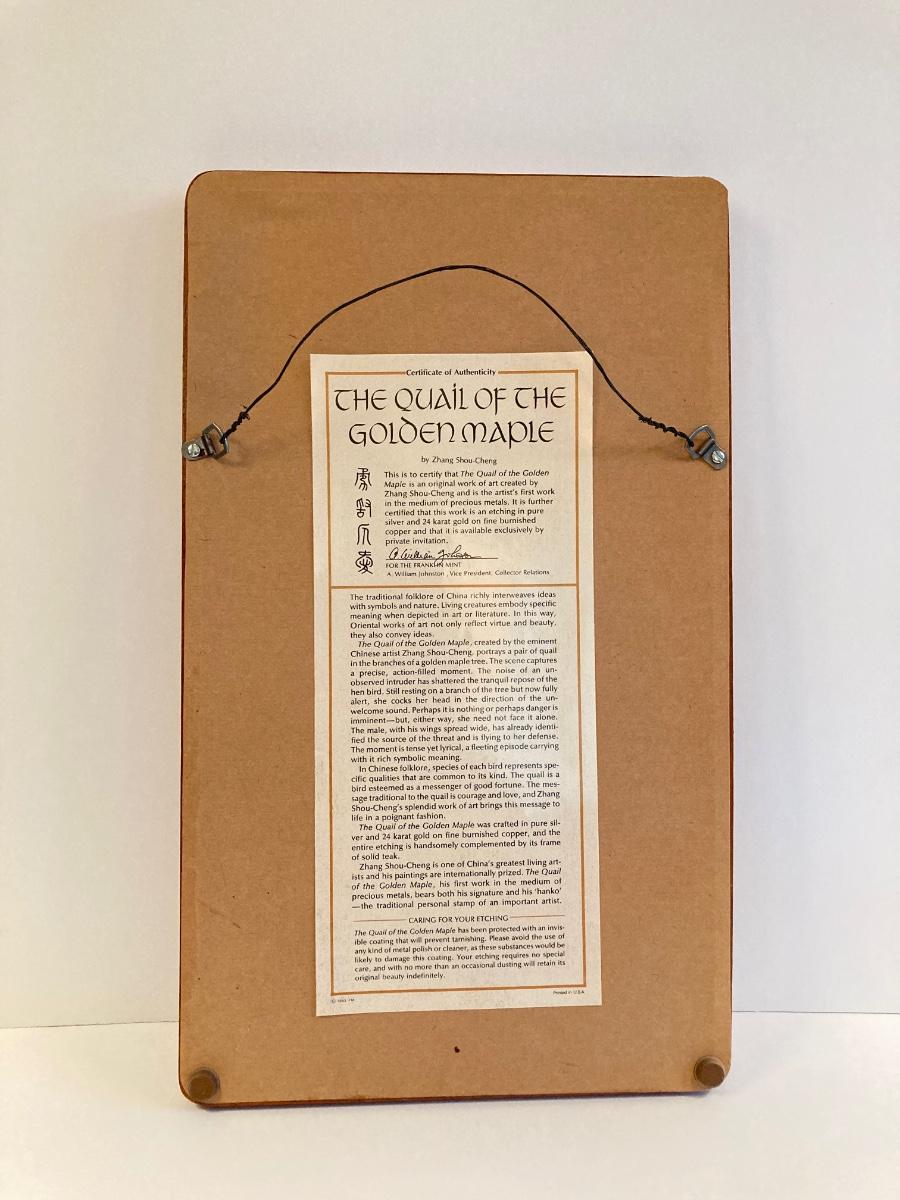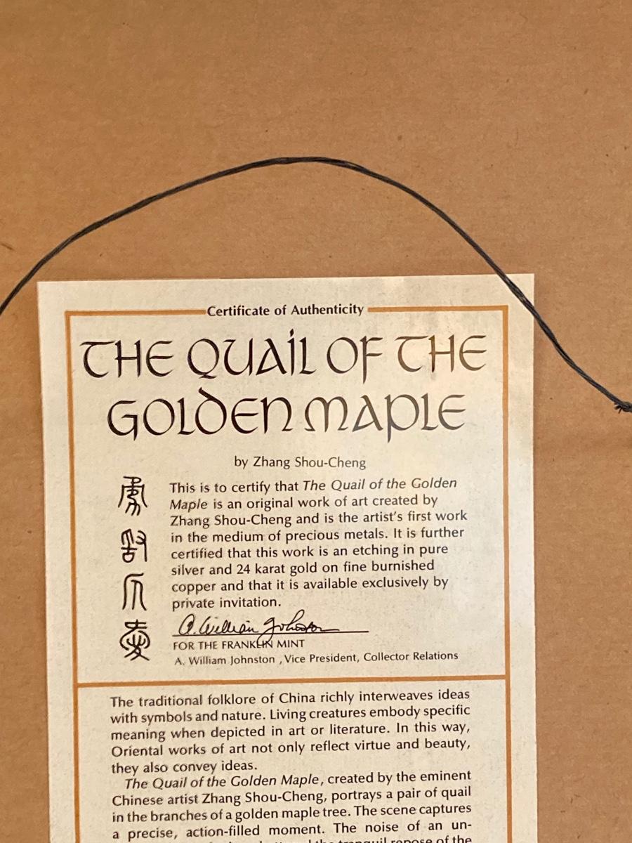 LOT 158: Zhang Shou-Cheng's "The Quail of the Golden Maple" Original Work of Art