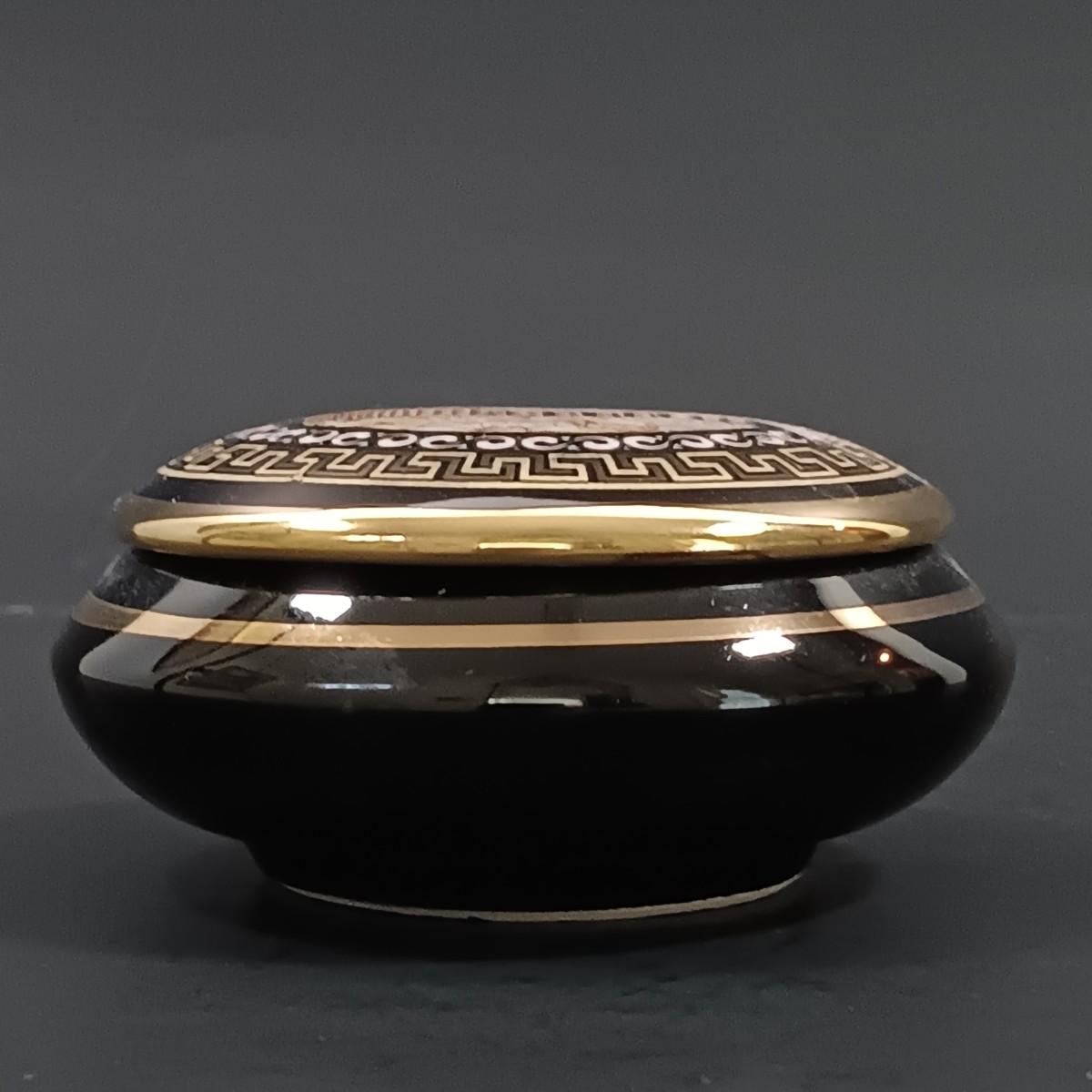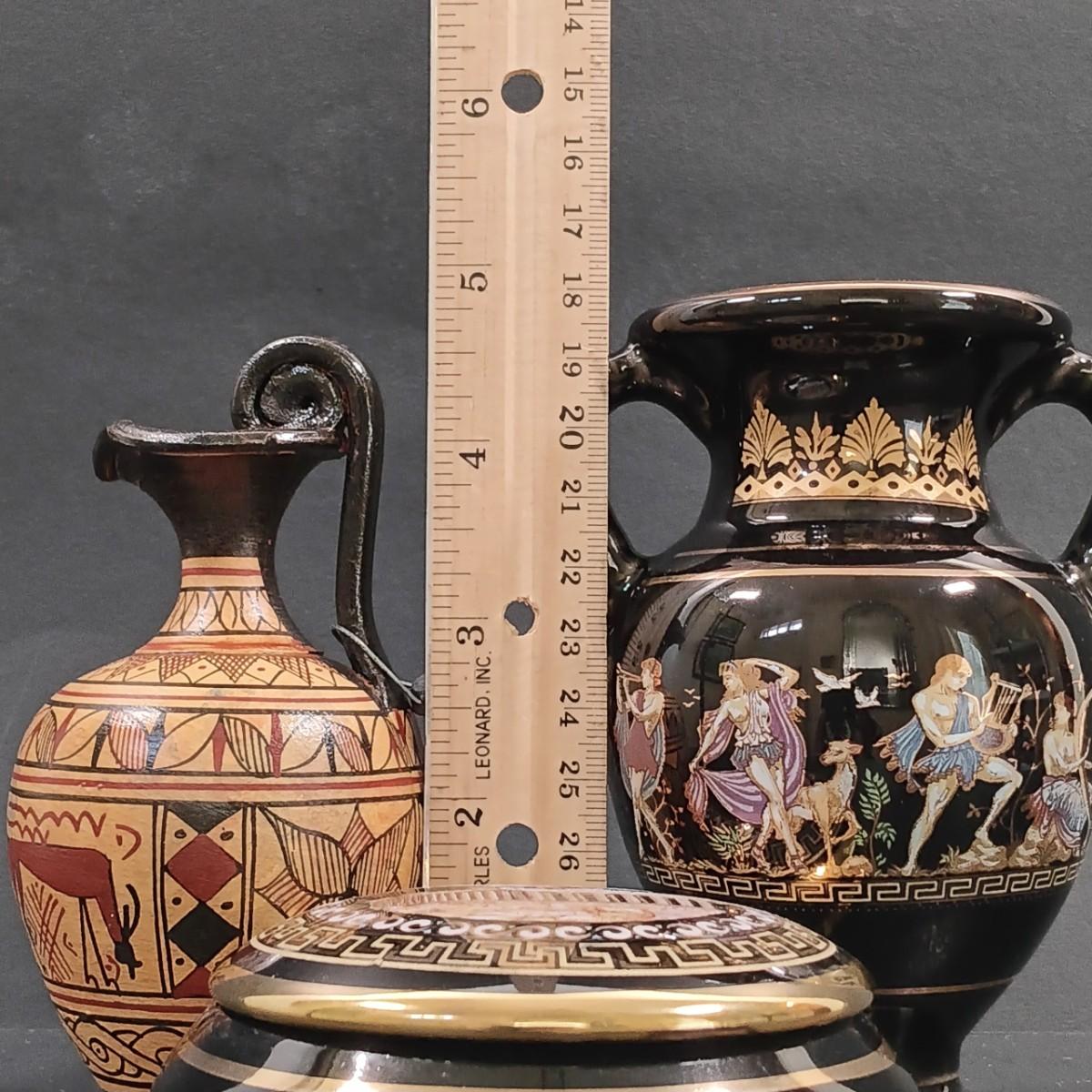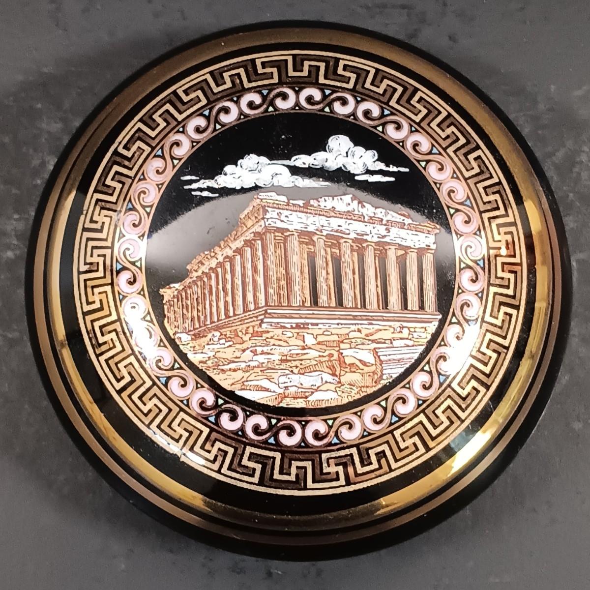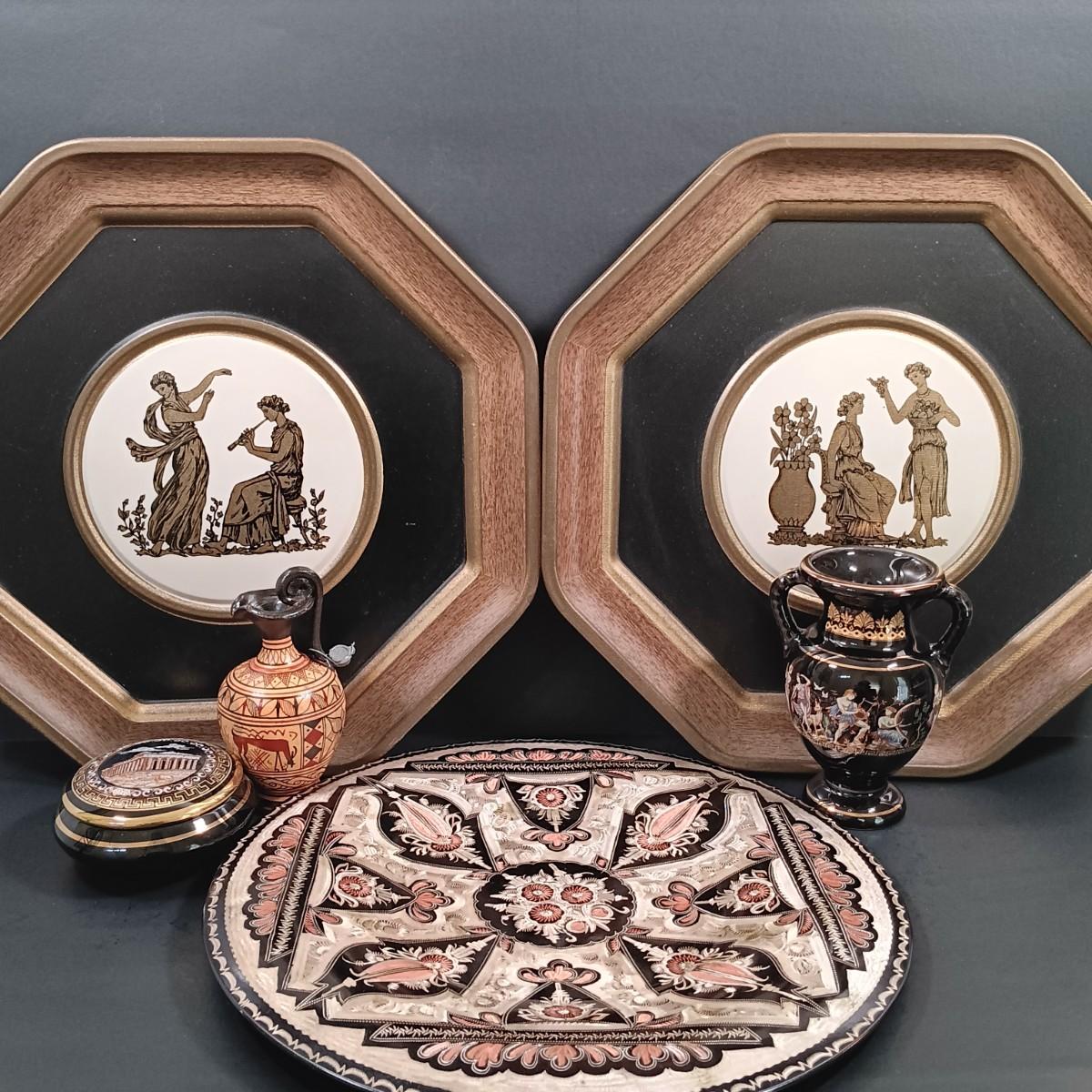 LOT 173: Set of Two Guildcraft Greek Decorative Tins, Etched Copper Plate, Hand Made in Greece 24K Gold Trim Trinket Box & More