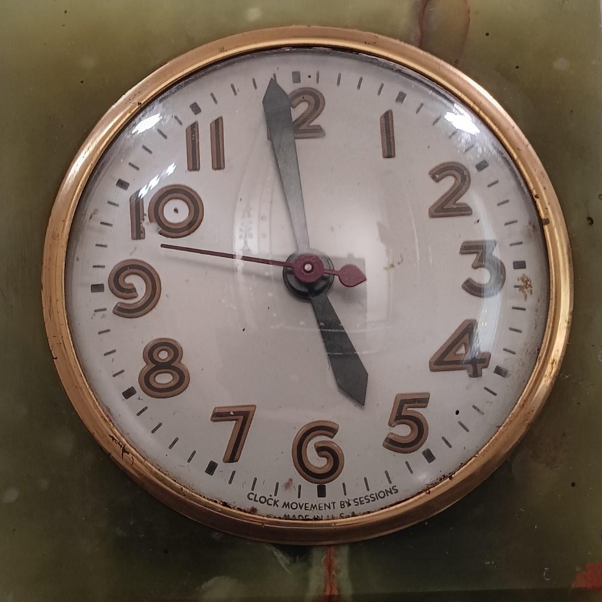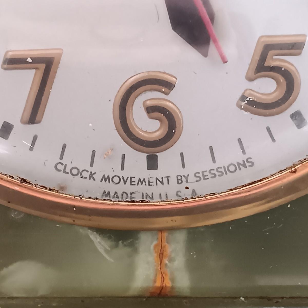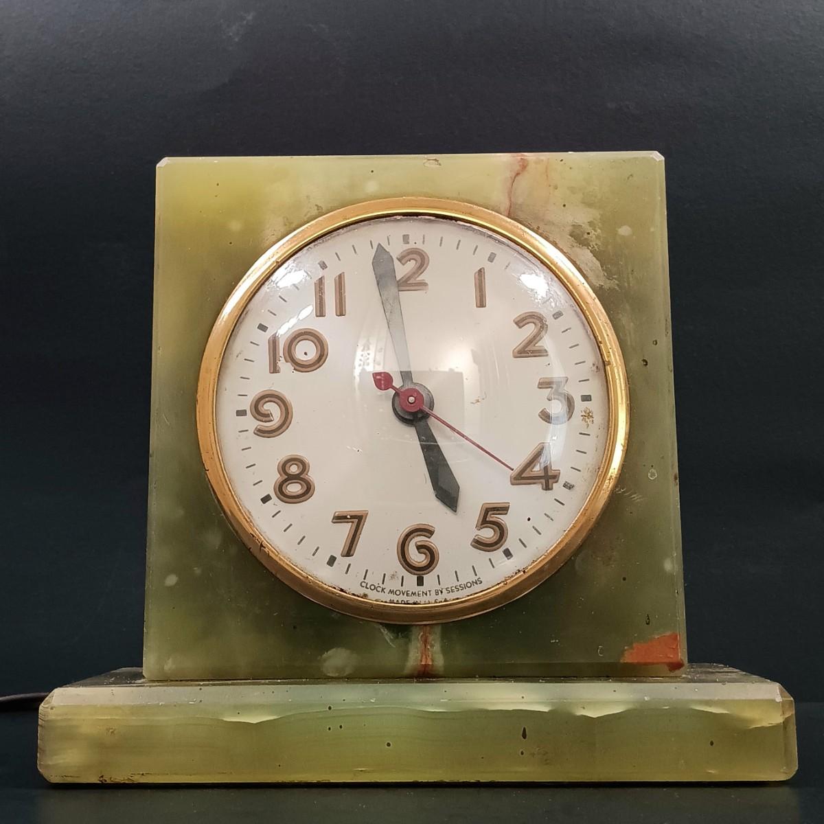 LOT 174: Vintage Sessions Art Deco Style Green Stone Mantle Clock