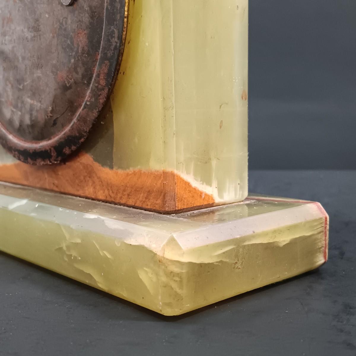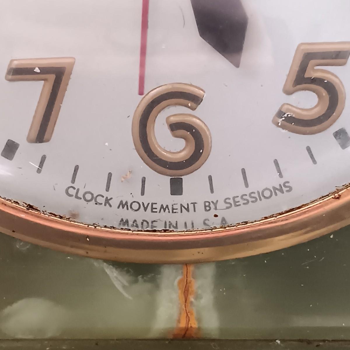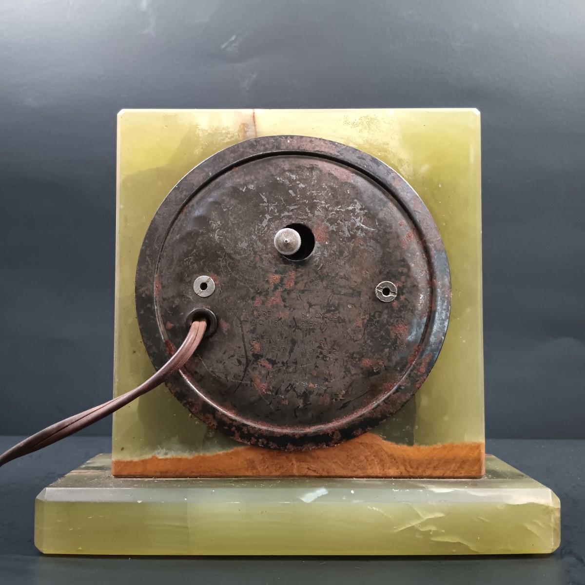 LOT 174: Vintage Sessions Art Deco Style Green Stone Mantle Clock