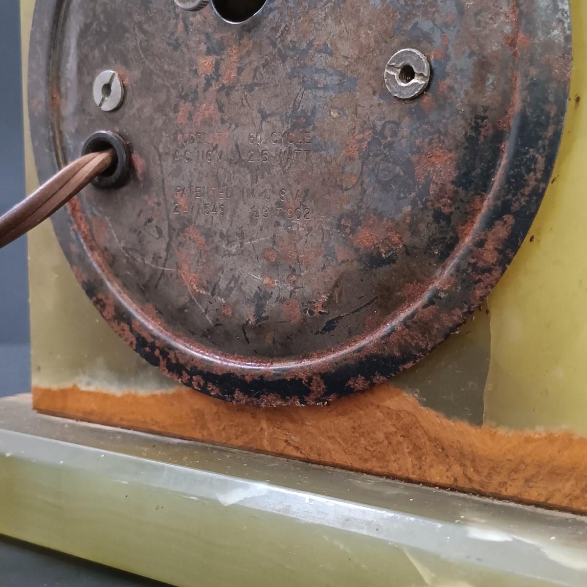 Clock has numerous rust spots.