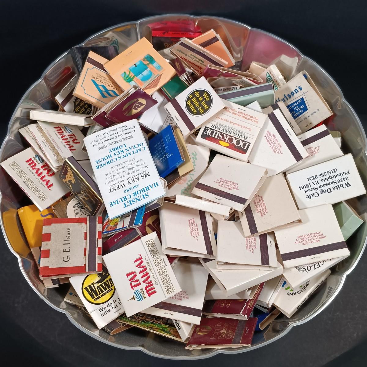 LOT 176: Large Collection of Vintage Matchbooks in IHI India Footed Bowl