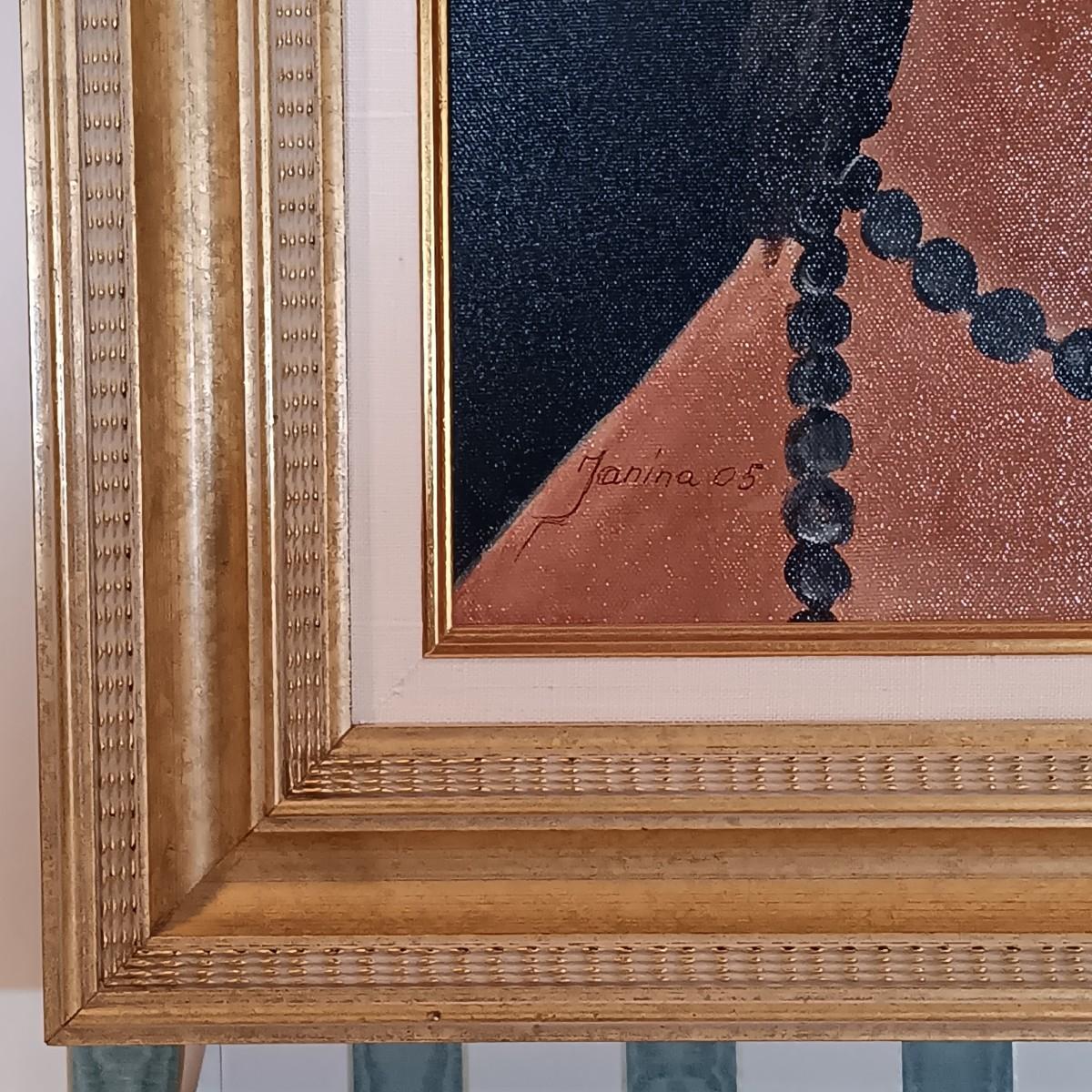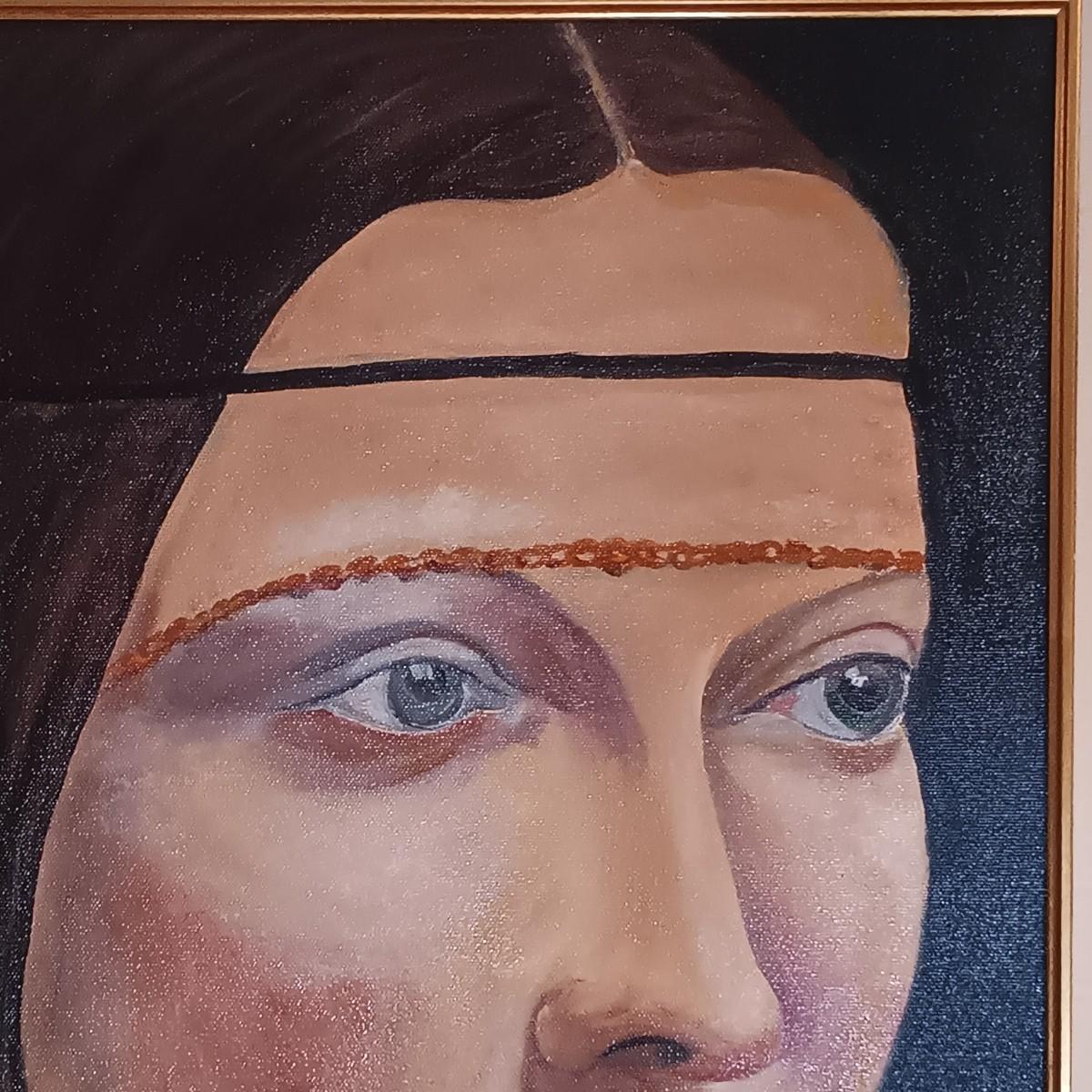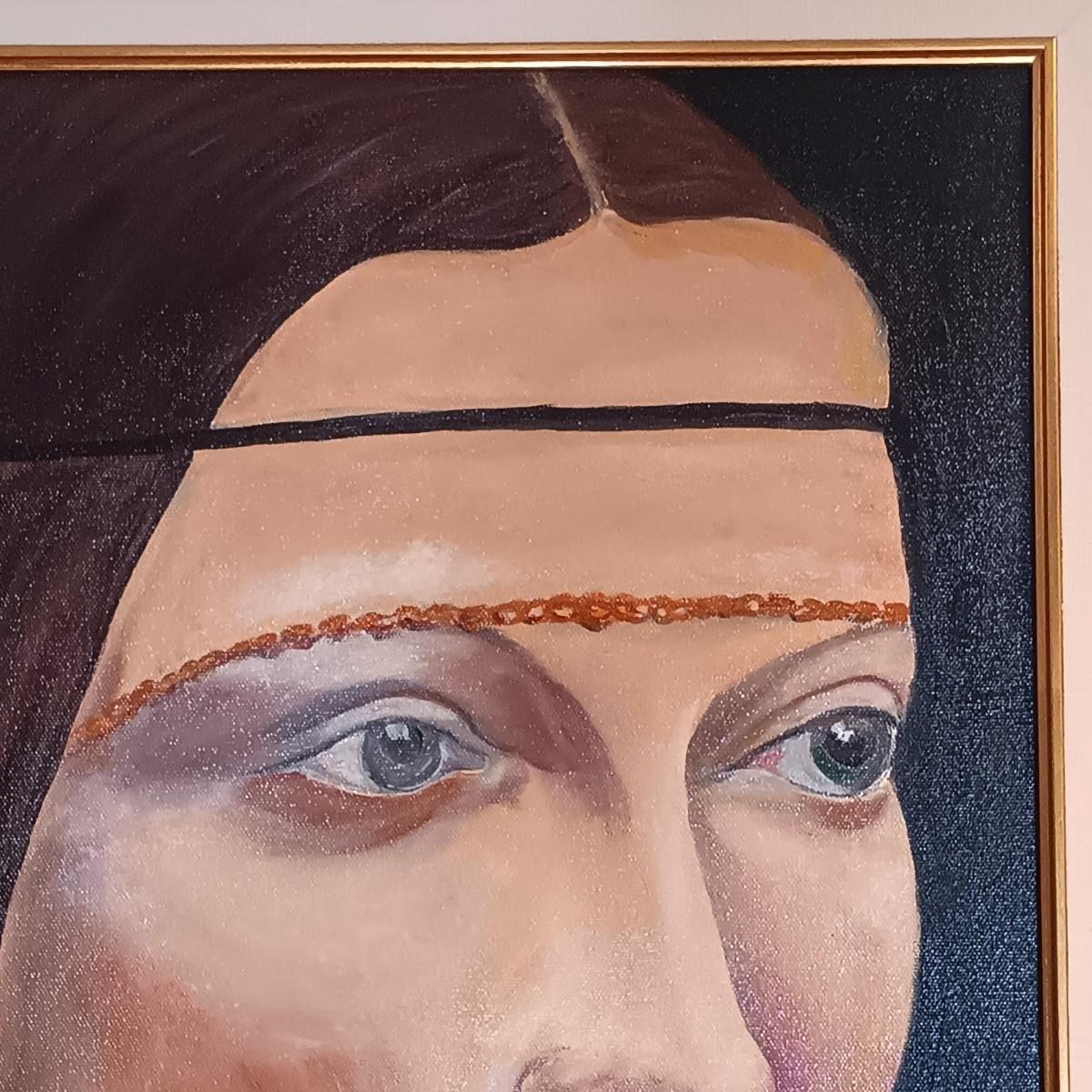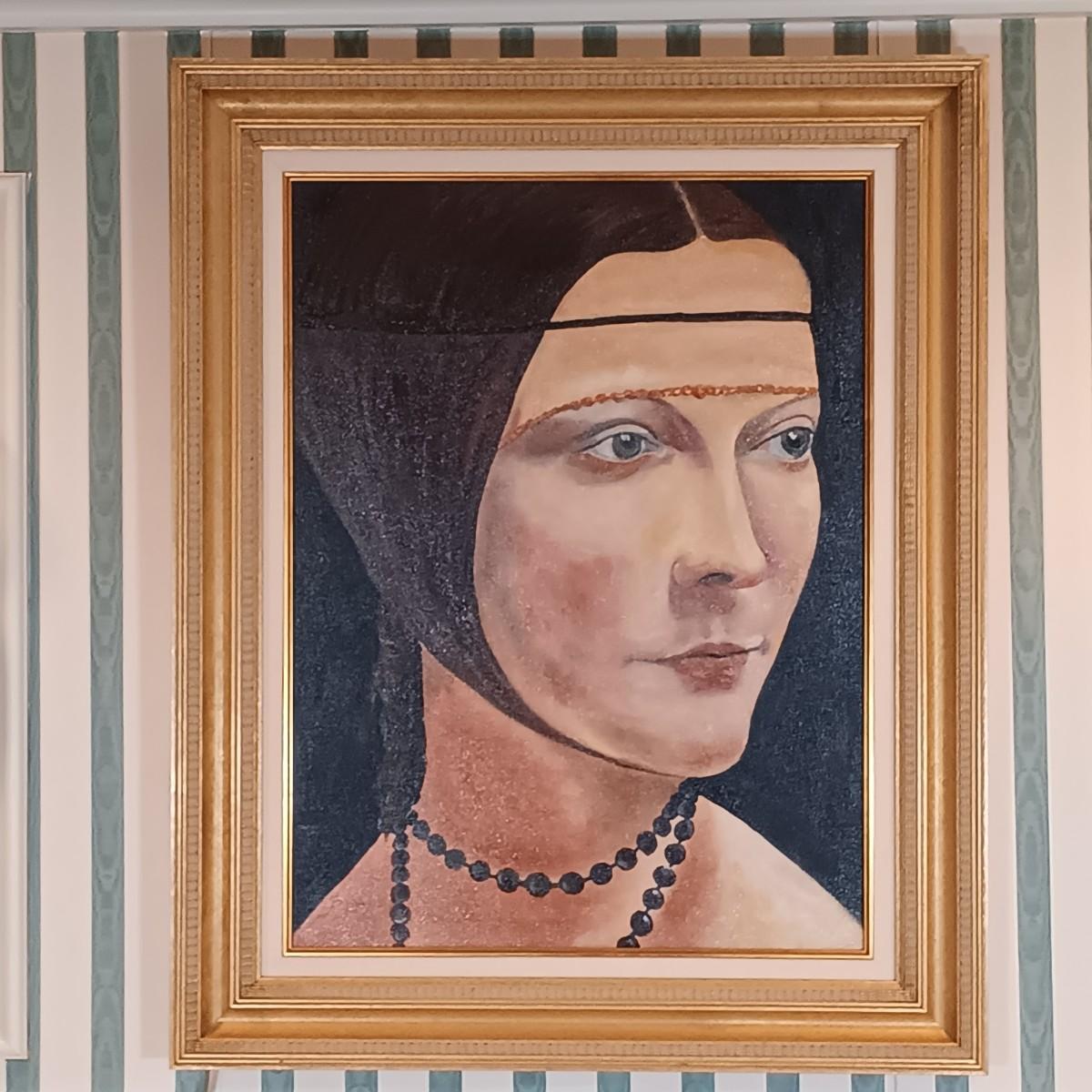 LOT 178: Oil Painting of 'Lady With An Ermine' Signed Janina 05' in Gilded Wood Frame