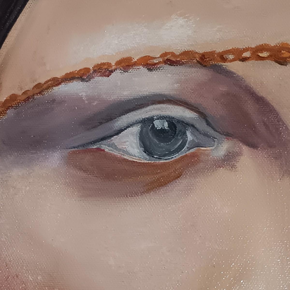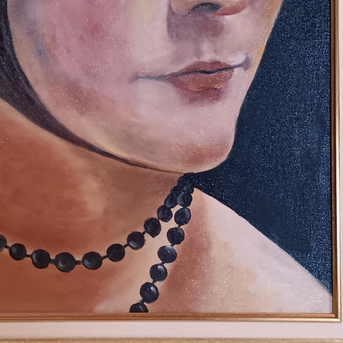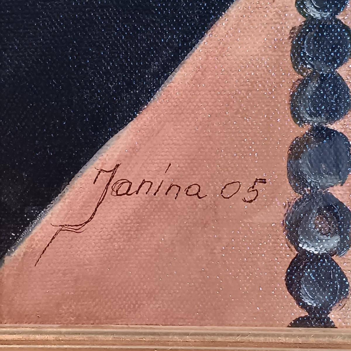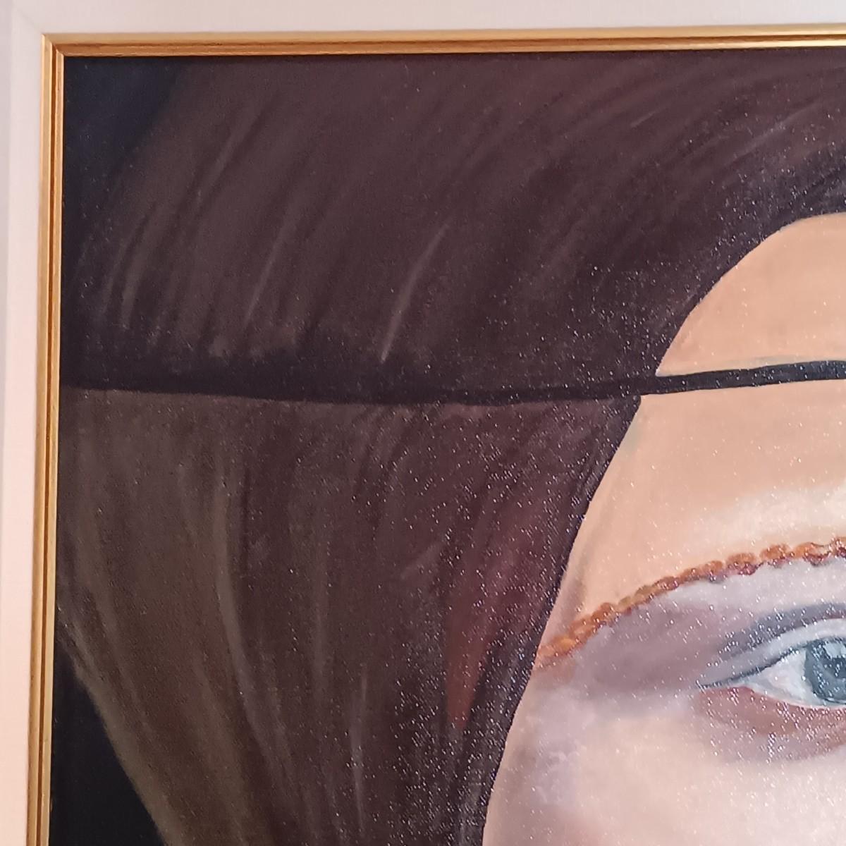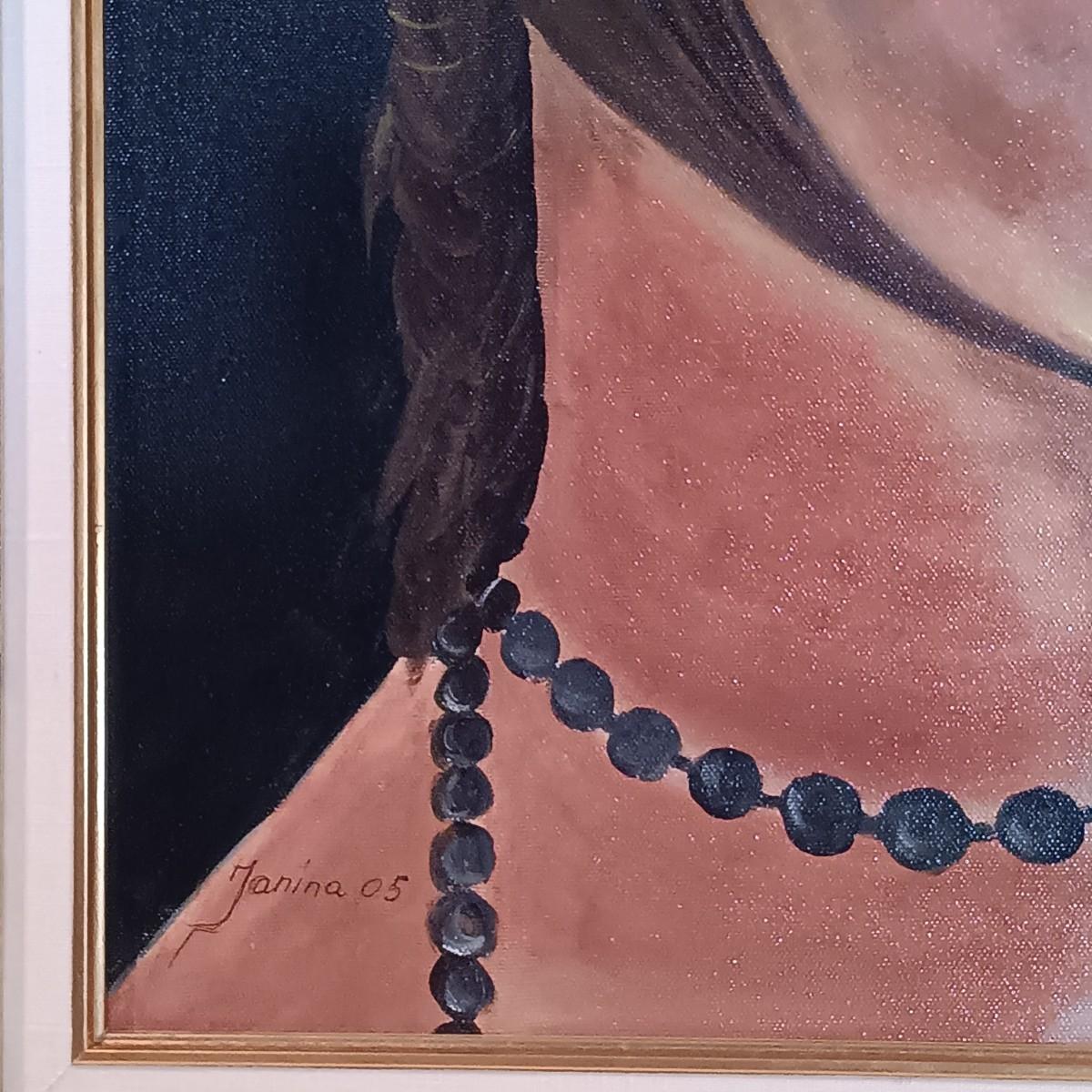 LOT 178: Oil Painting of 'Lady With An Ermine' Signed Janina 05' in Gilded Wood Frame