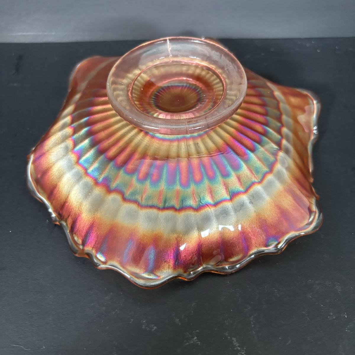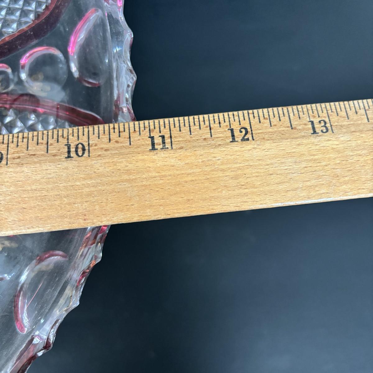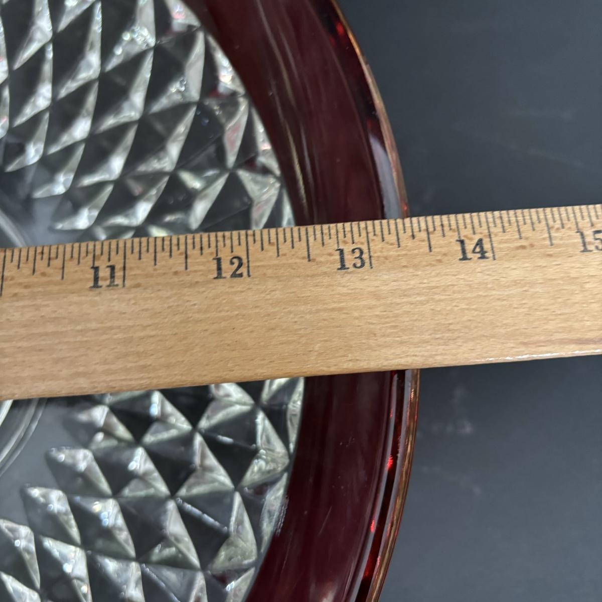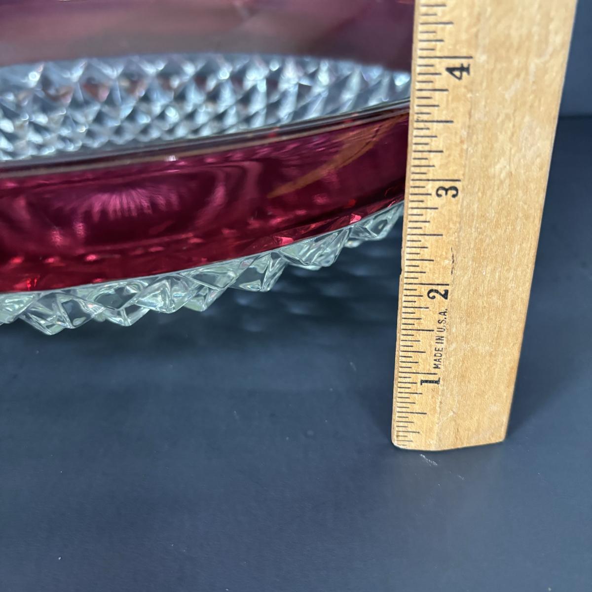 LOT 224: Vintage Ruby Red Diamond Point Bowl, Vintage Iridescent Carnival Glass, Cranberry & Clear Tiered Serving Tray