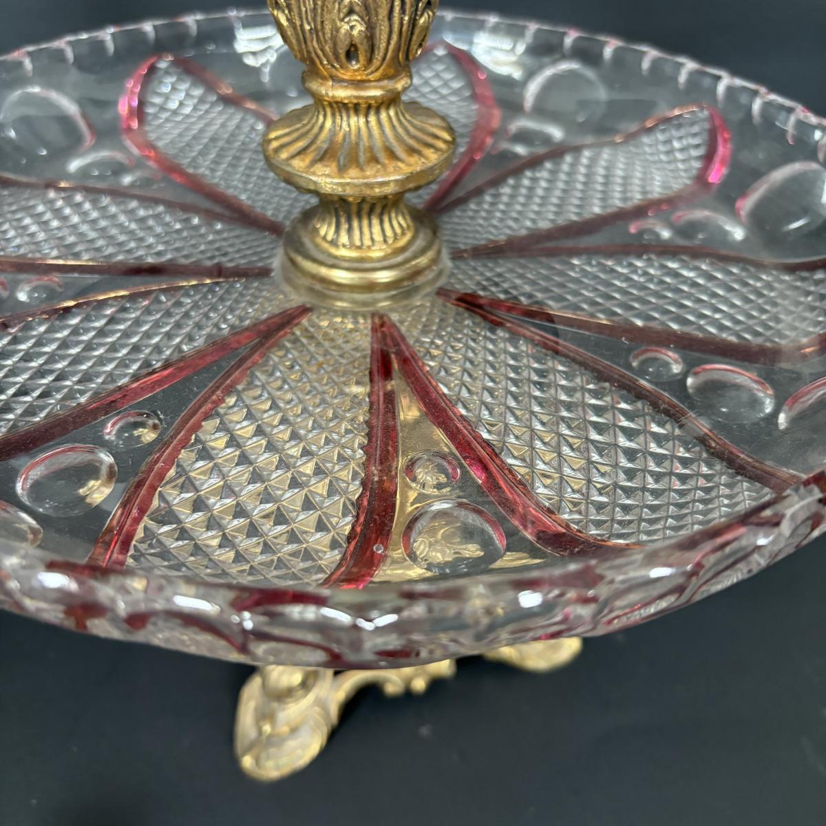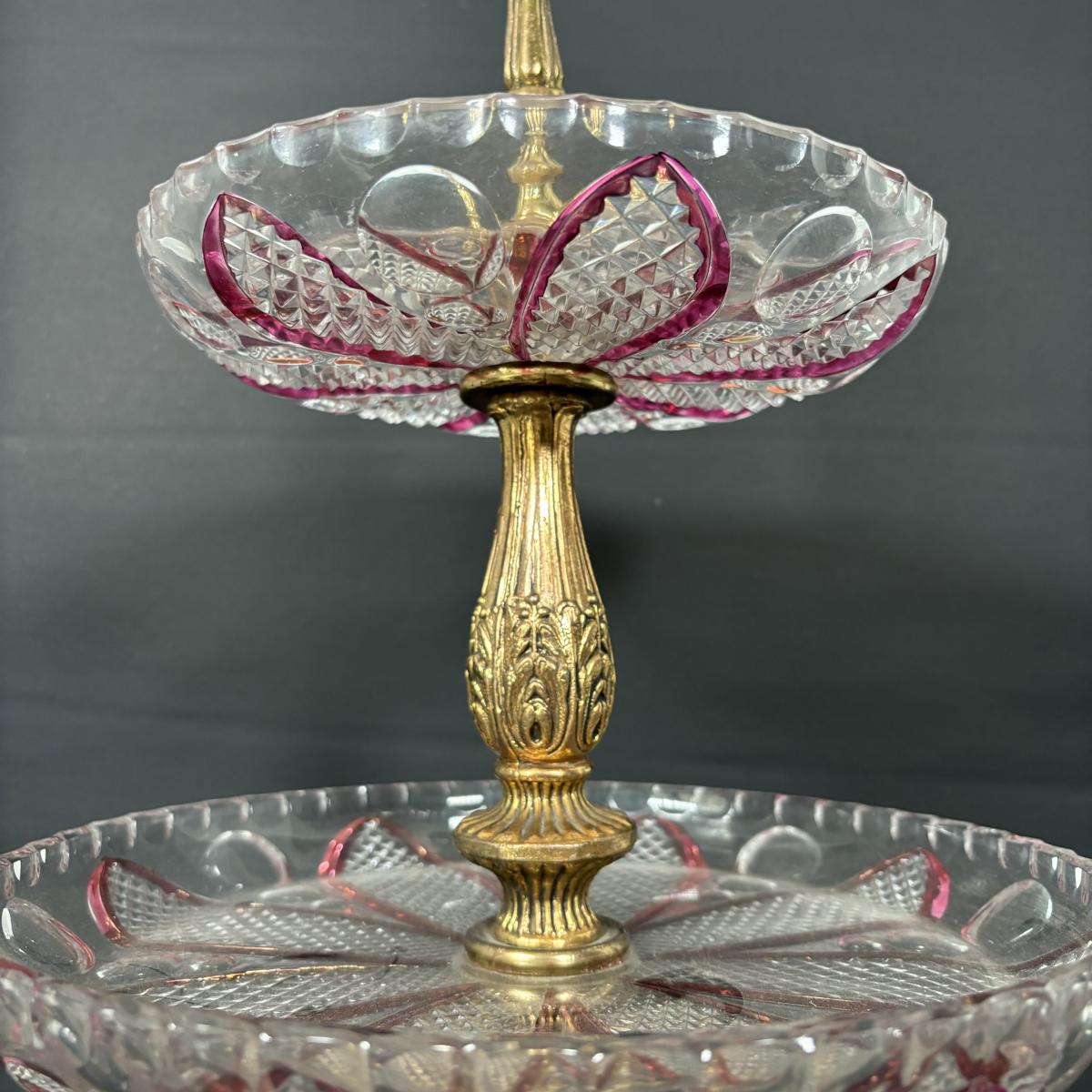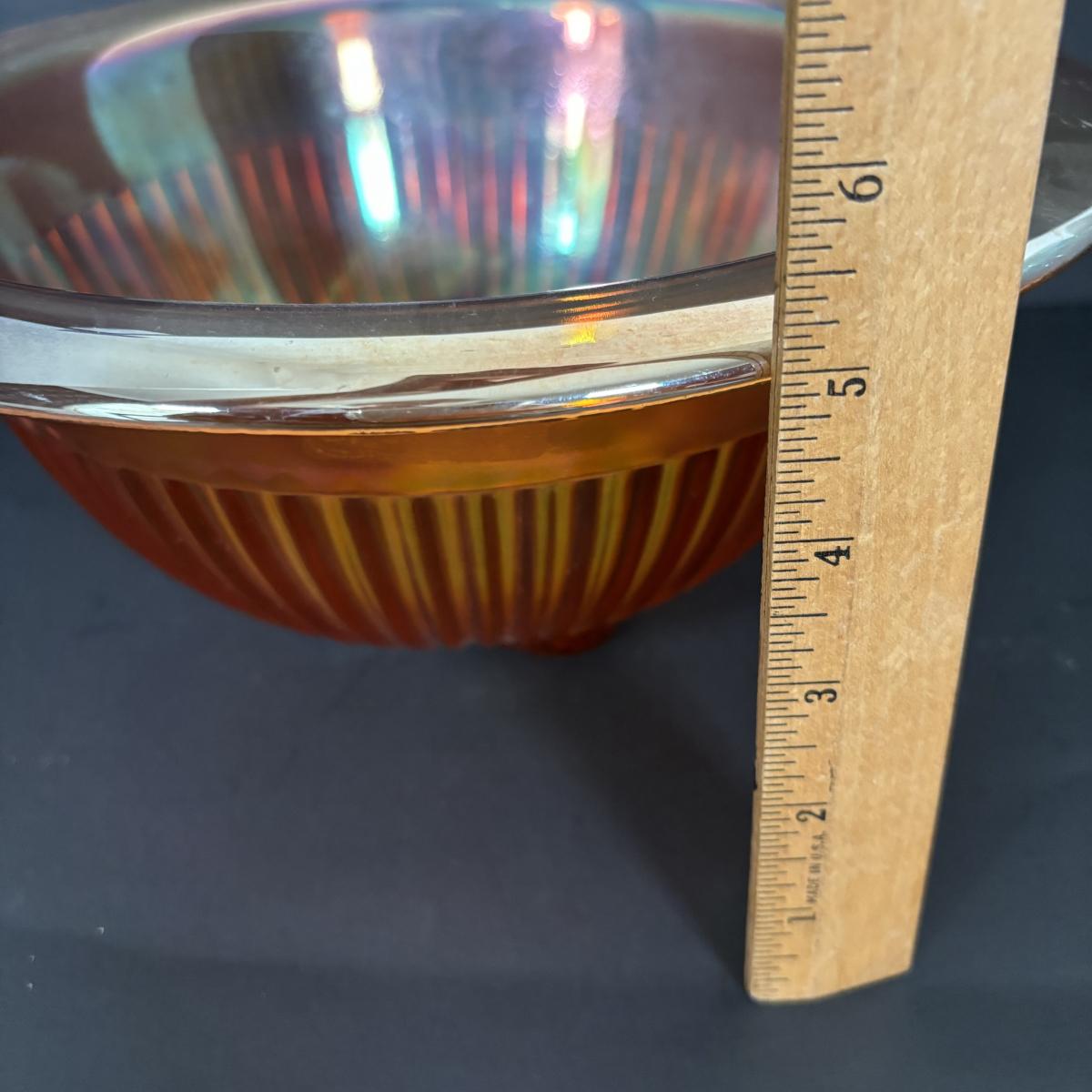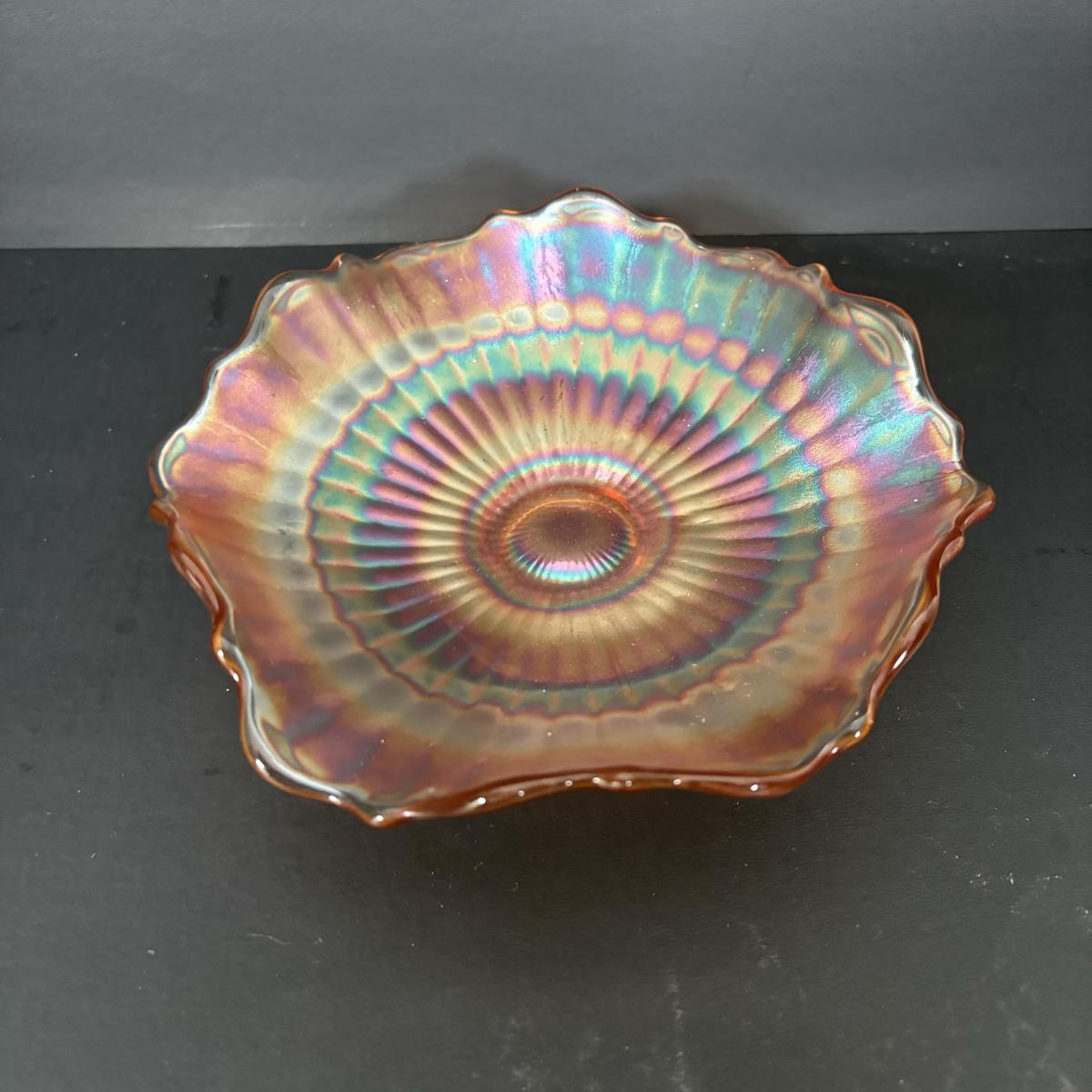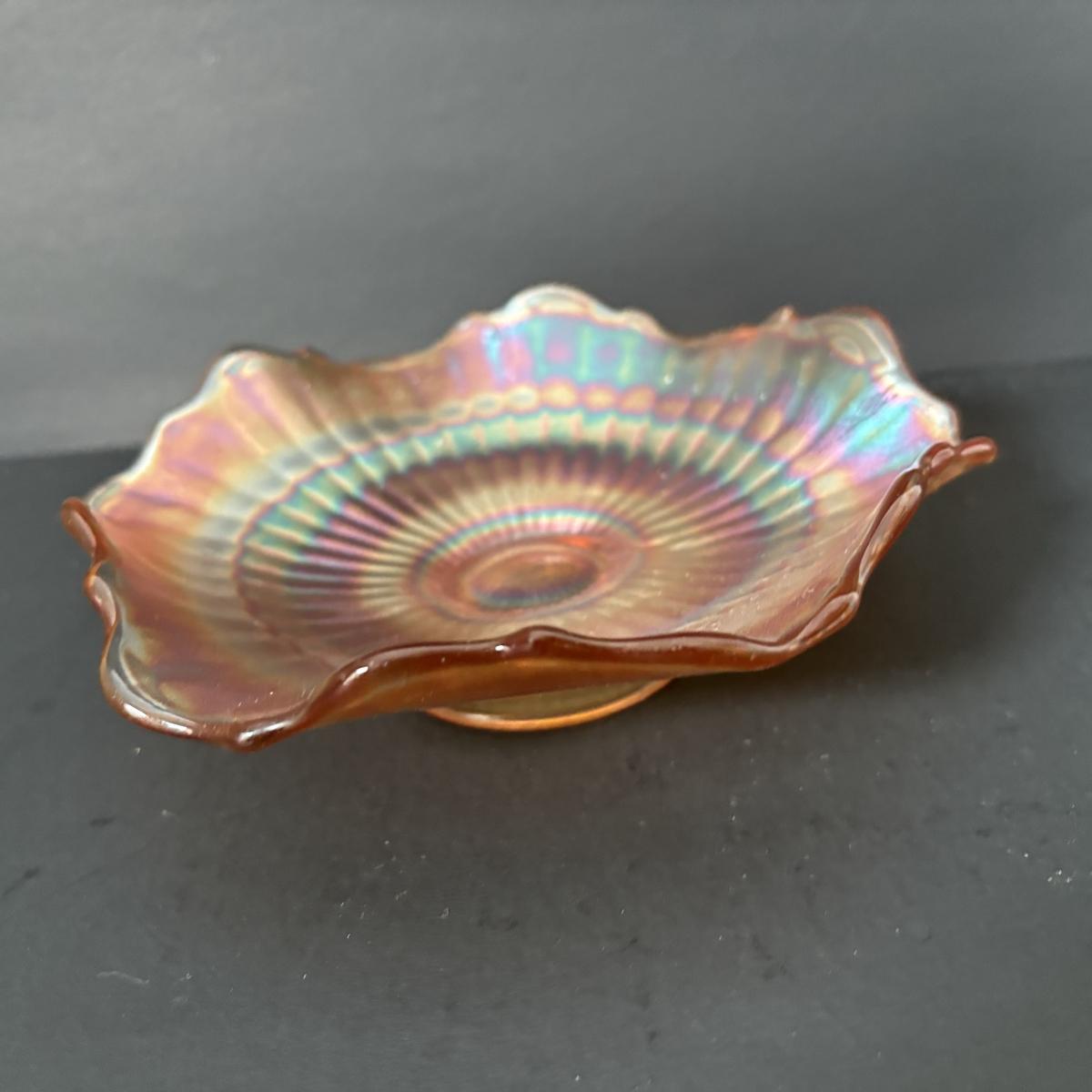 LOT 224: Vintage Ruby Red Diamond Point Bowl, Vintage Iridescent Carnival Glass, Cranberry & Clear Tiered Serving Tray