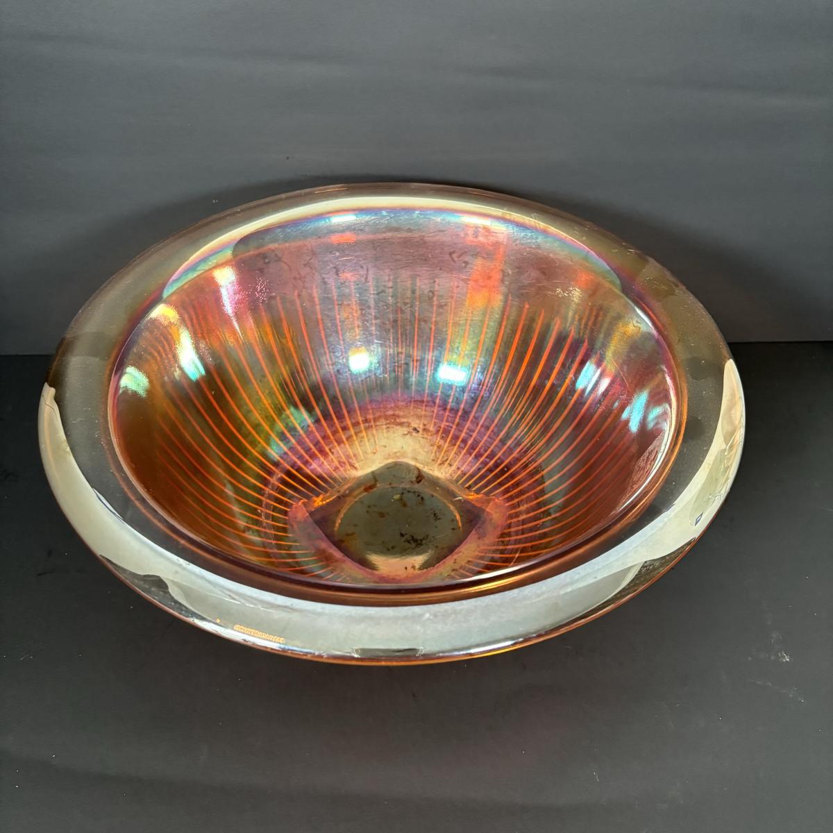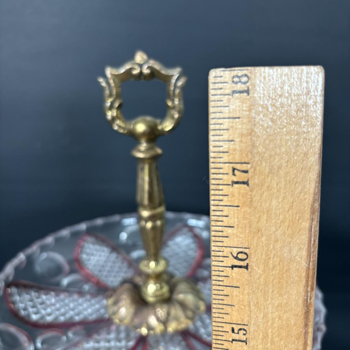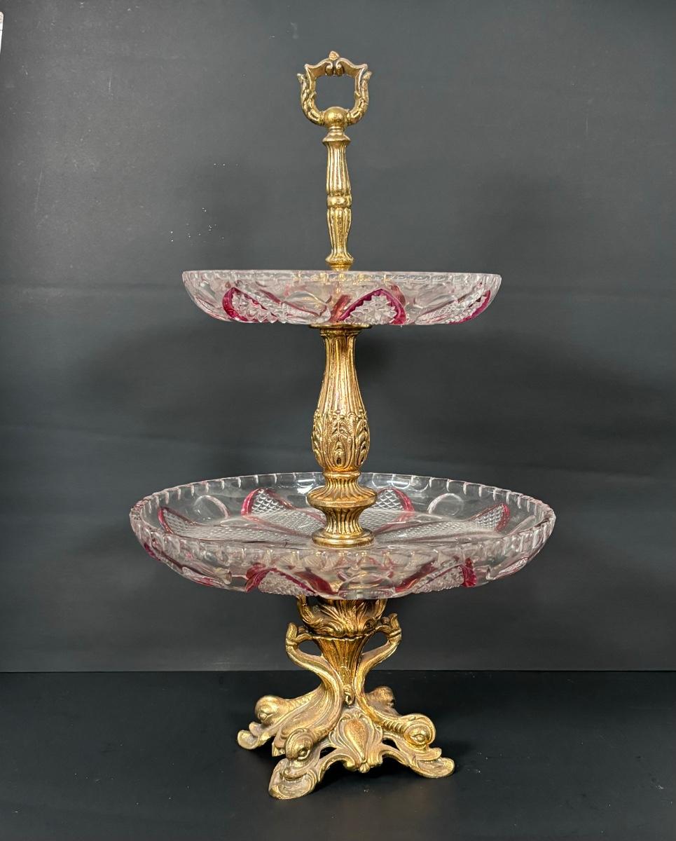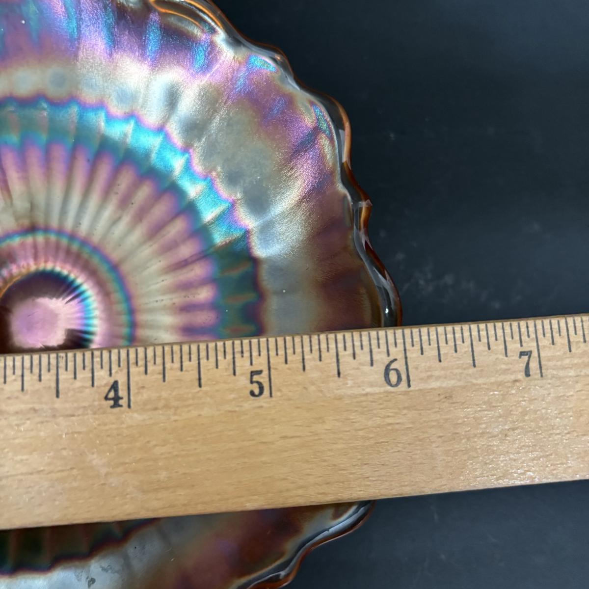 LOT 224: Vintage Ruby Red Diamond Point Bowl, Vintage Iridescent Carnival Glass, Cranberry & Clear Tiered Serving Tray