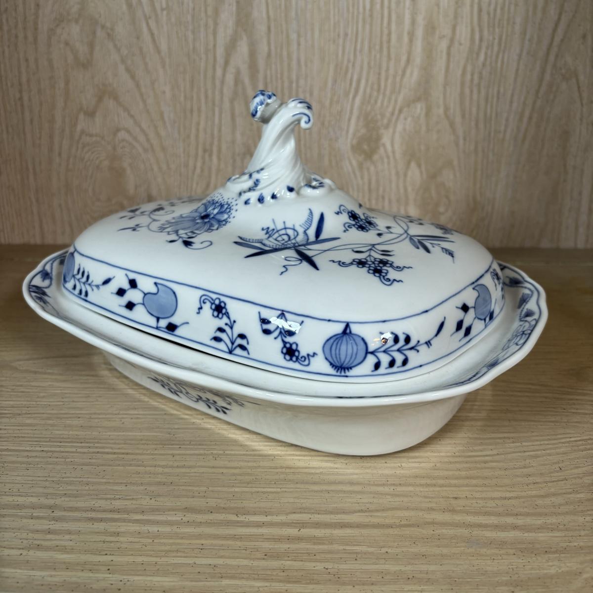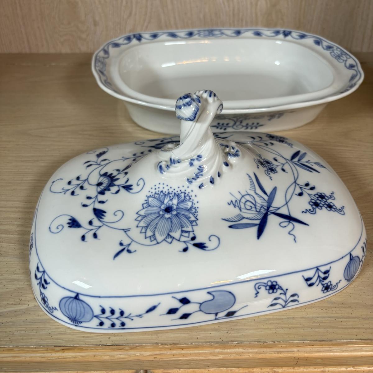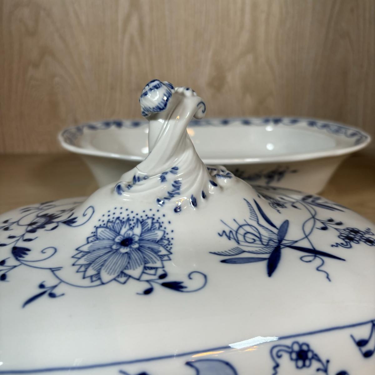 LOT 228: Vintage Meissen Blue Onion Covered Serving Bowl & Serving Platter