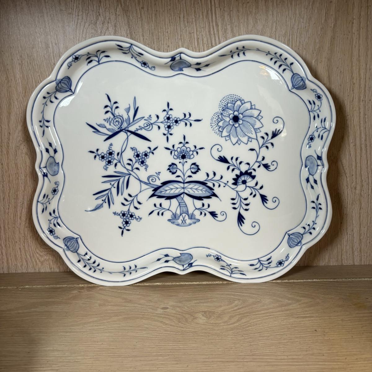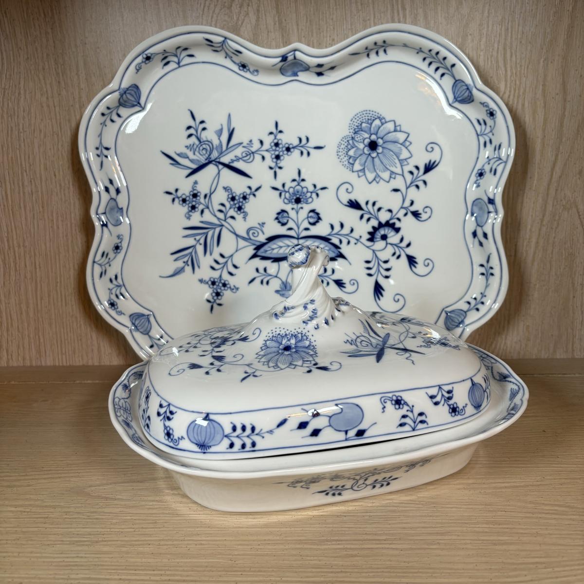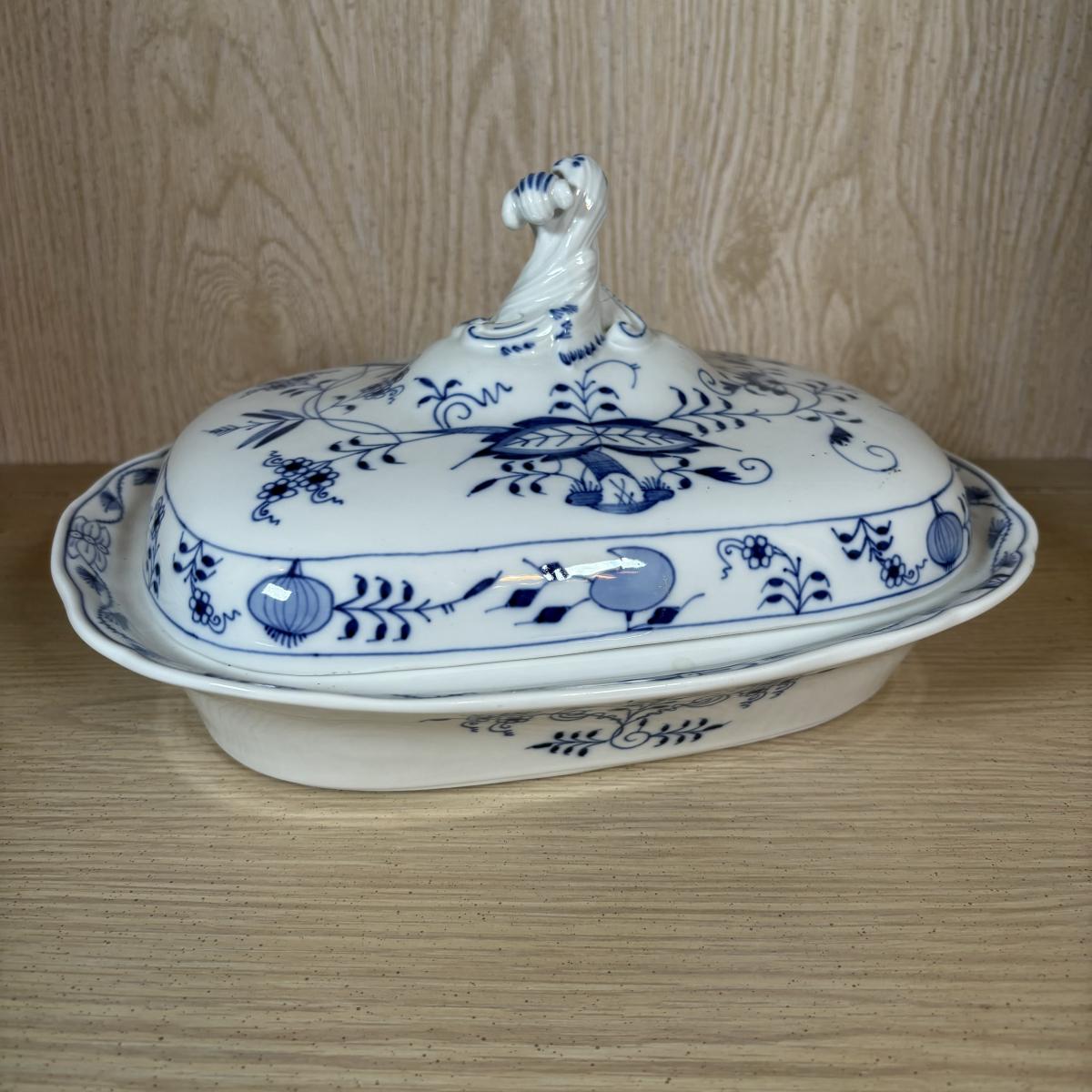 LOT 228: Vintage Meissen Blue Onion Covered Serving Bowl & Serving Platter